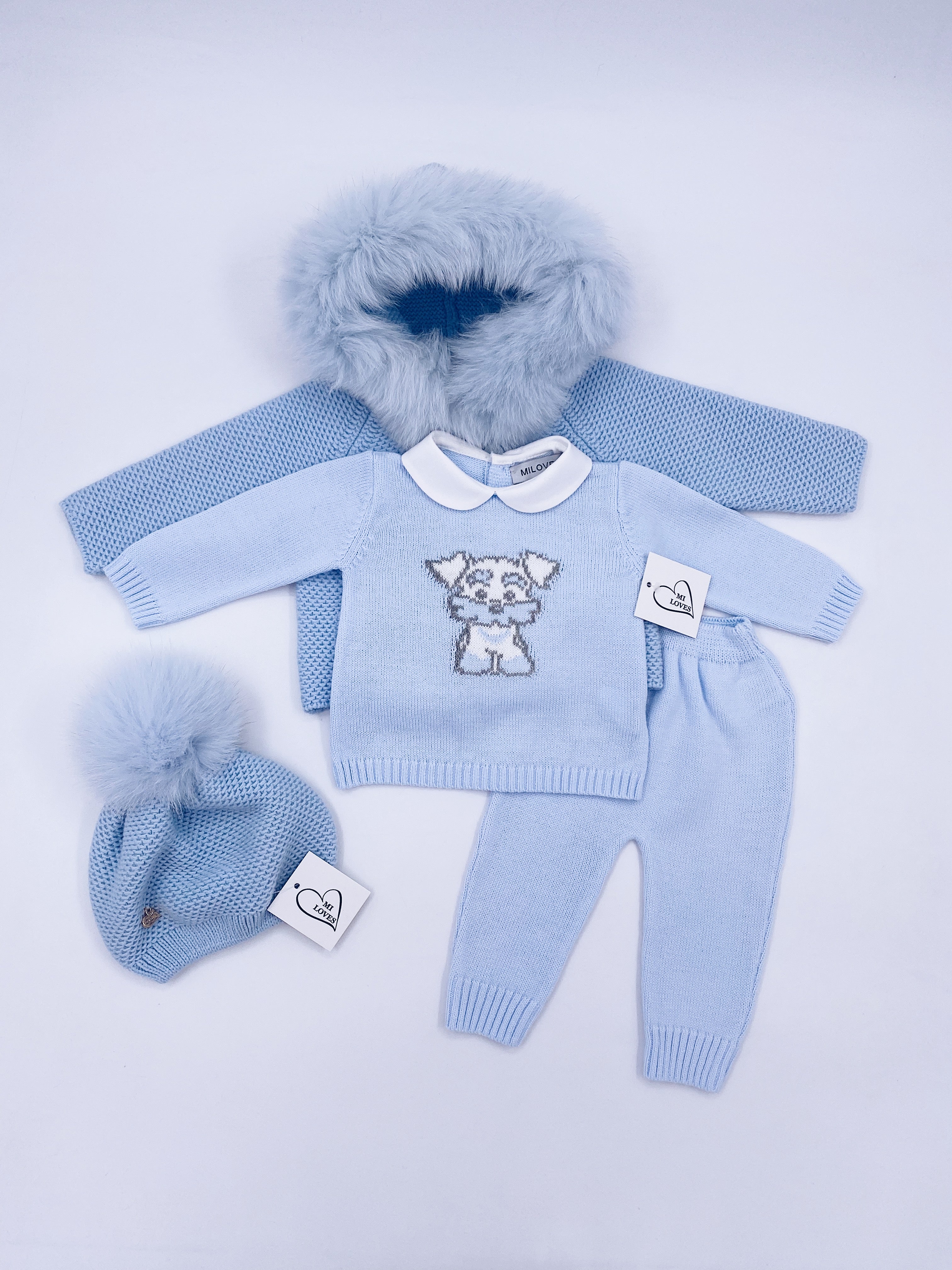 MI LOVES Signature Little Puppy knitted 2 piece suit in Baby blue