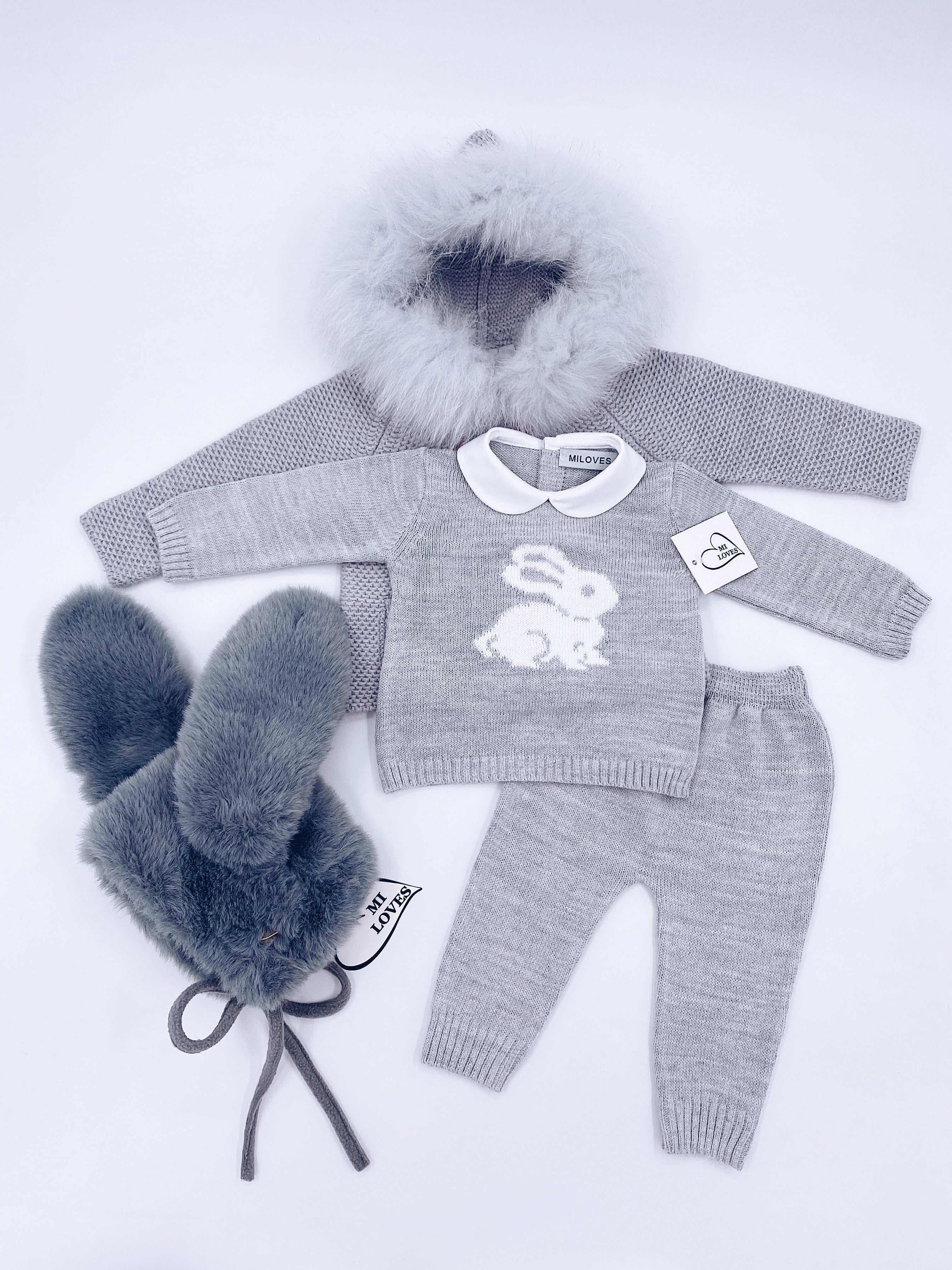 MI LOVES Signature Little Bunny Knitted 2 piece suit in Grey.