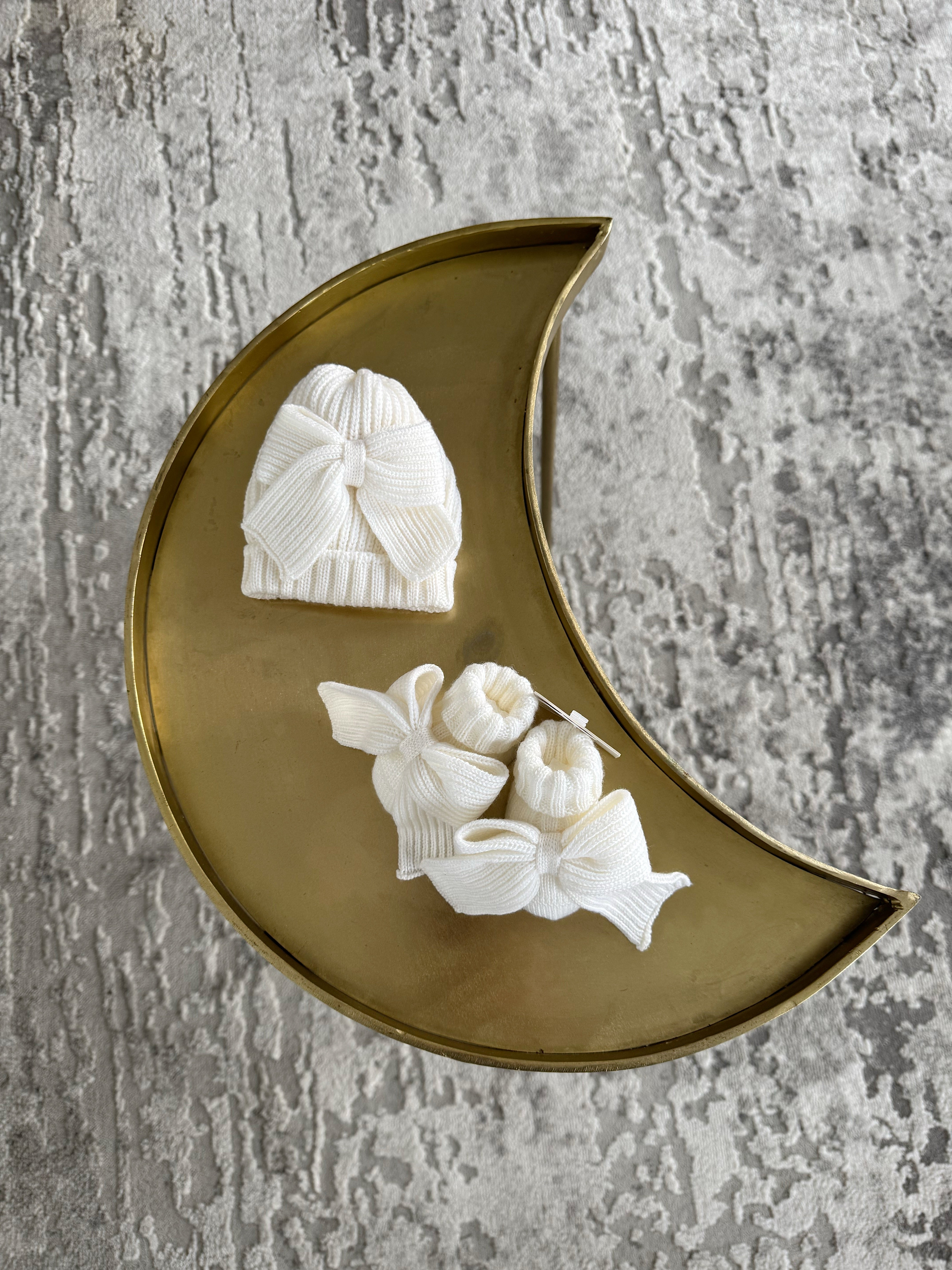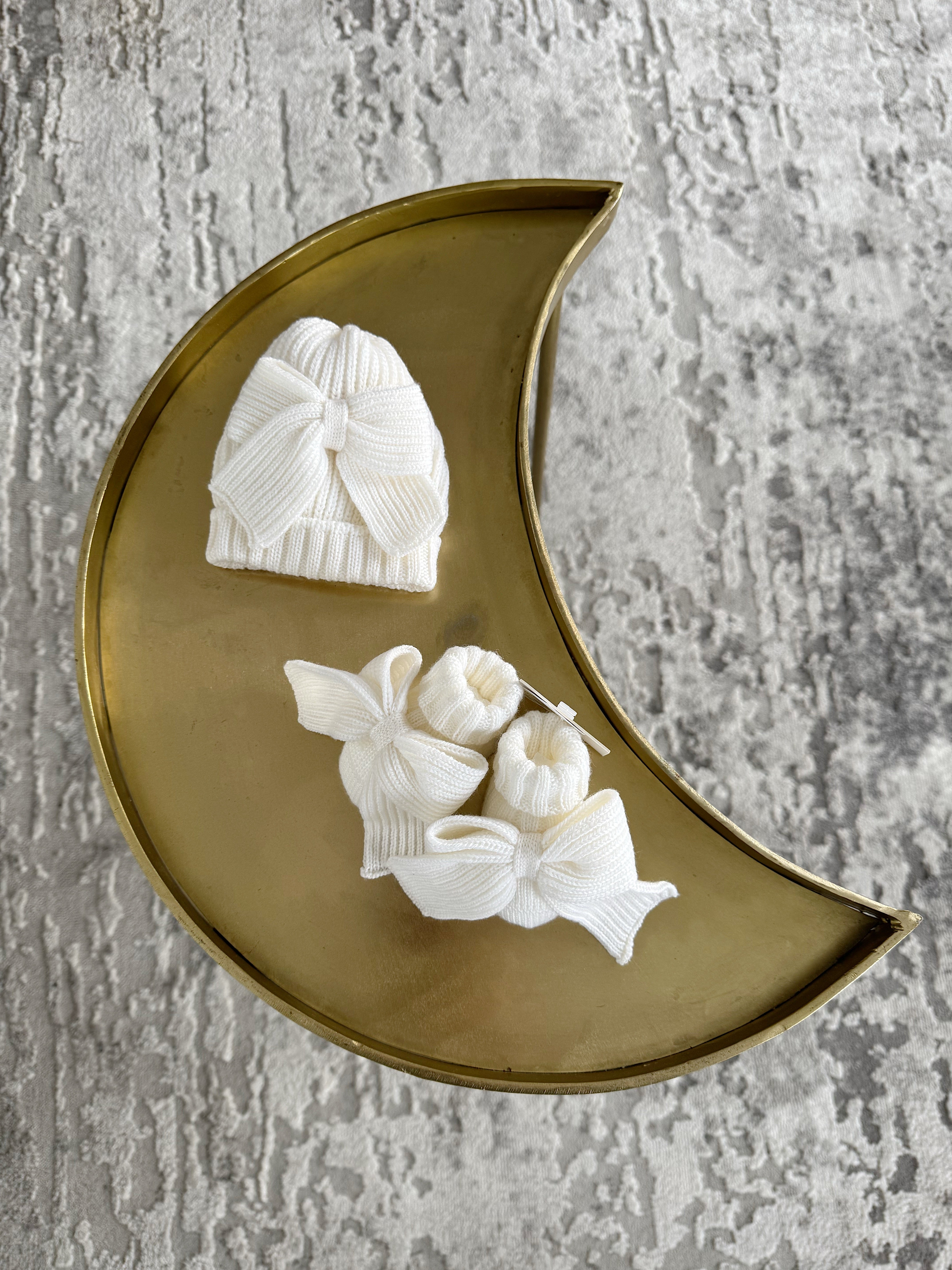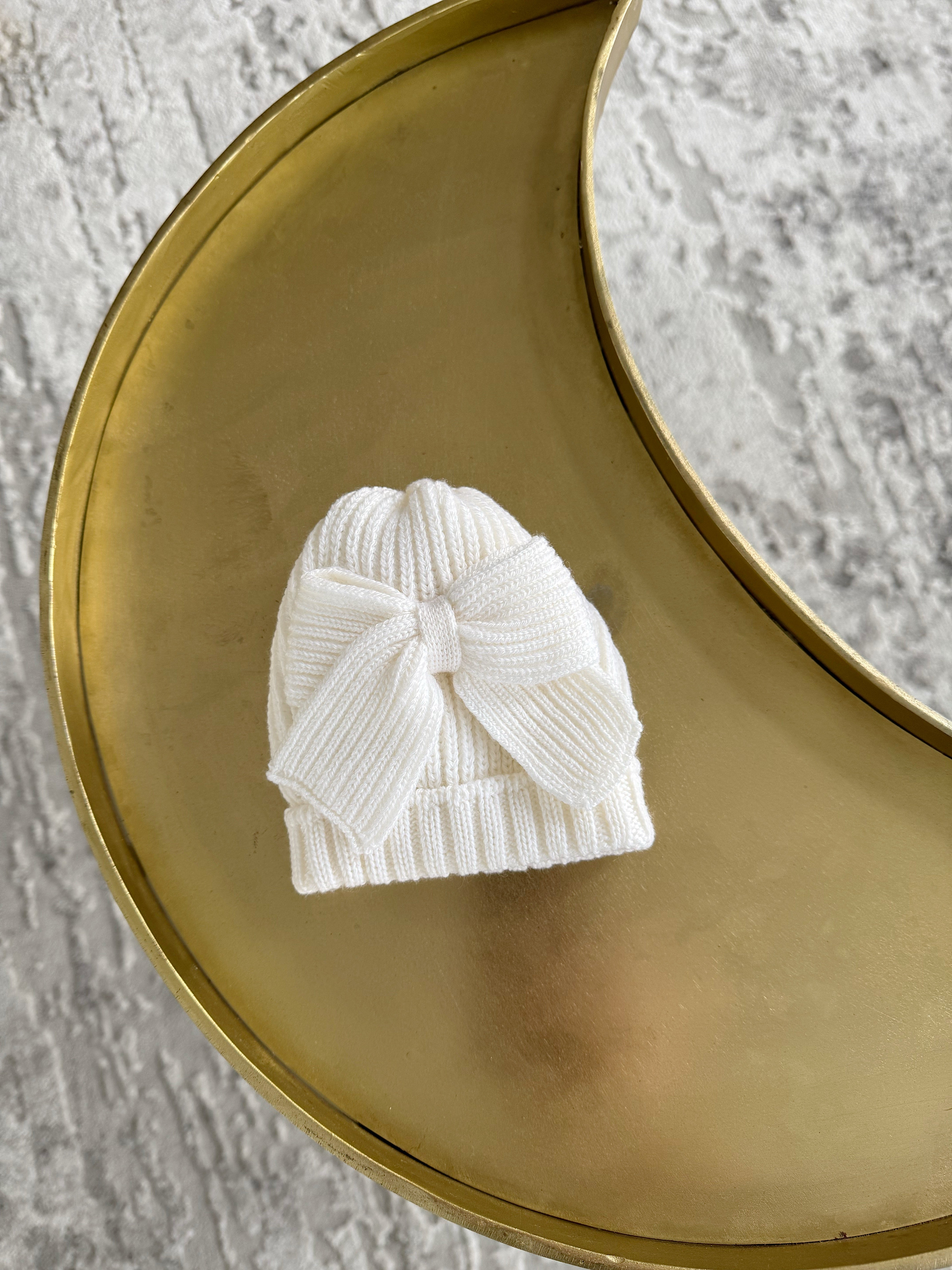 Beautiful knitted Merino wool Ivory/White Baby girl hat with Bow details.