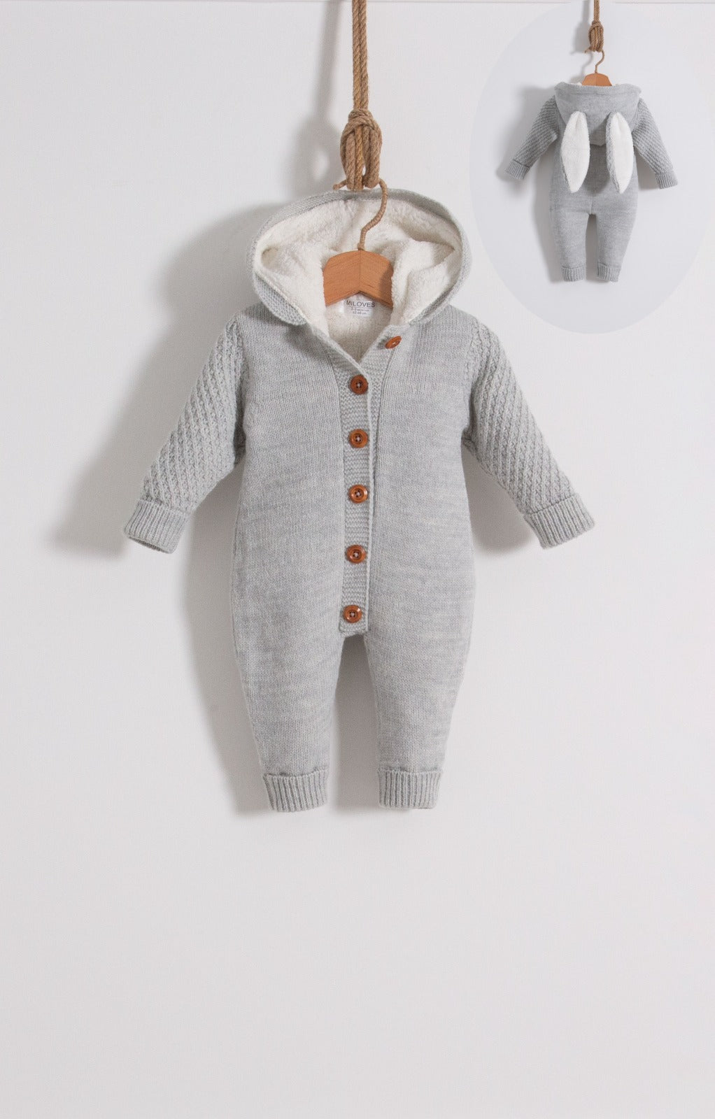 GREY MI LOVES SIGNATURE Knitted BUNNY Pramsuit.