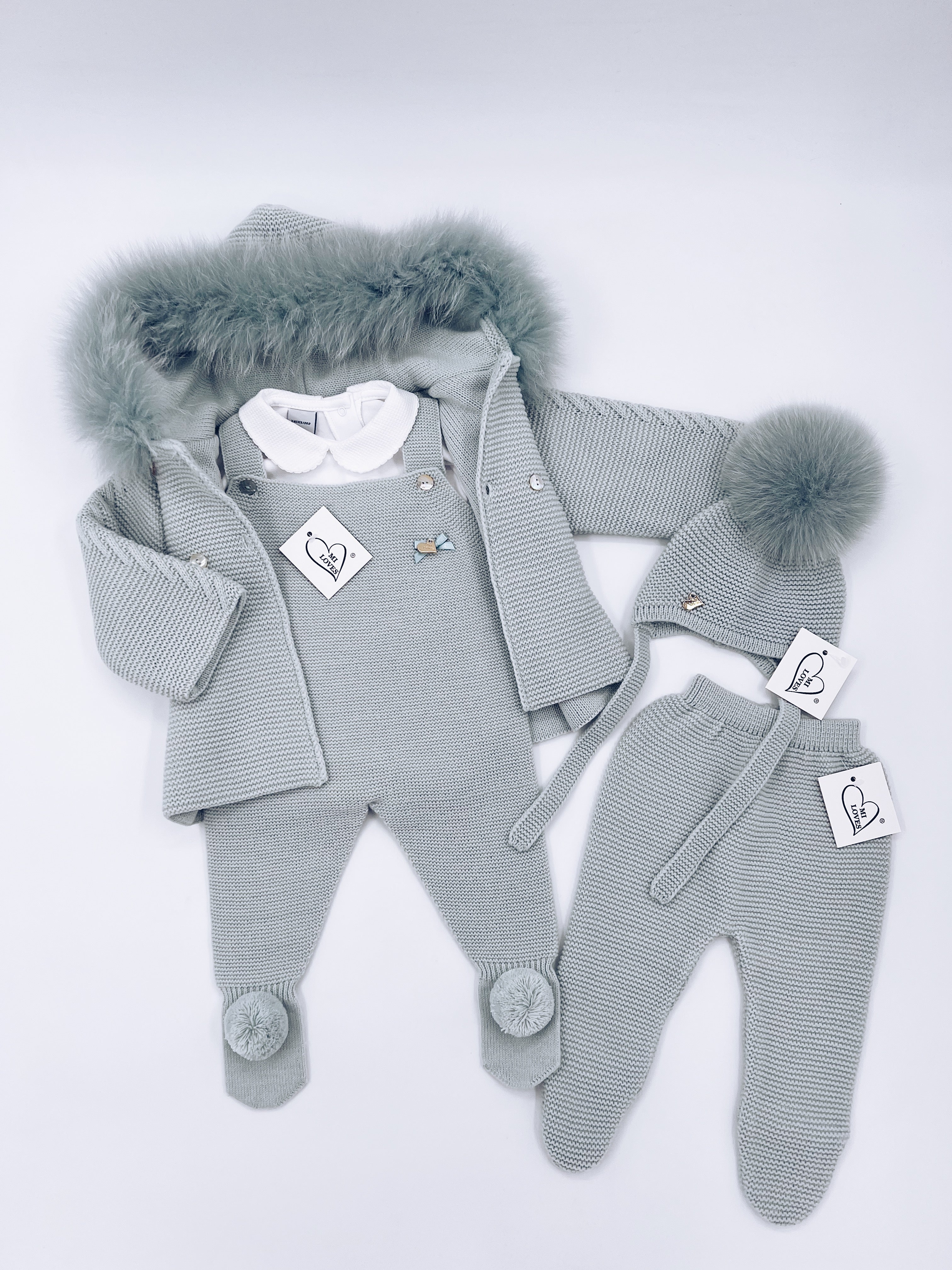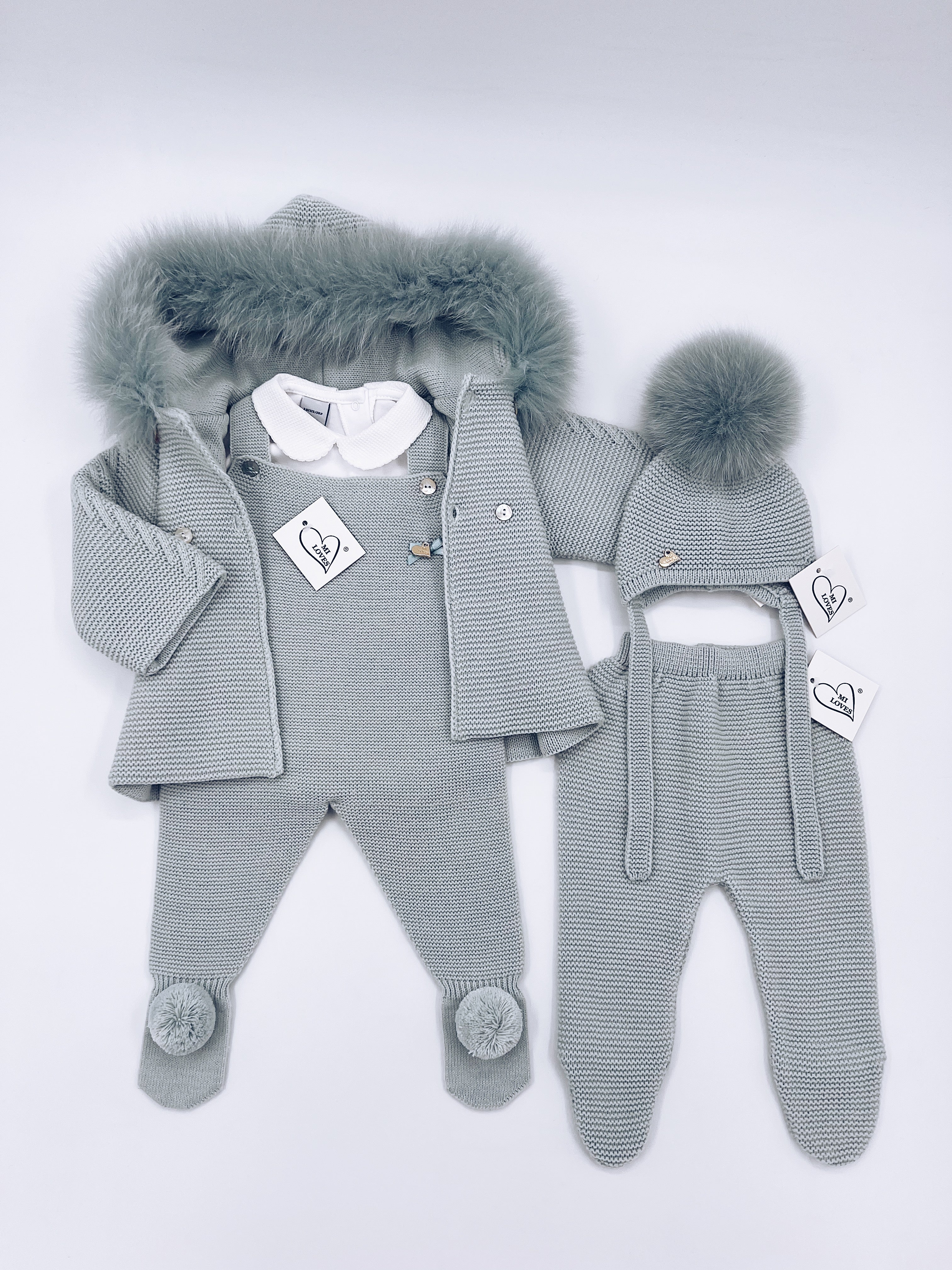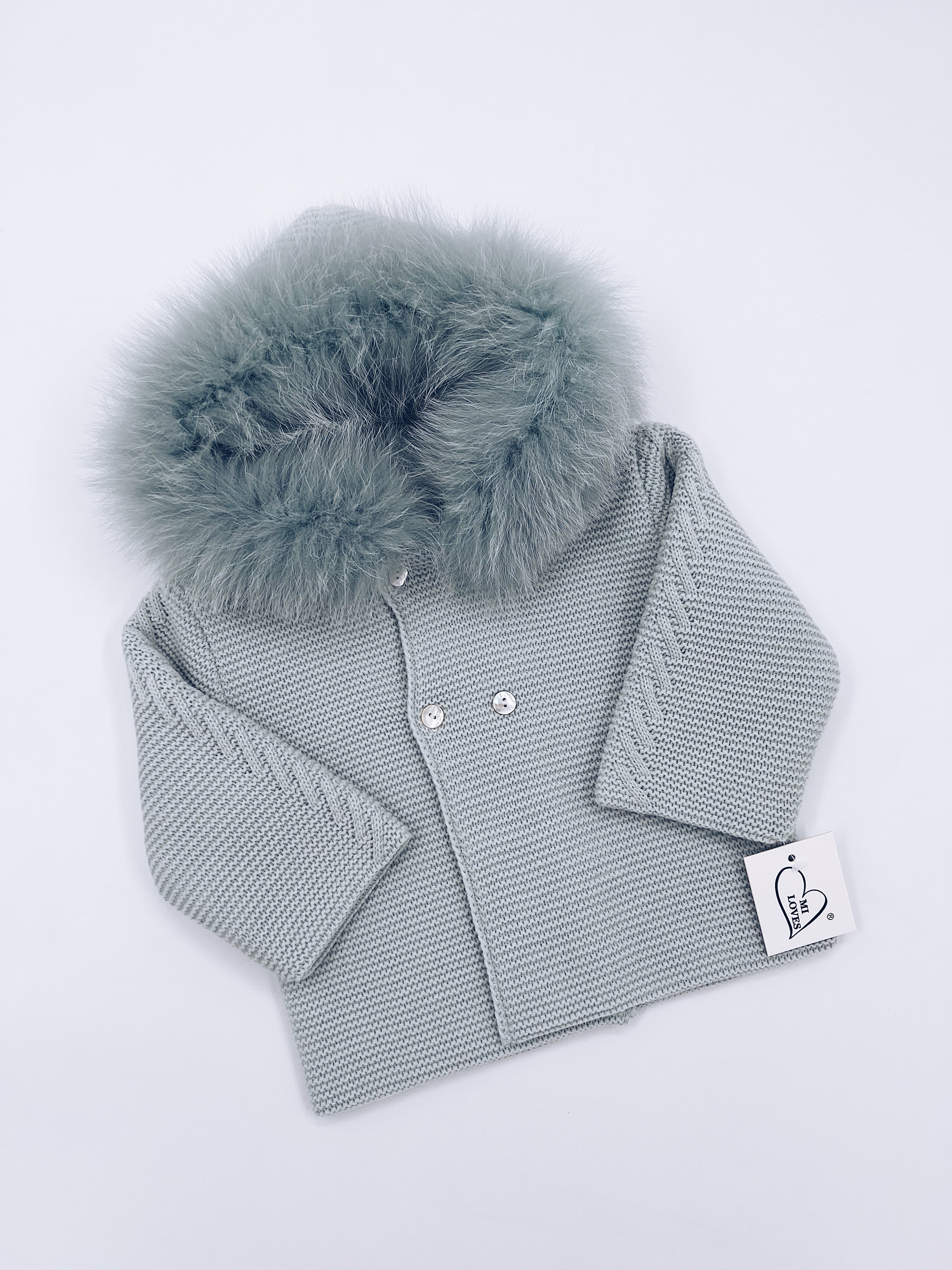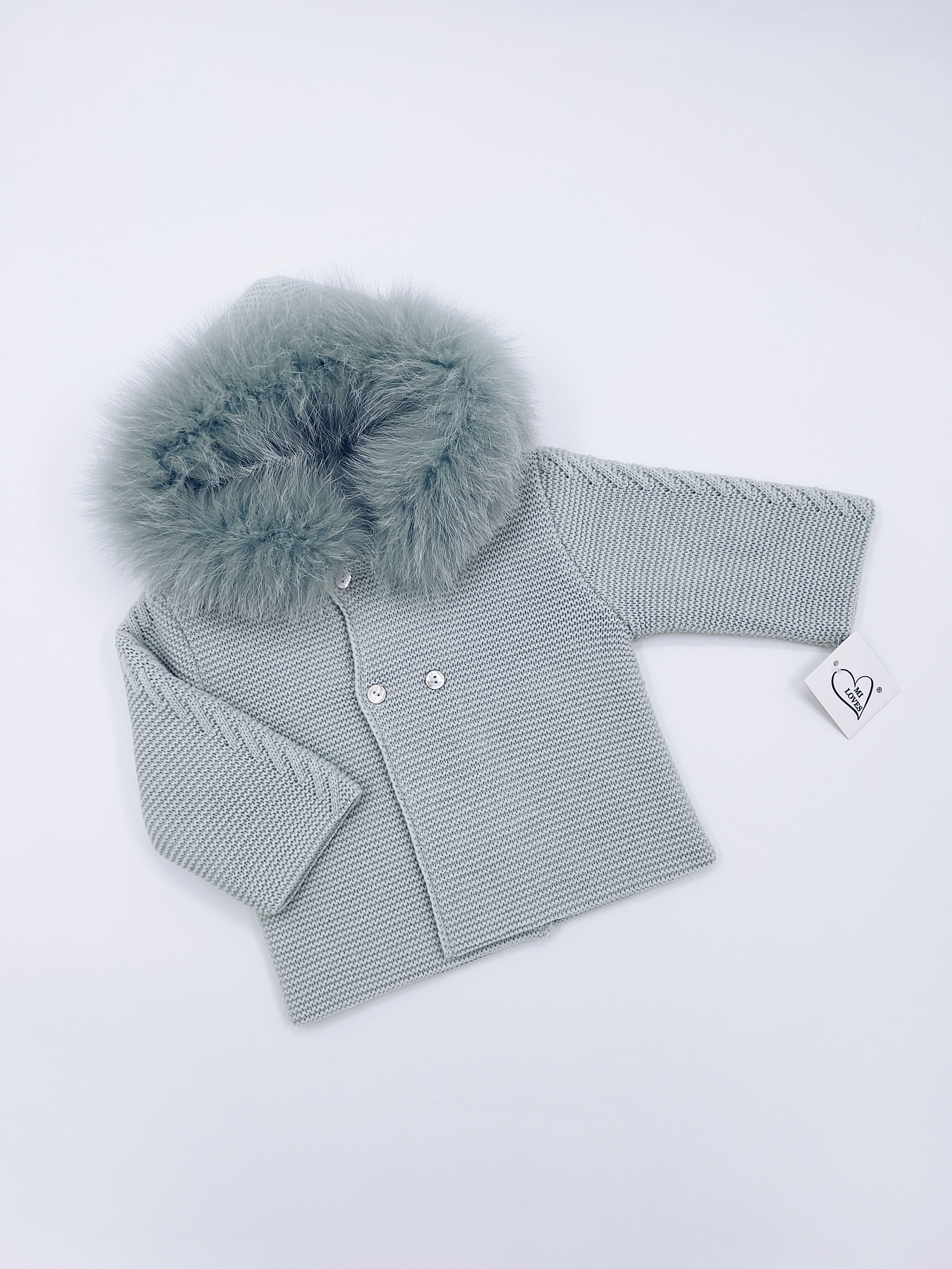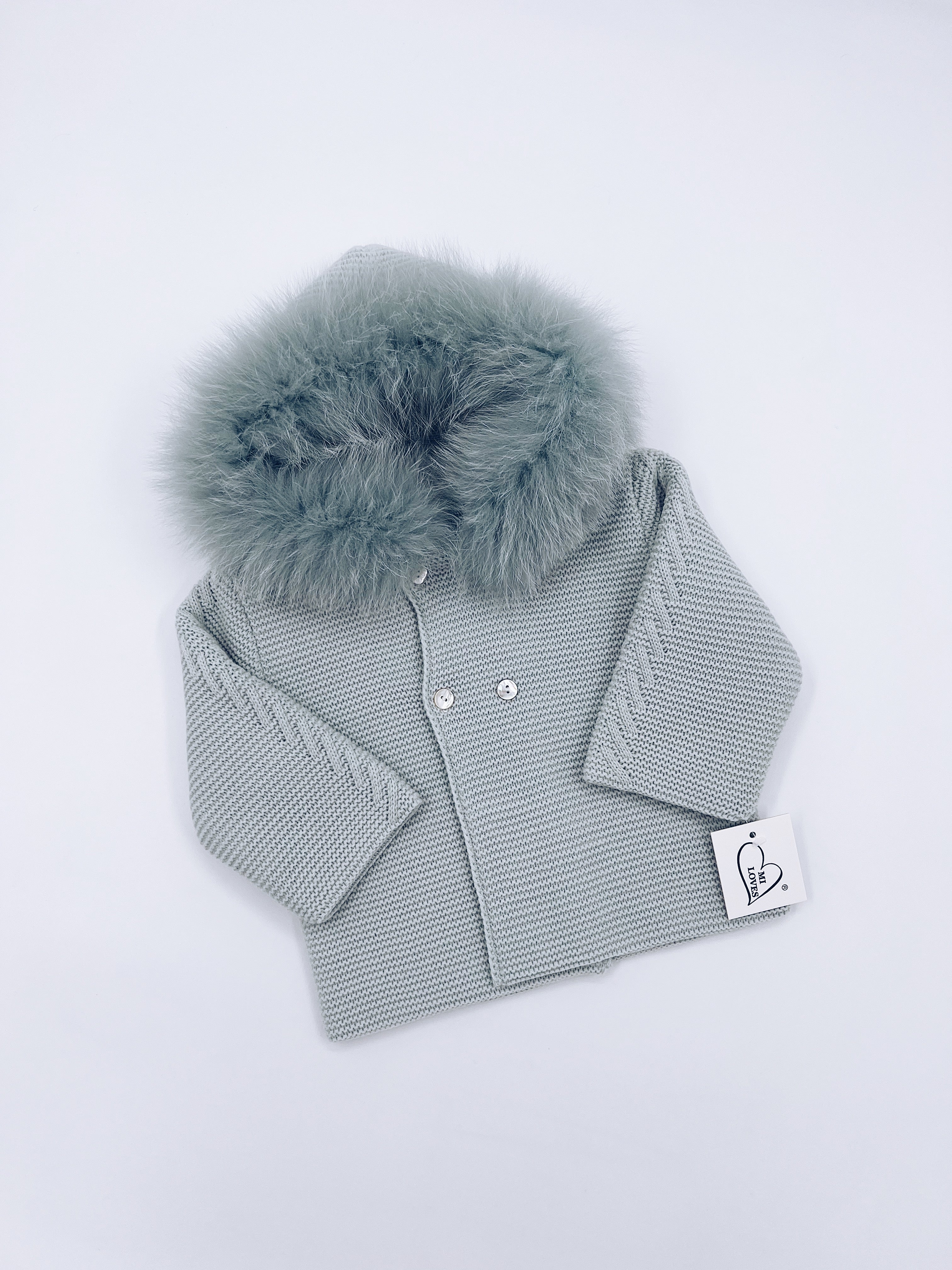MI LOVES Beautiful Mint Knitted Cardigan with Luxurious fur trim.