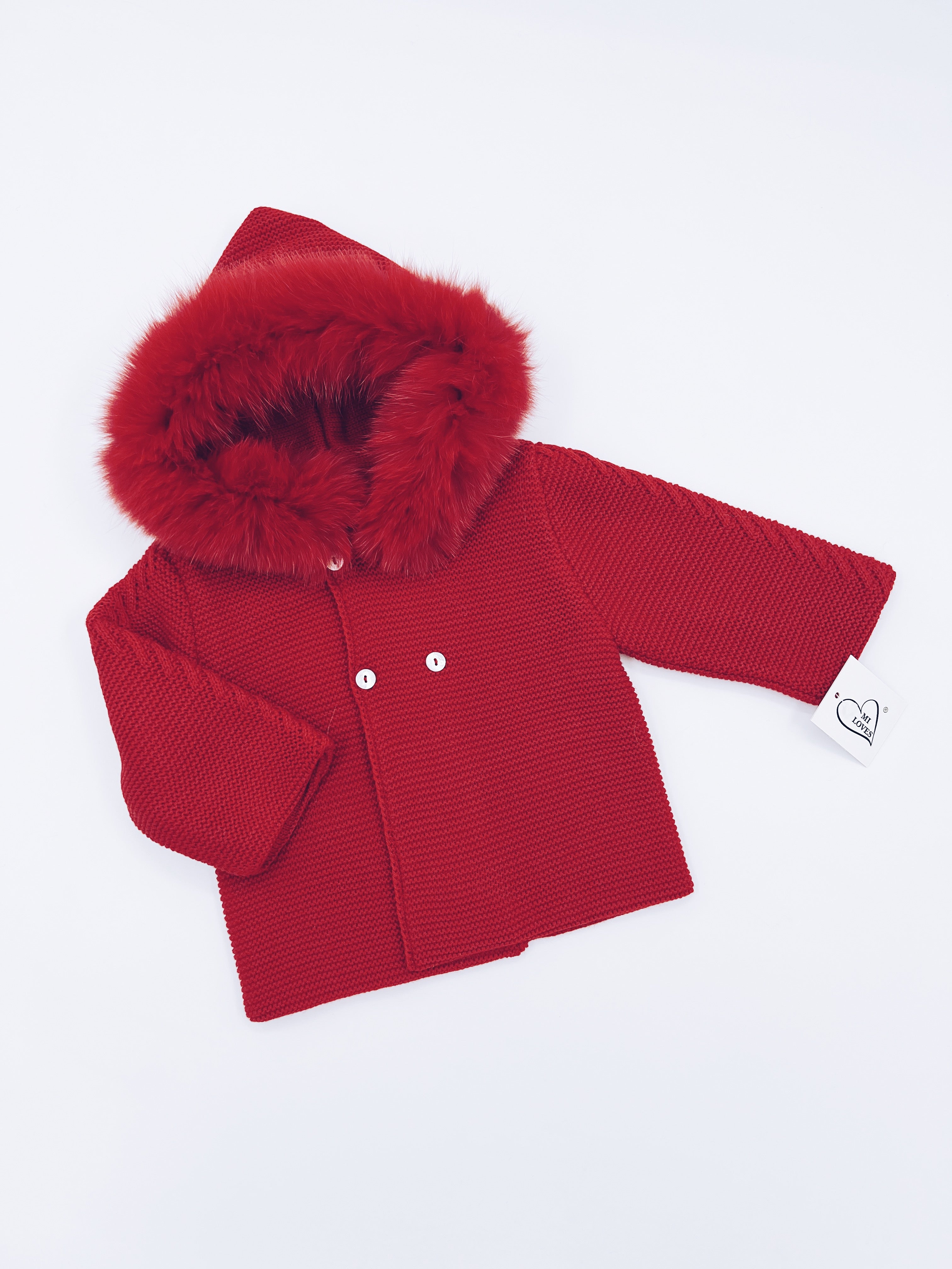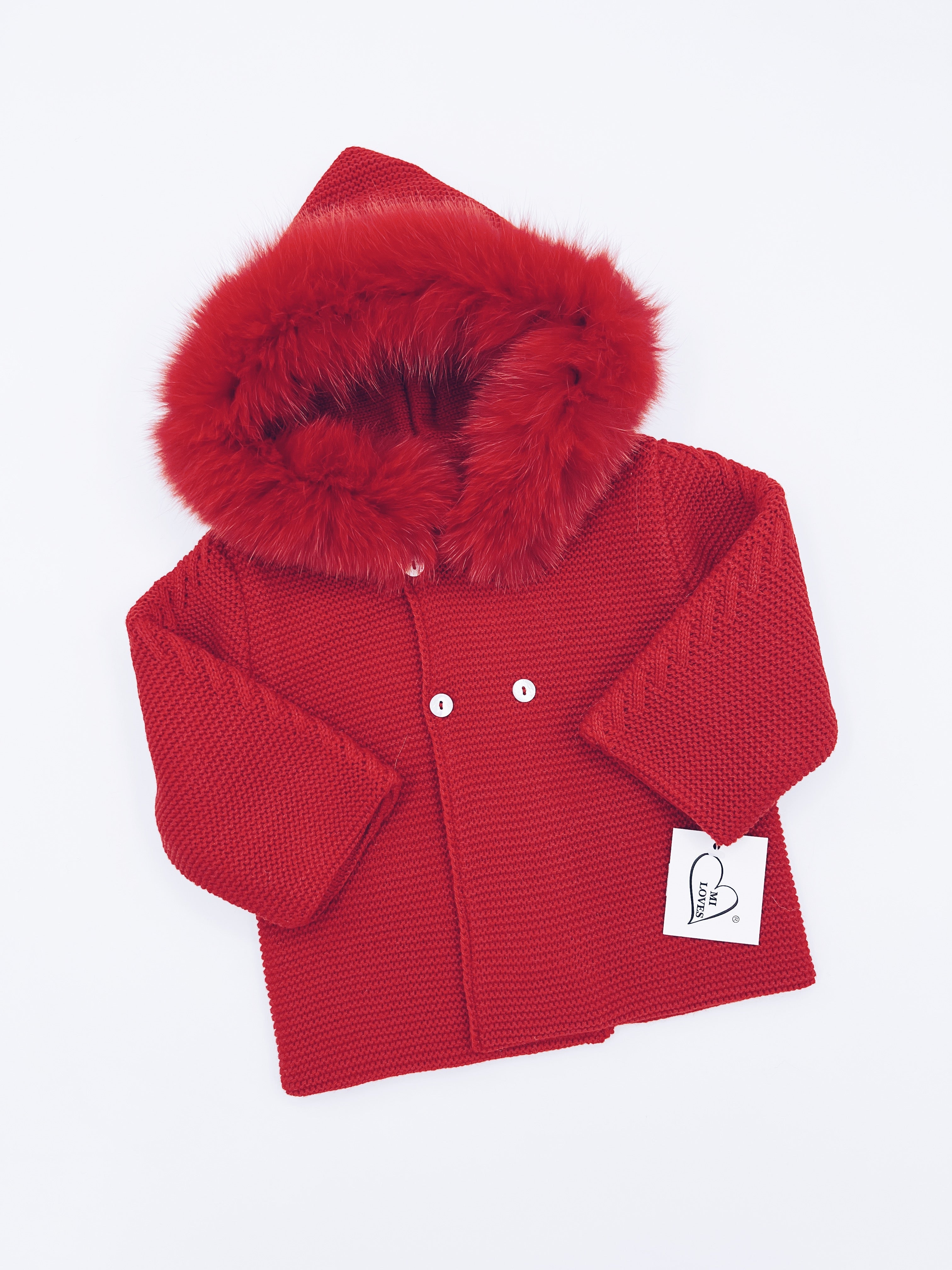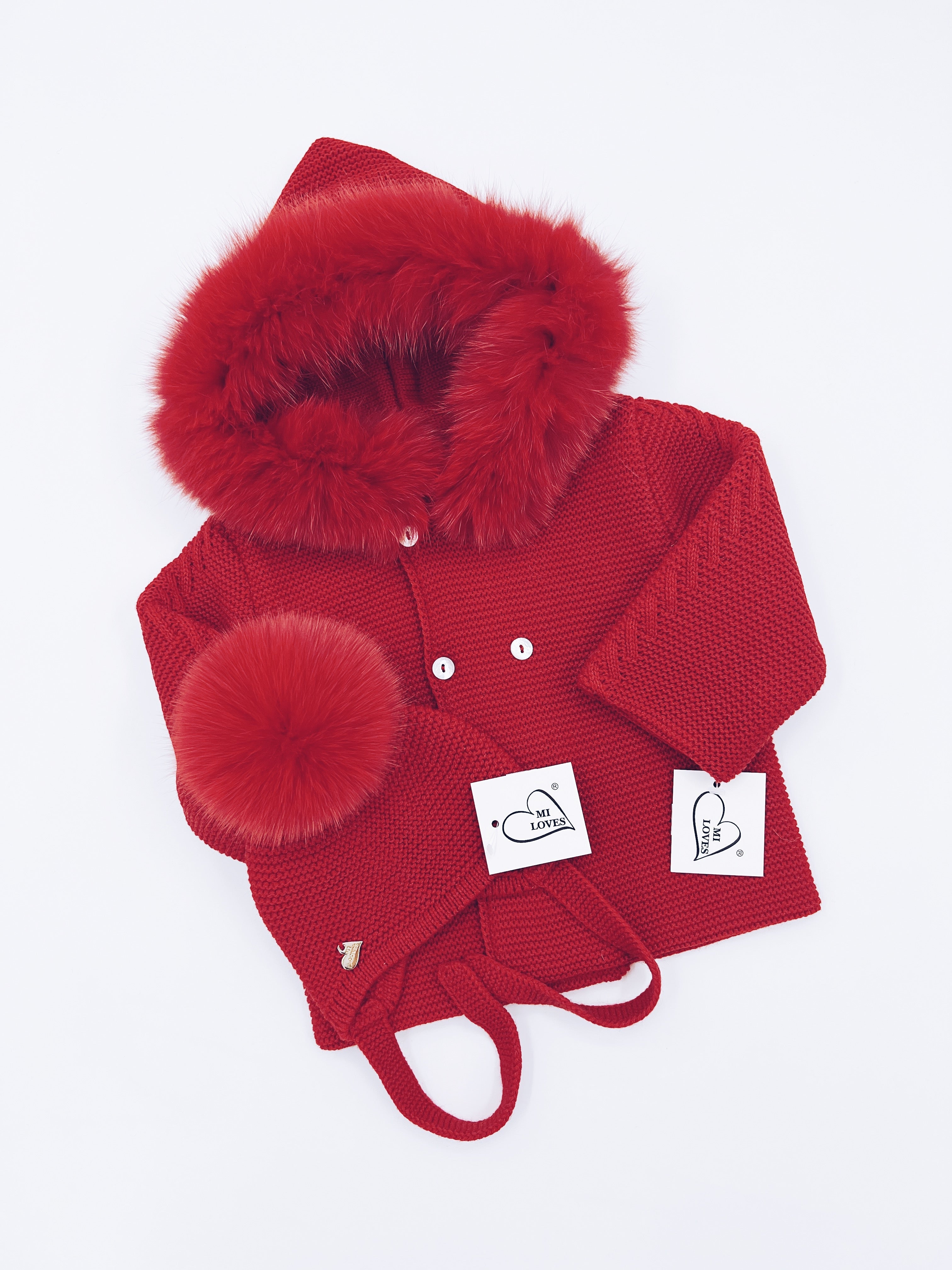 MI LOVES Beautiful Red Knitted Cardigan with Luxurious fur trim.