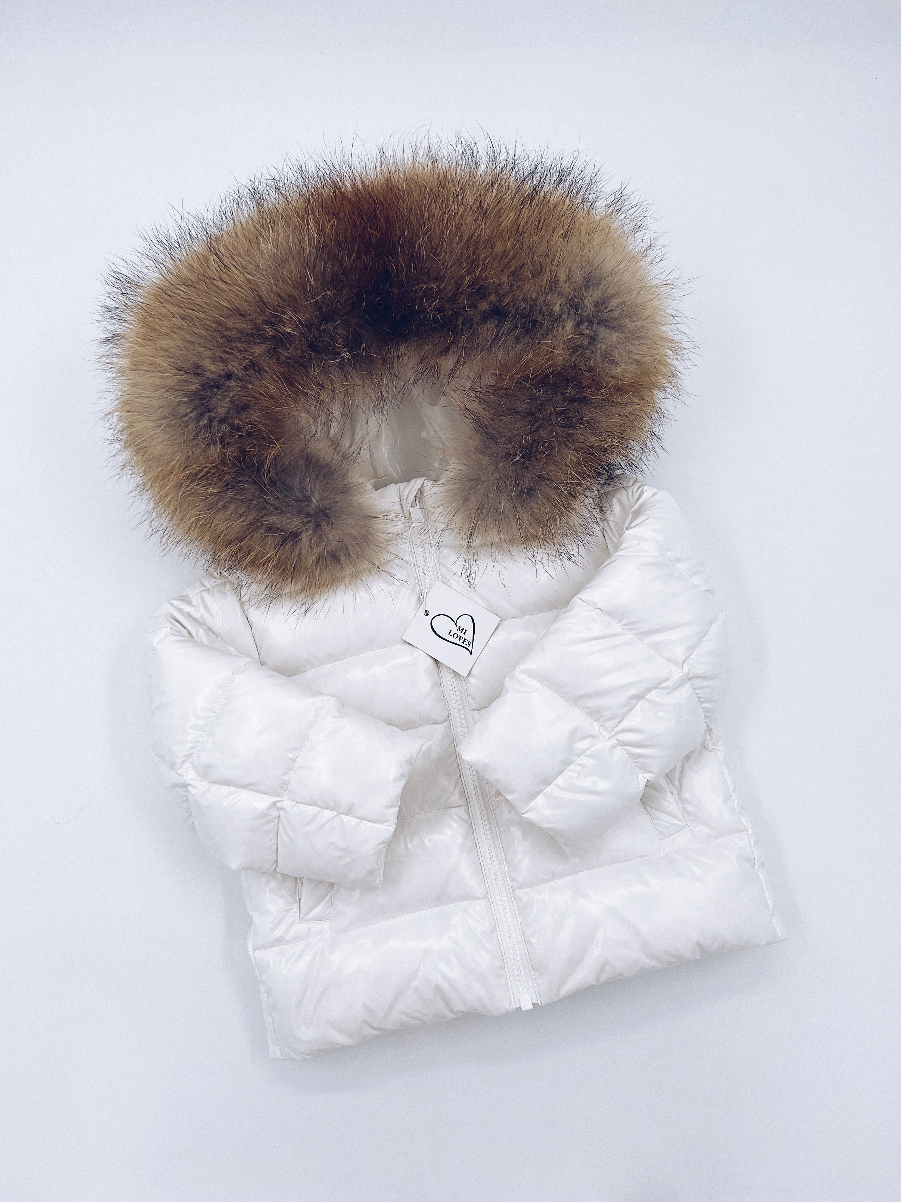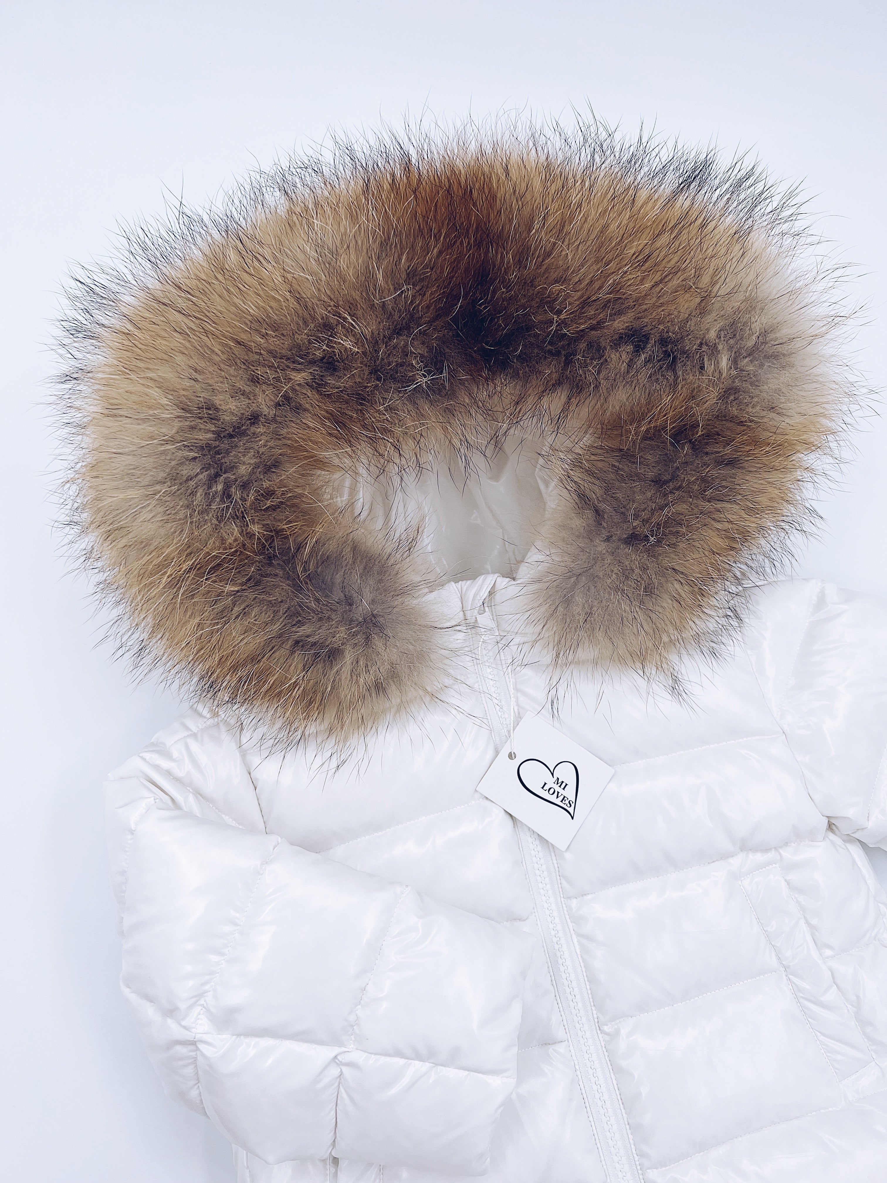 MI LOVES SIGNATURE White Luxurious Racoon Fur Trim puff jacket