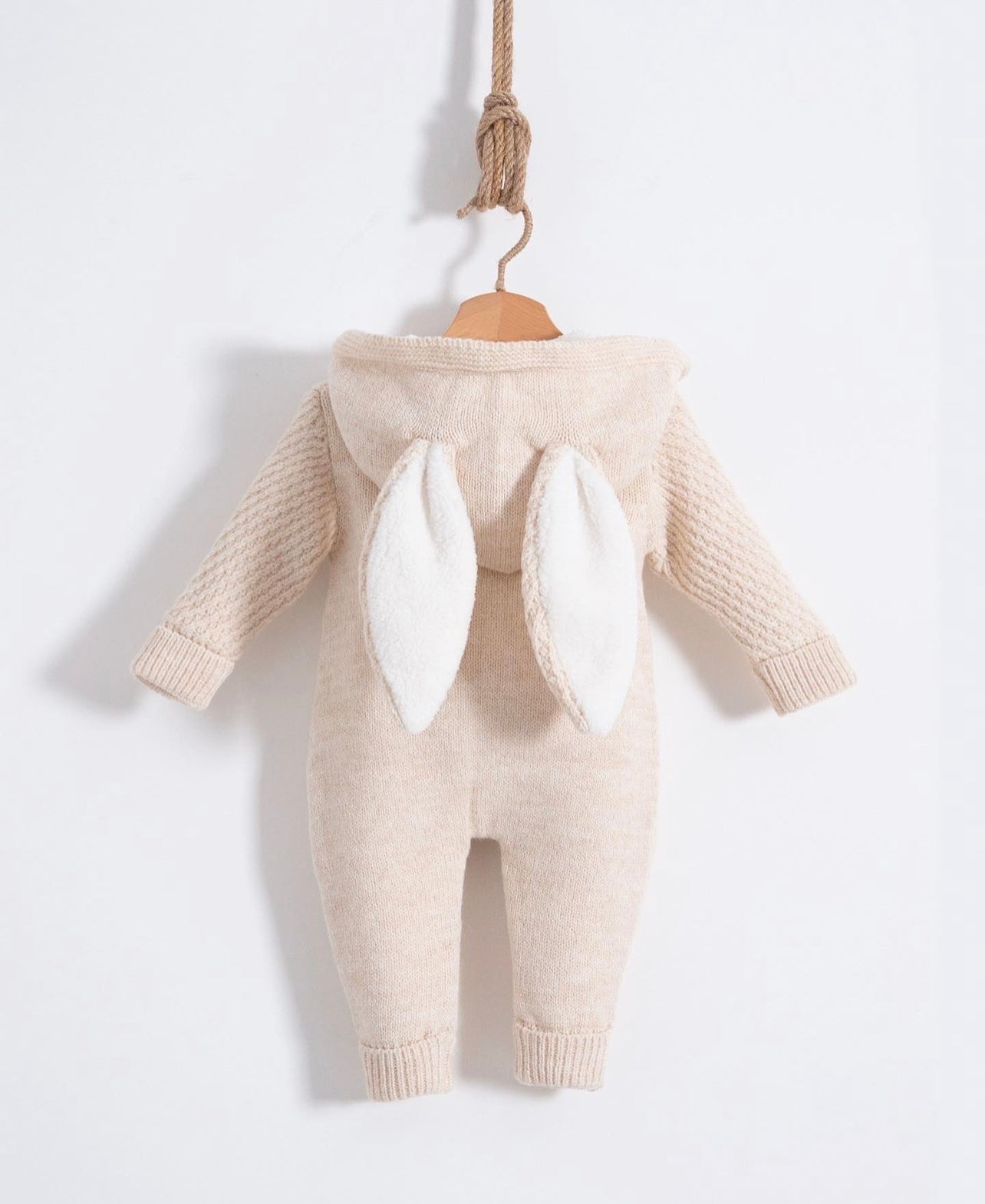 Beige MI LOVES SIGNATURE Knitted BUNNY Pramsuit.