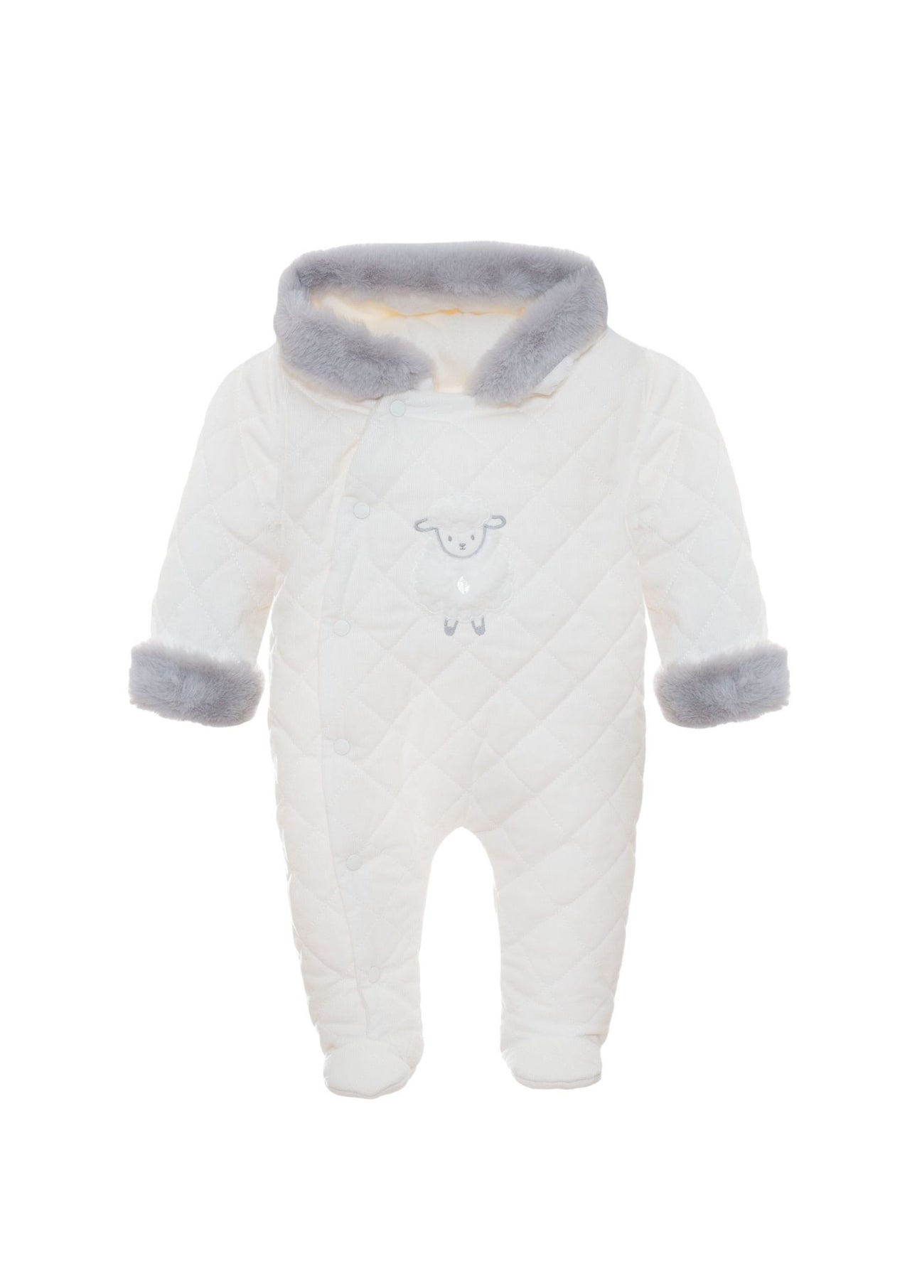 Ivory/Grey fur Quilted Cotton Pramsuit