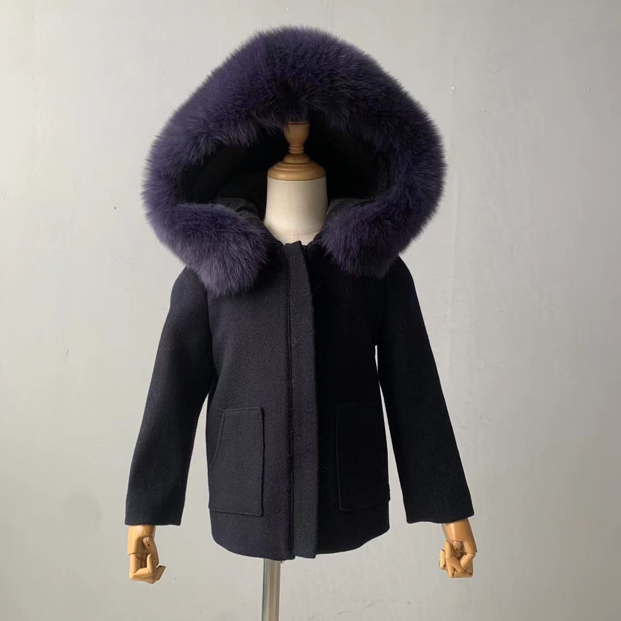MI LOVES SIGNATURE Luxurious wool kids coat with Fox fur trim in deep green colour.