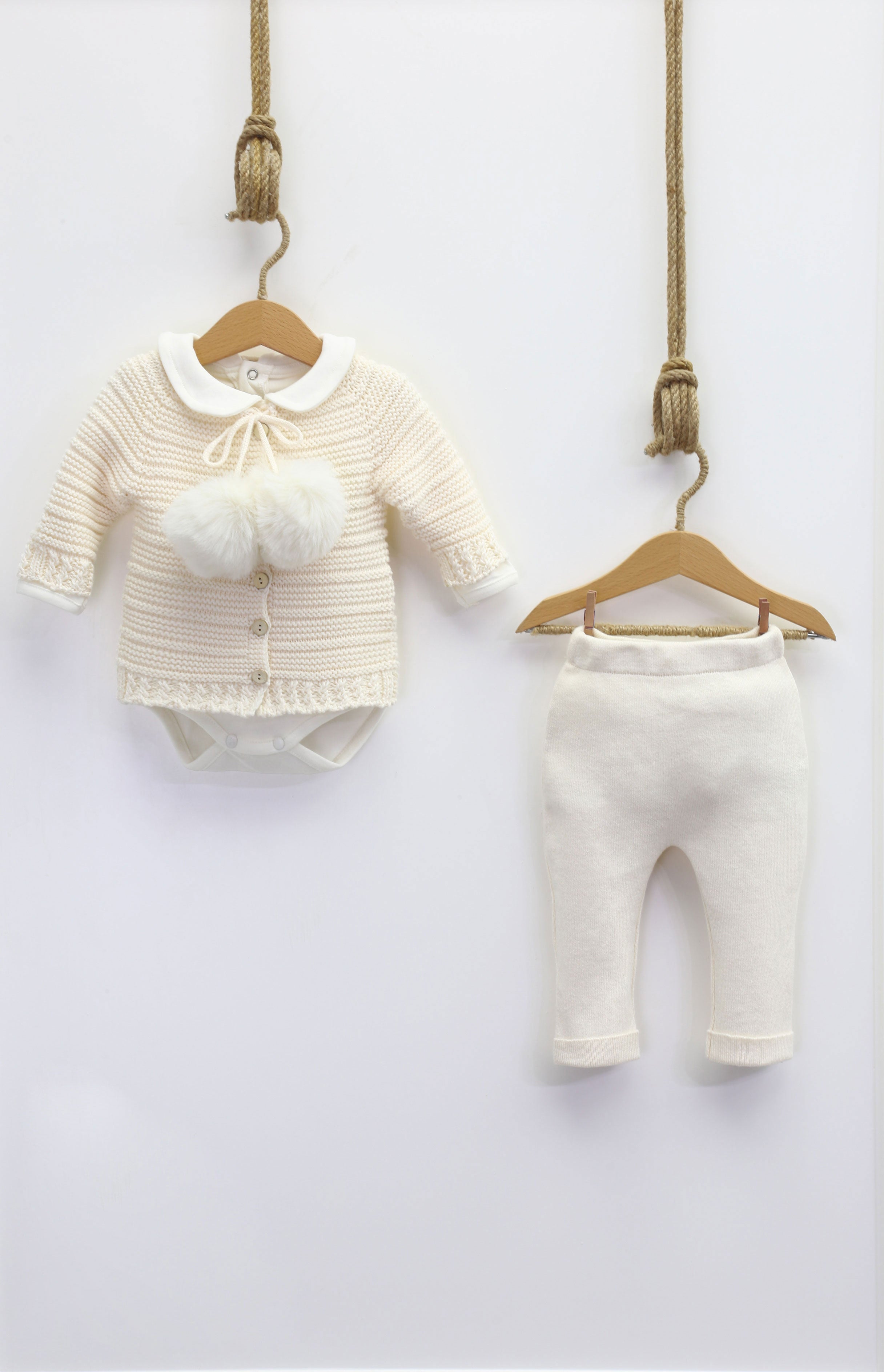 Beige Unisex Knitted baby 2 piece set(N 372)