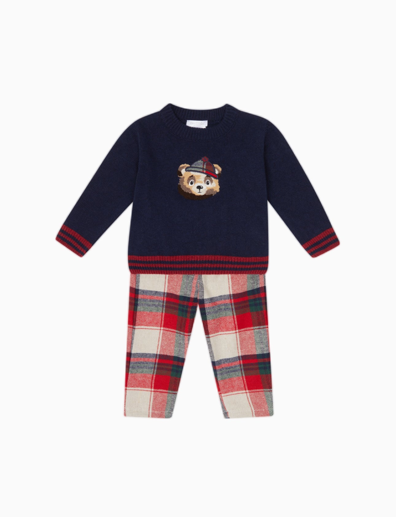 Boys TartanTrousers/ Navy Jumper 2 piece set.