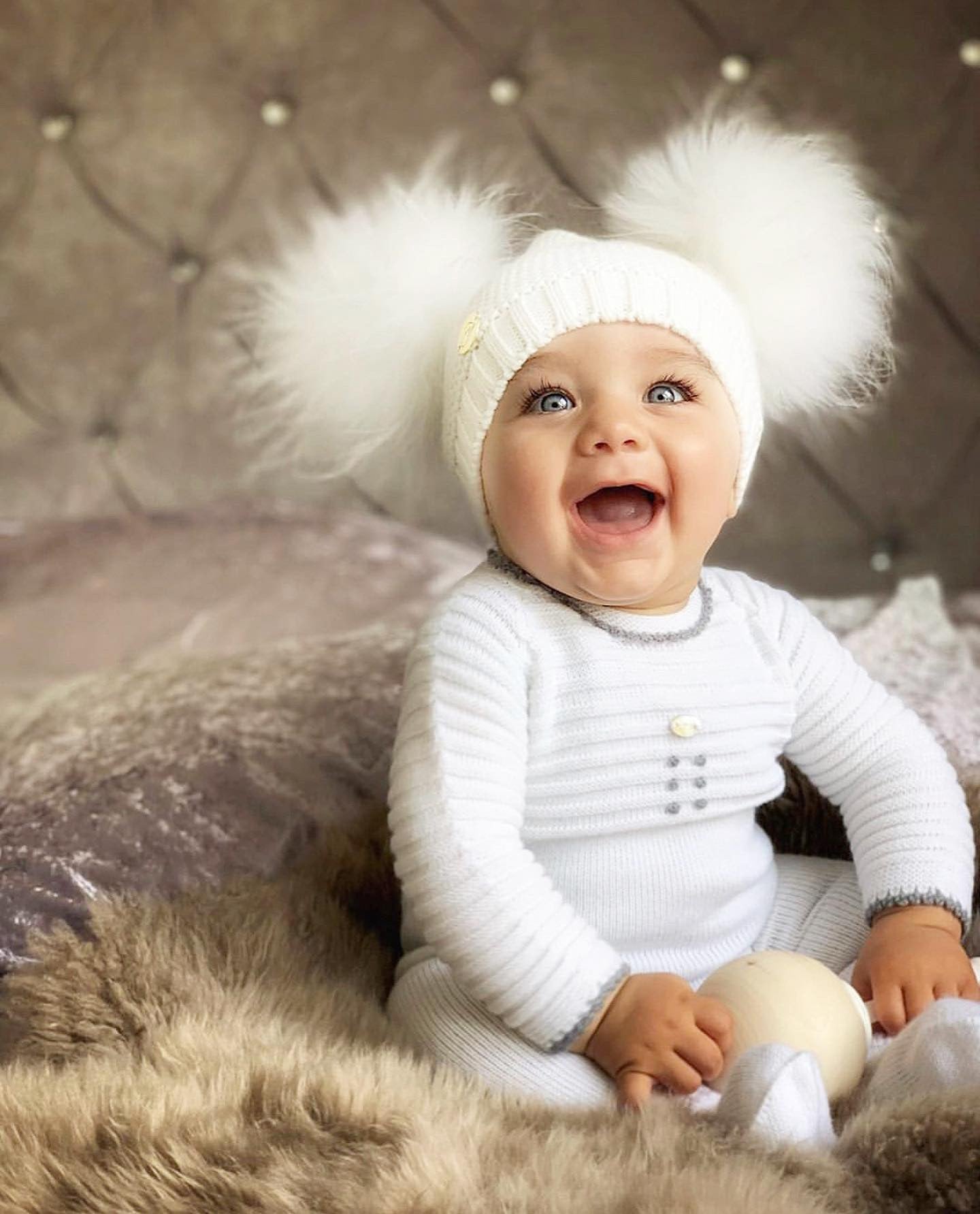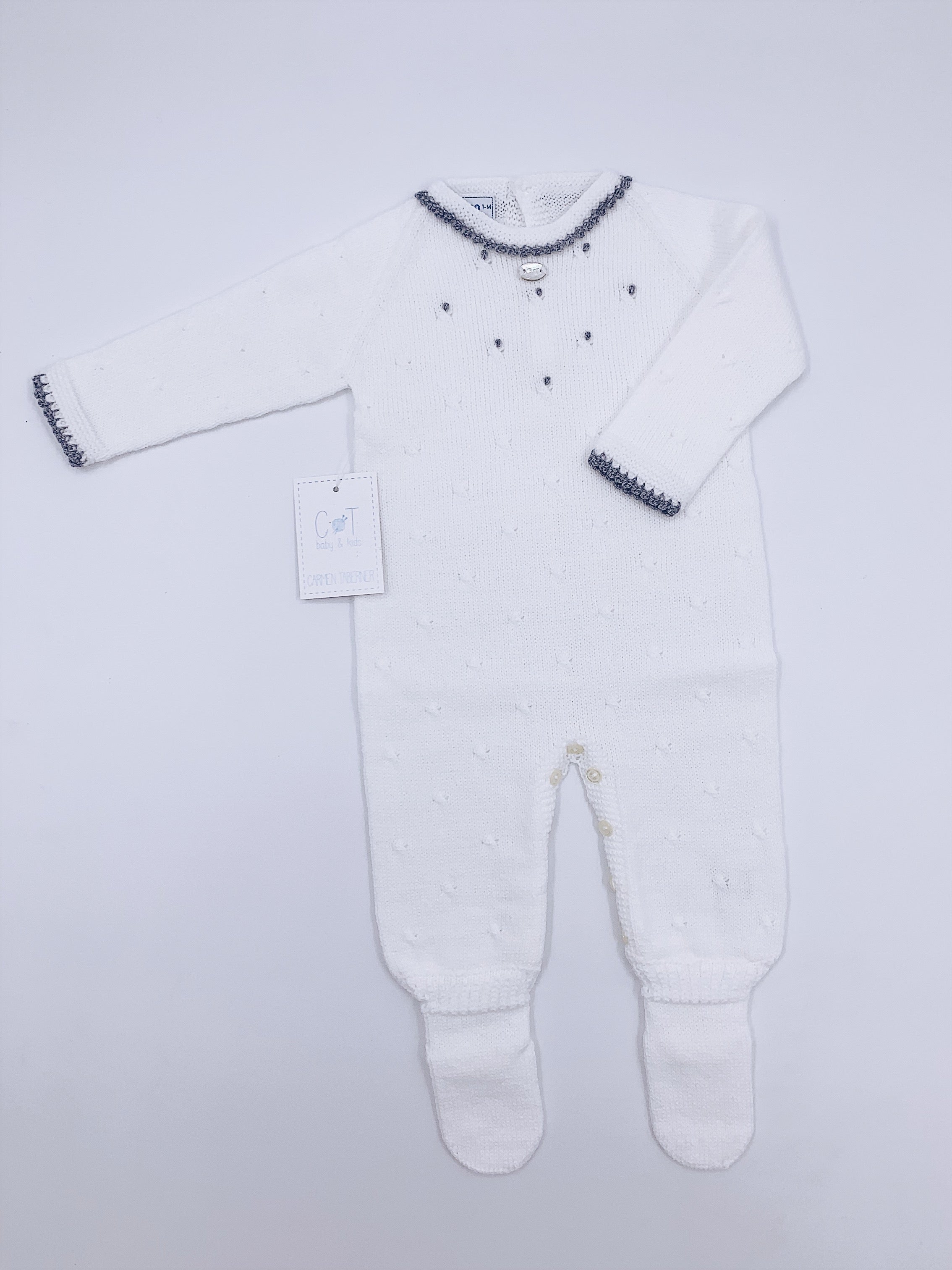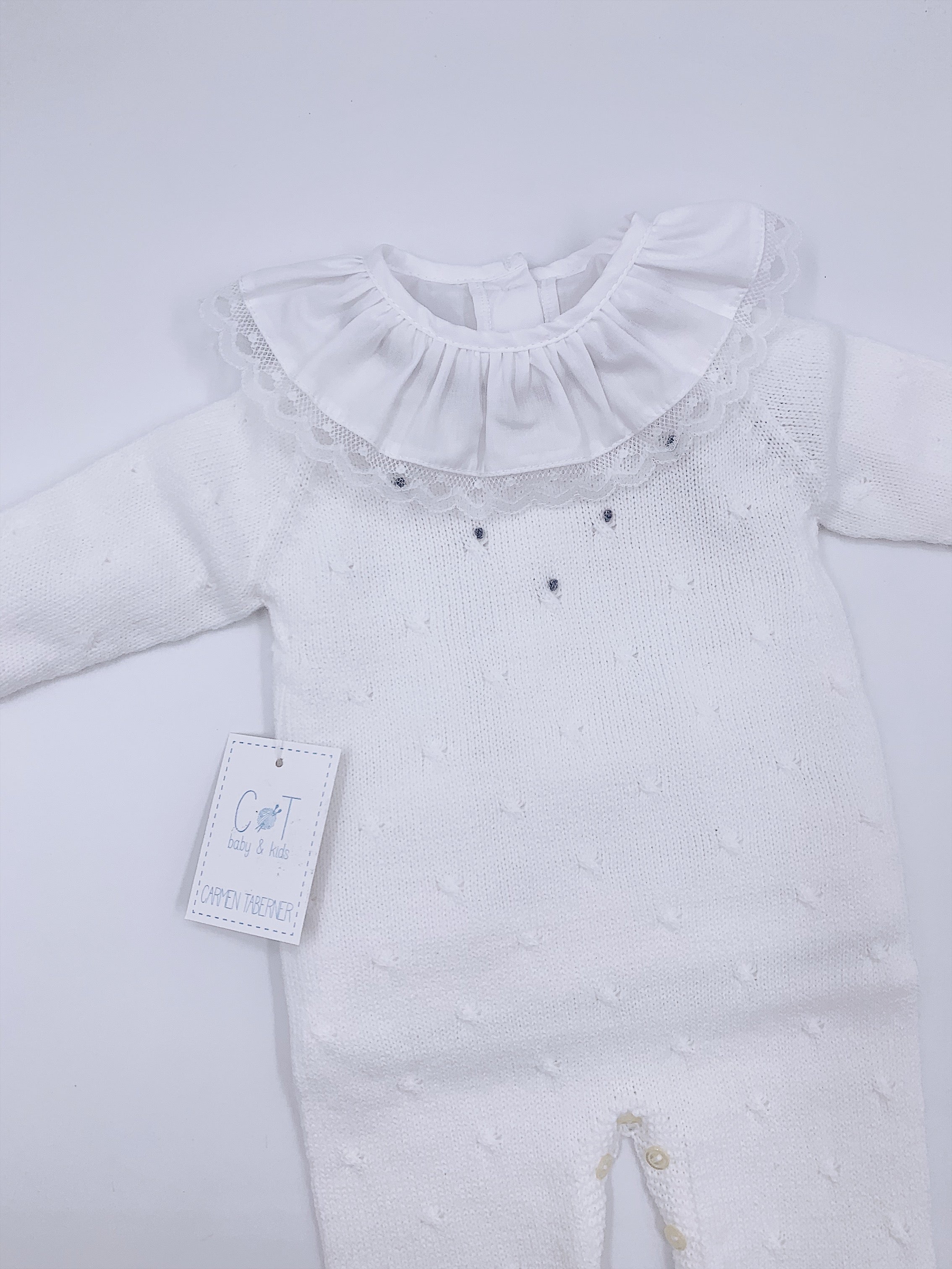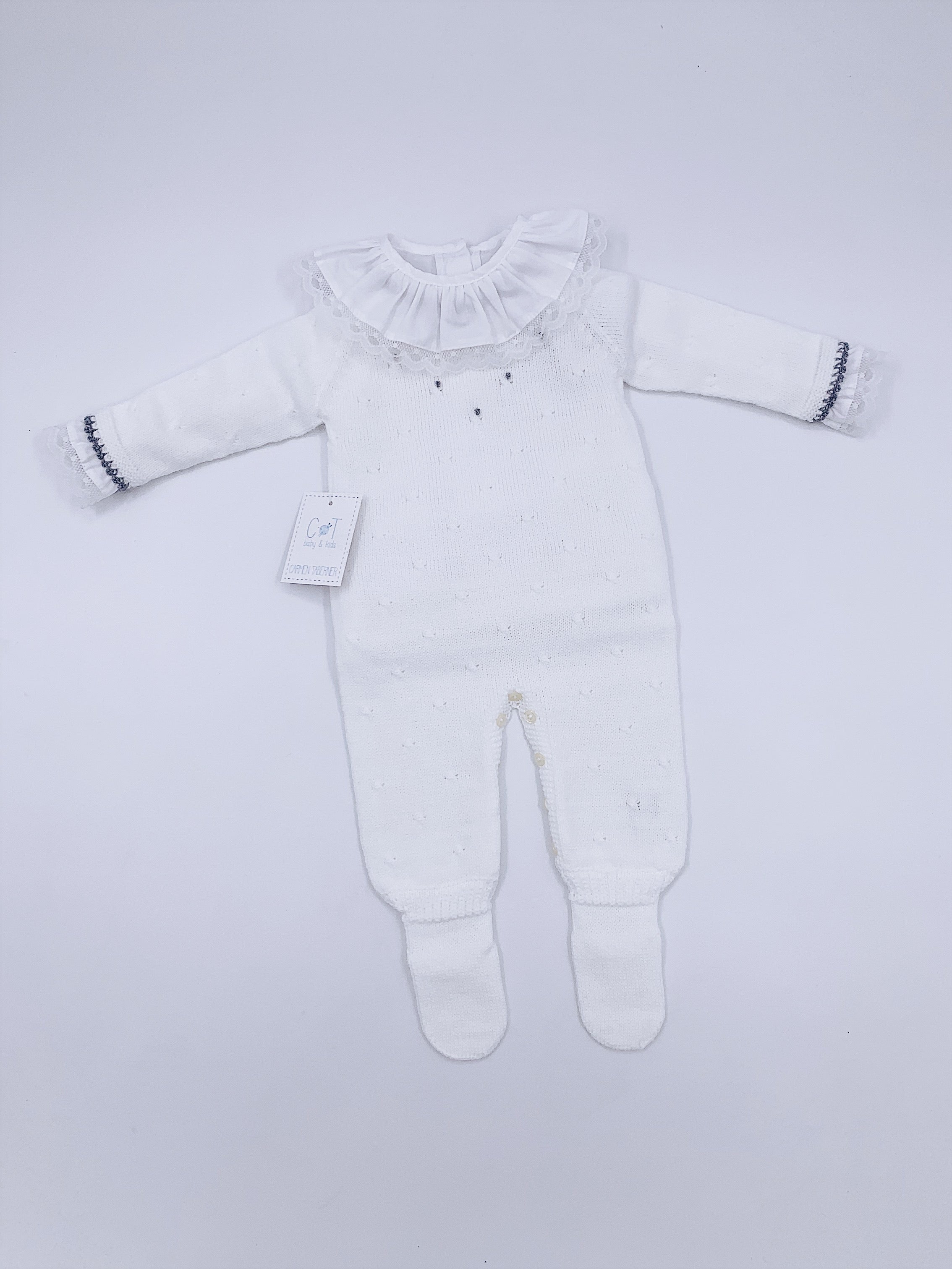 Classic/Timeless White knitted baby grow with grey details.Frilly and Lace details Bodysuit sold separately .