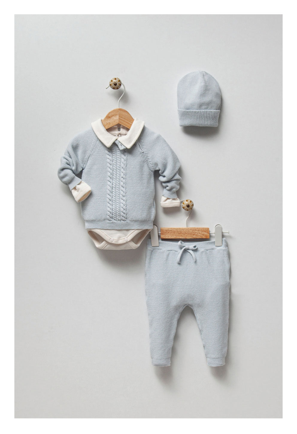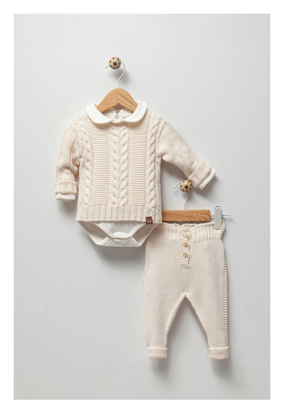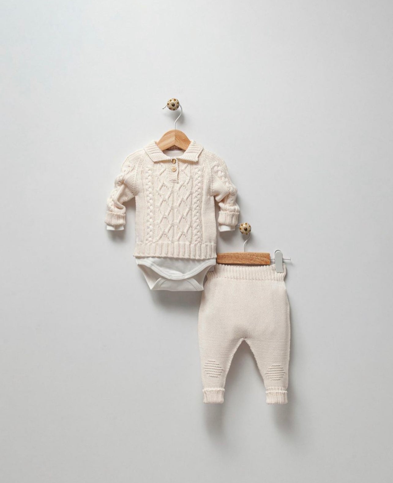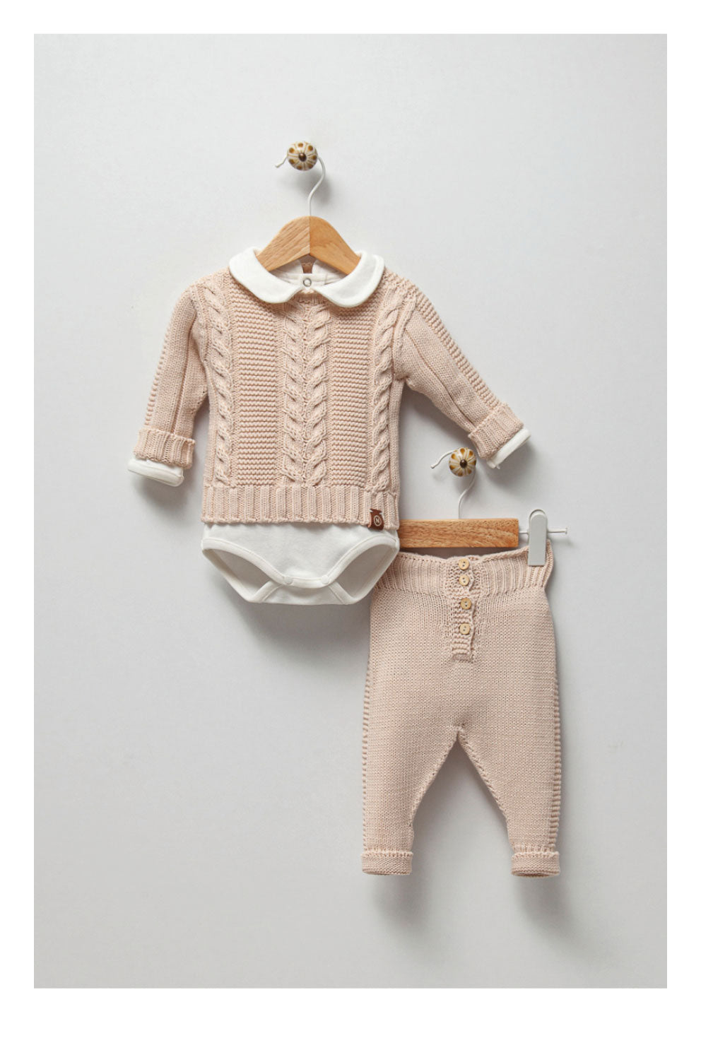 Beautiful Stone Knitted Baby 3 piece set(Jumper/Trousers/Bodysuit)