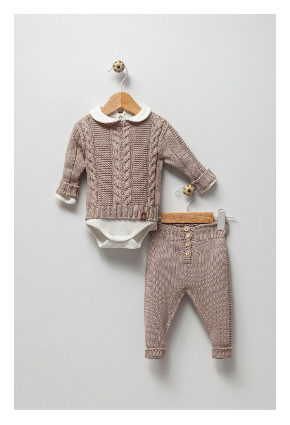 Beautiful Cappuccino Knitted Baby 3 piece set(Jumper/Trousers/Bodysuit)