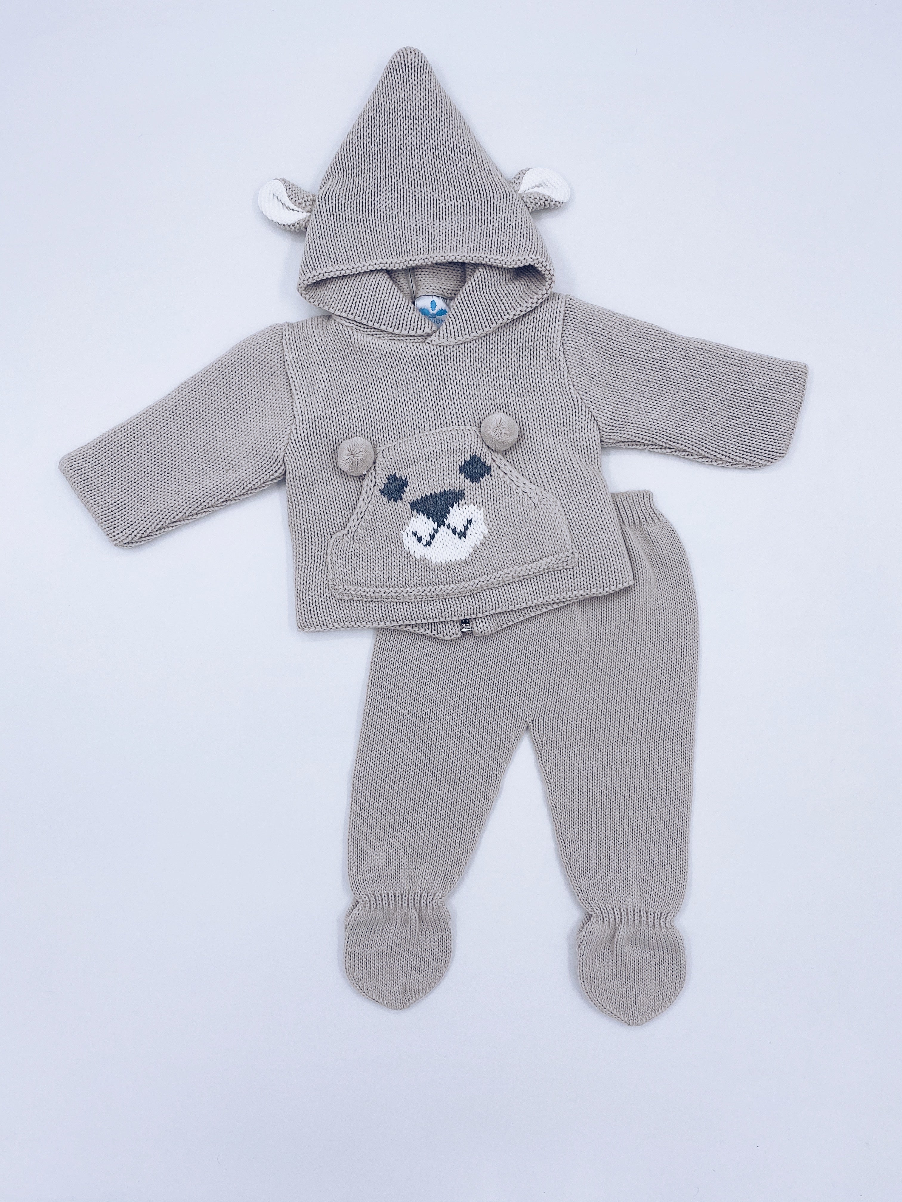 Beige knitted bear 2 piece set