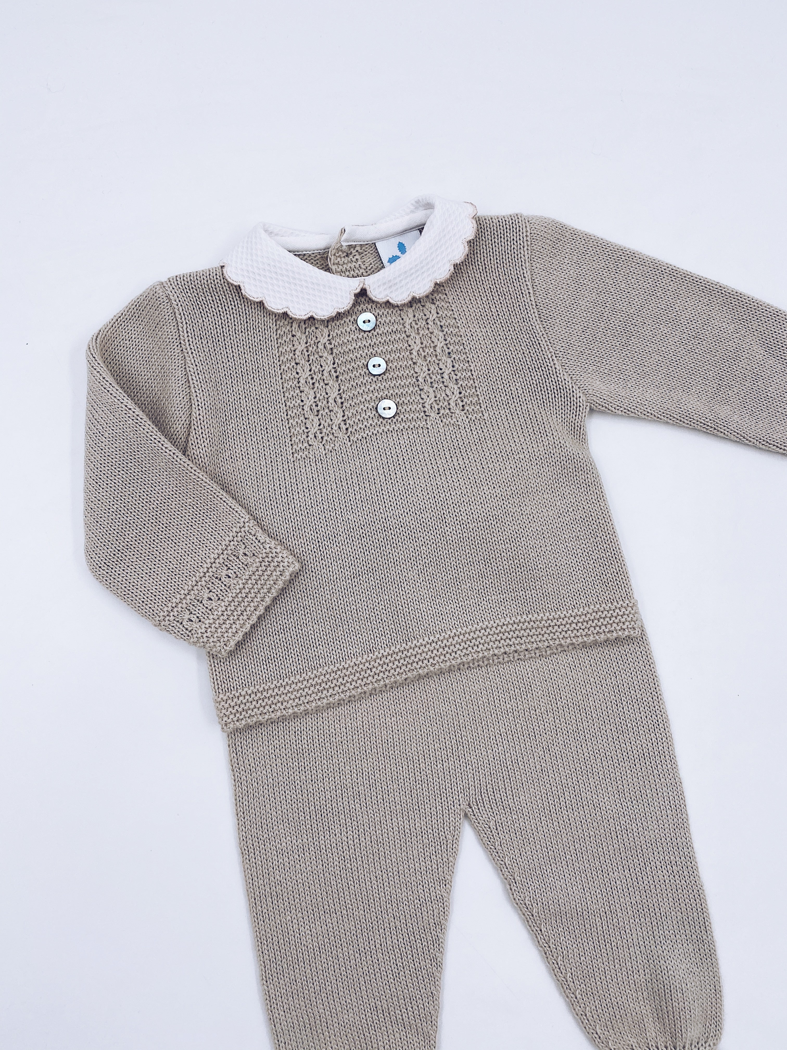 Beige Unisex Knitted baby 2 piece set(N 372)