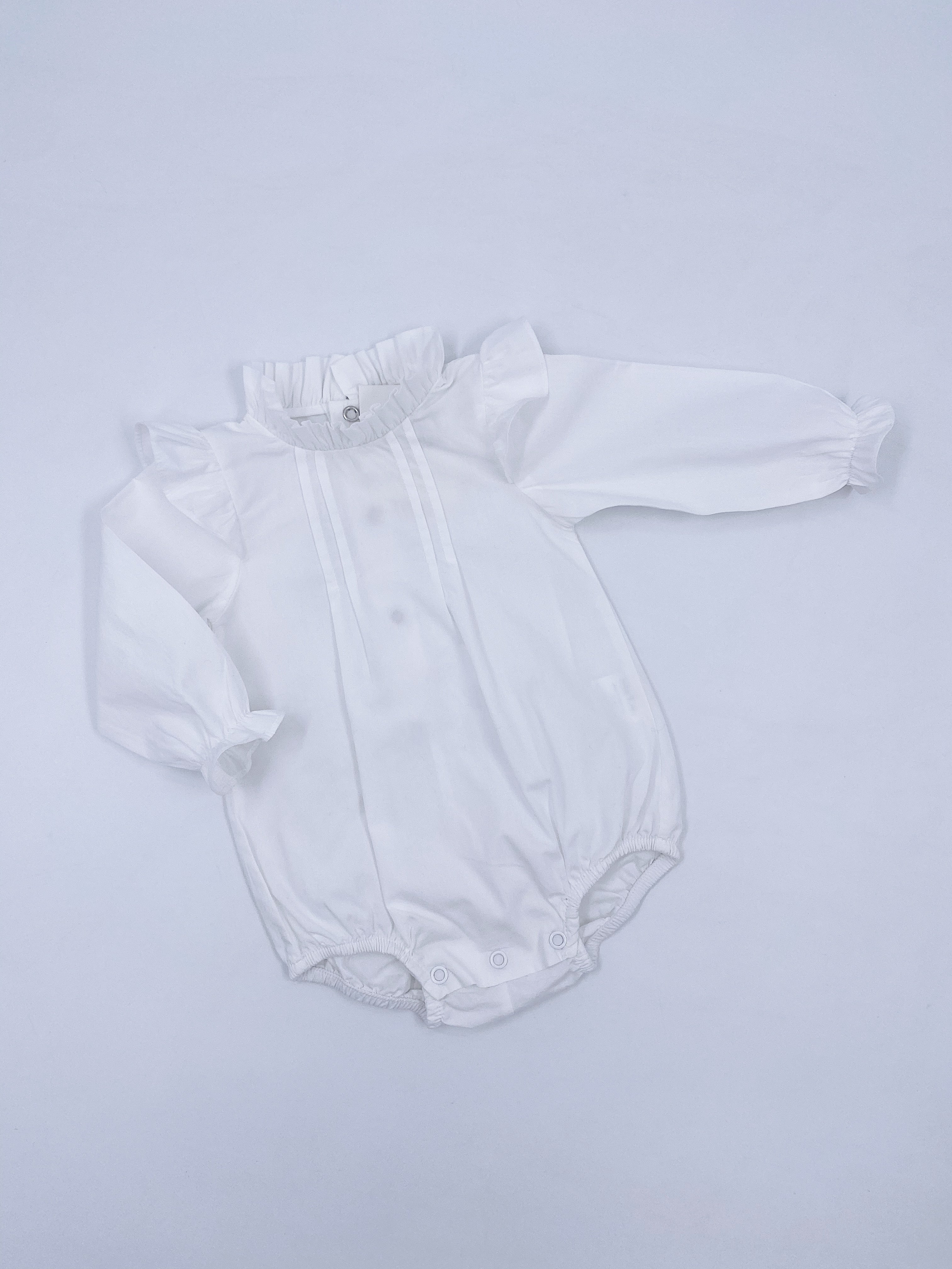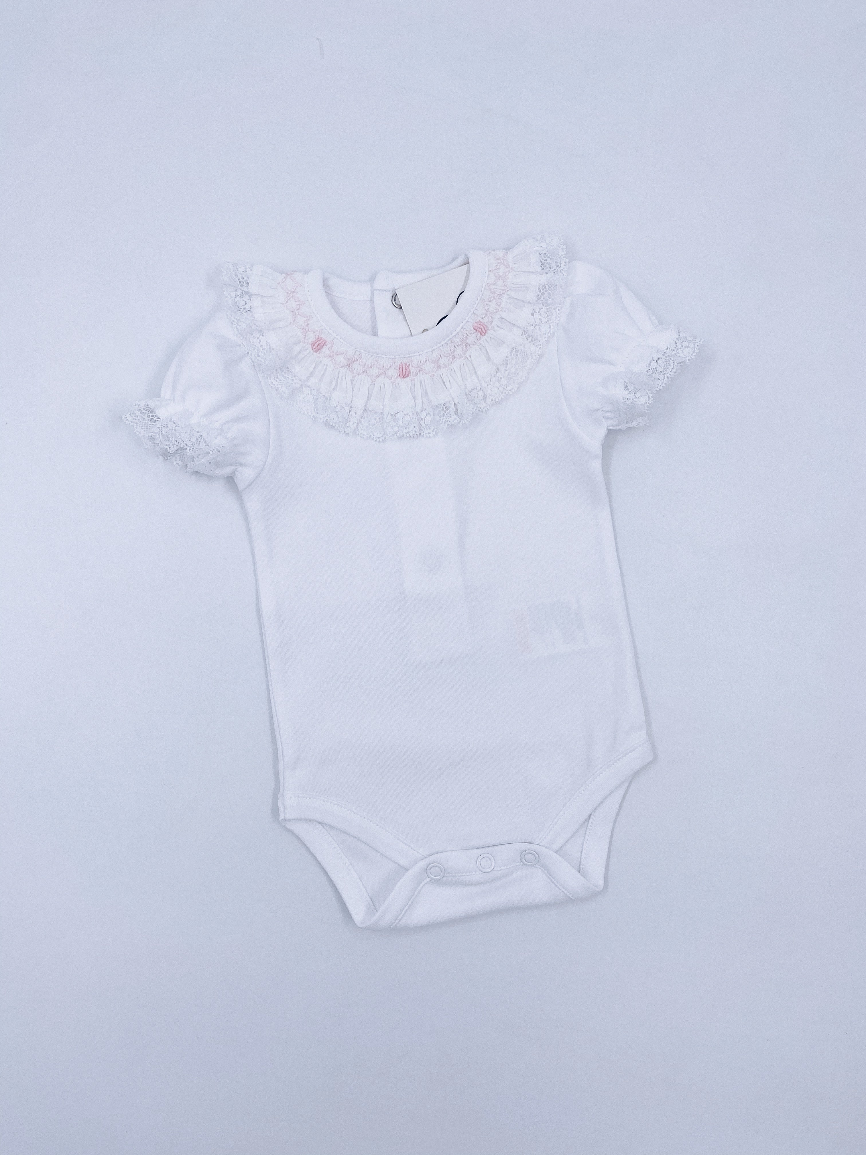 White Cotton baby vest with ruffle collar/cuffs STYLE 1191