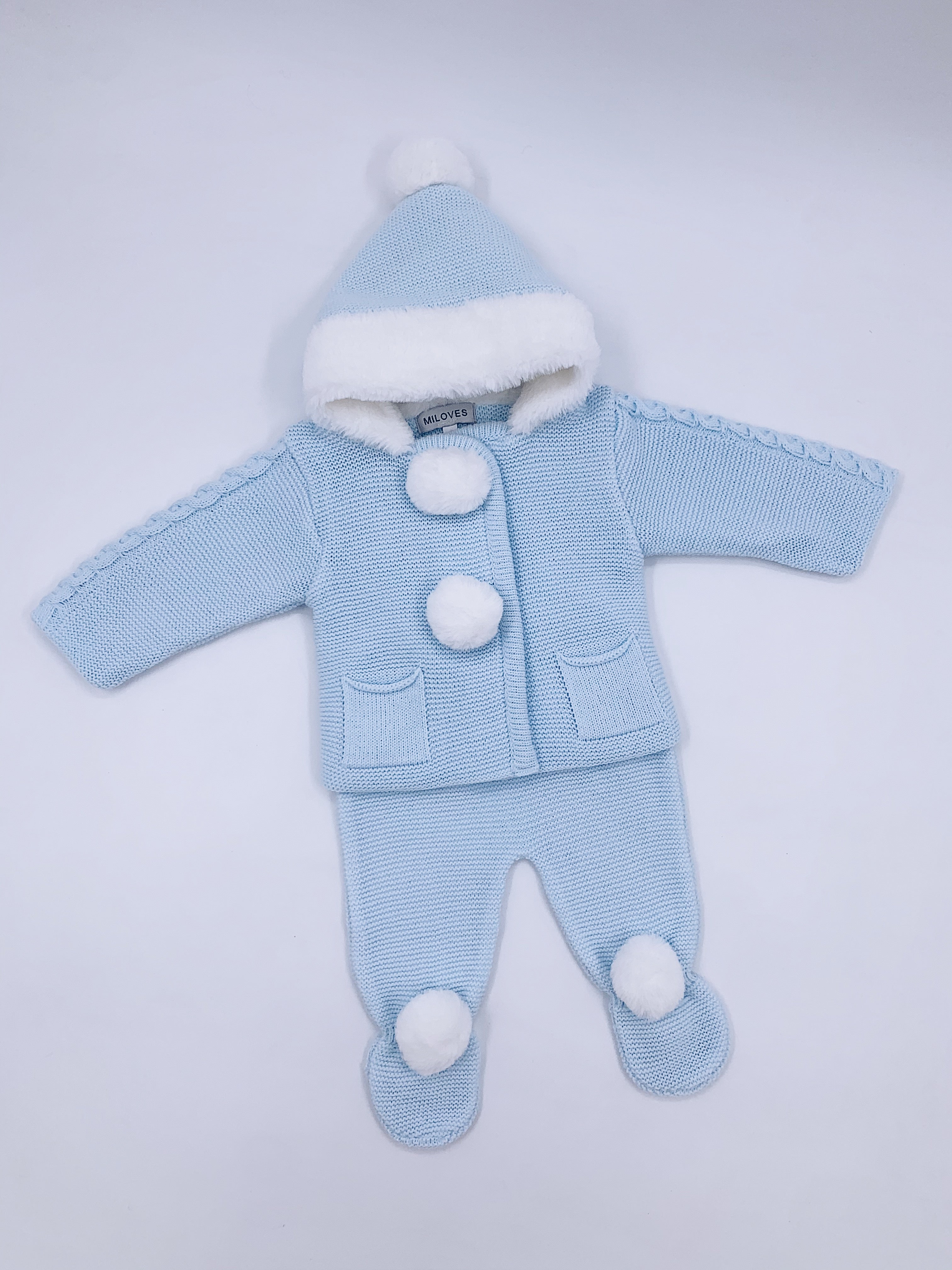 MI LOVES SIGNATURE knitted 2 piece baby set with pom-poms.