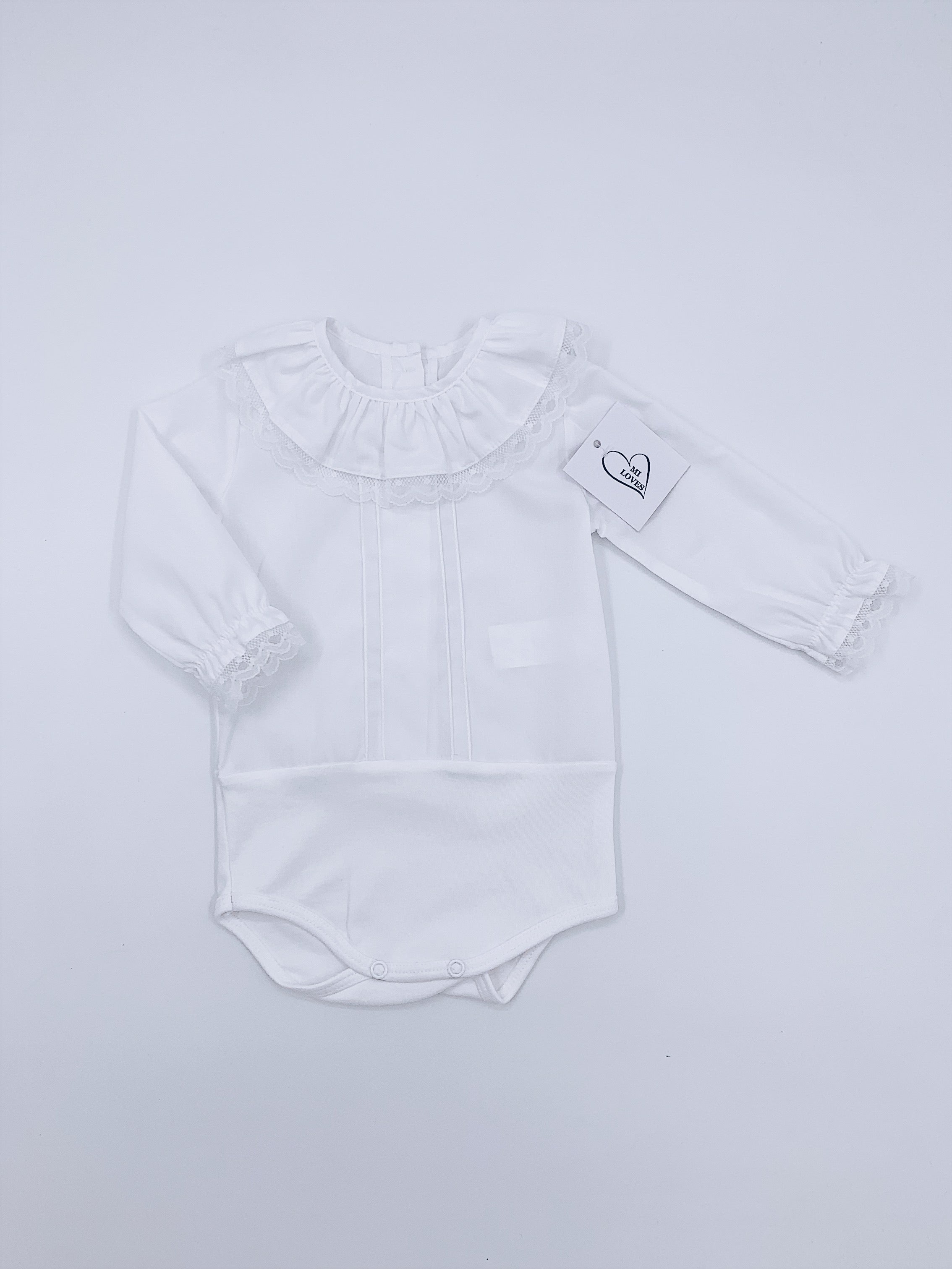 White Cotton Bodyvest with ruffle collar STYLE 1198