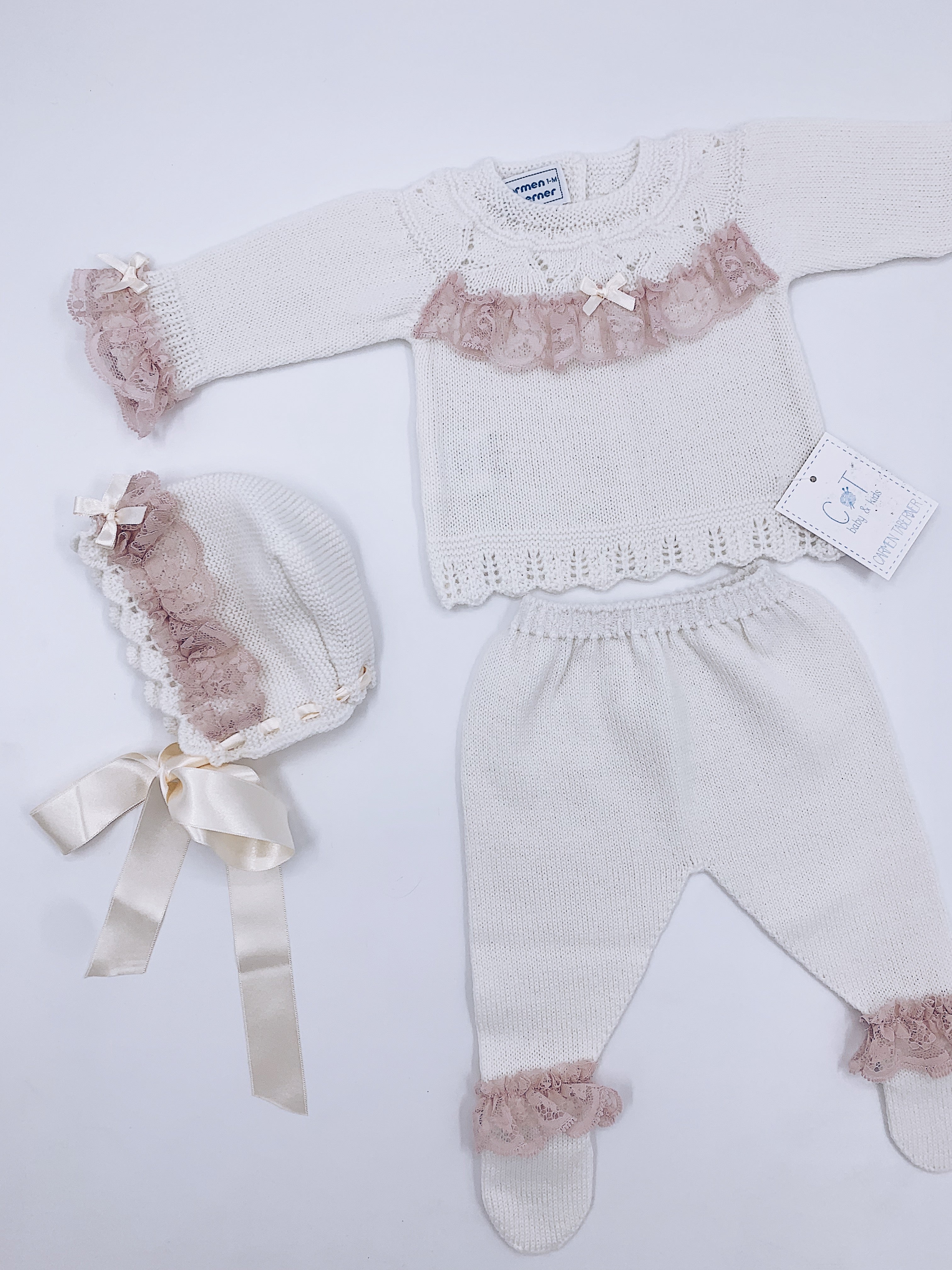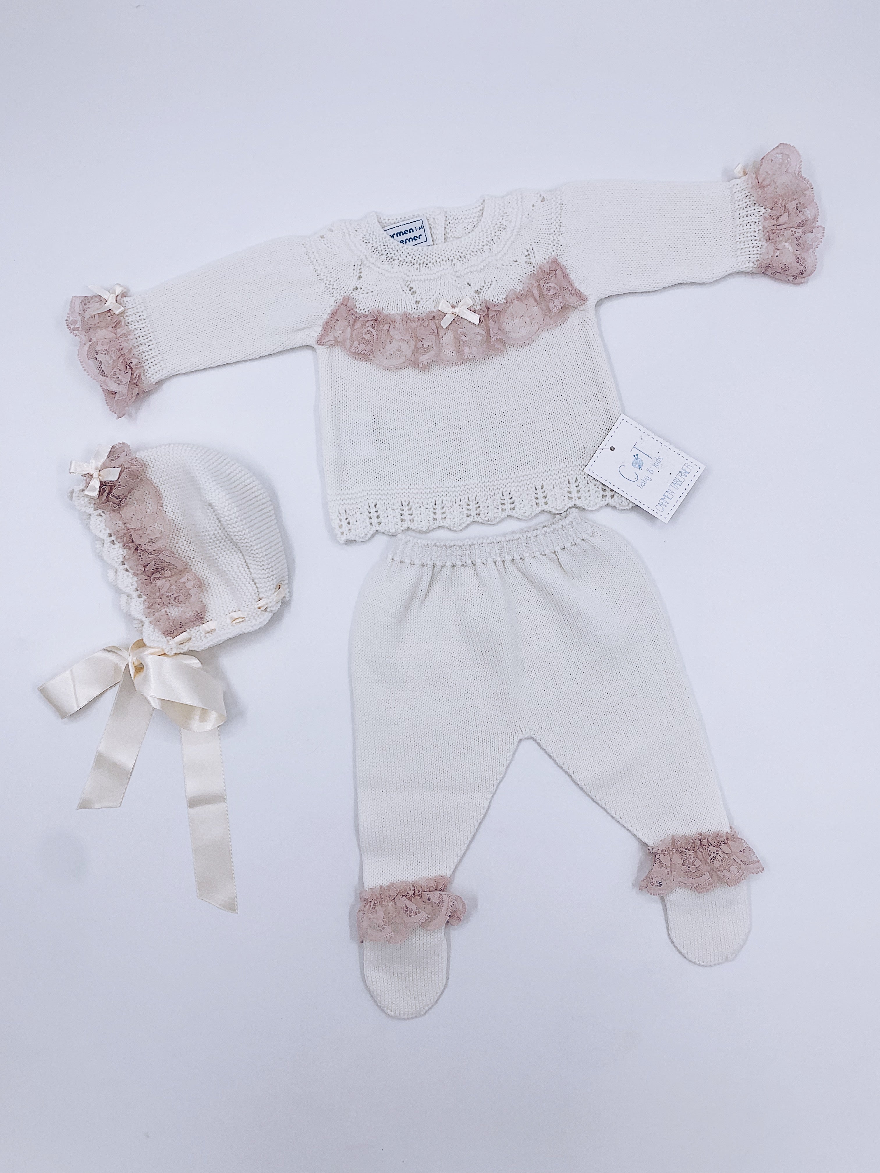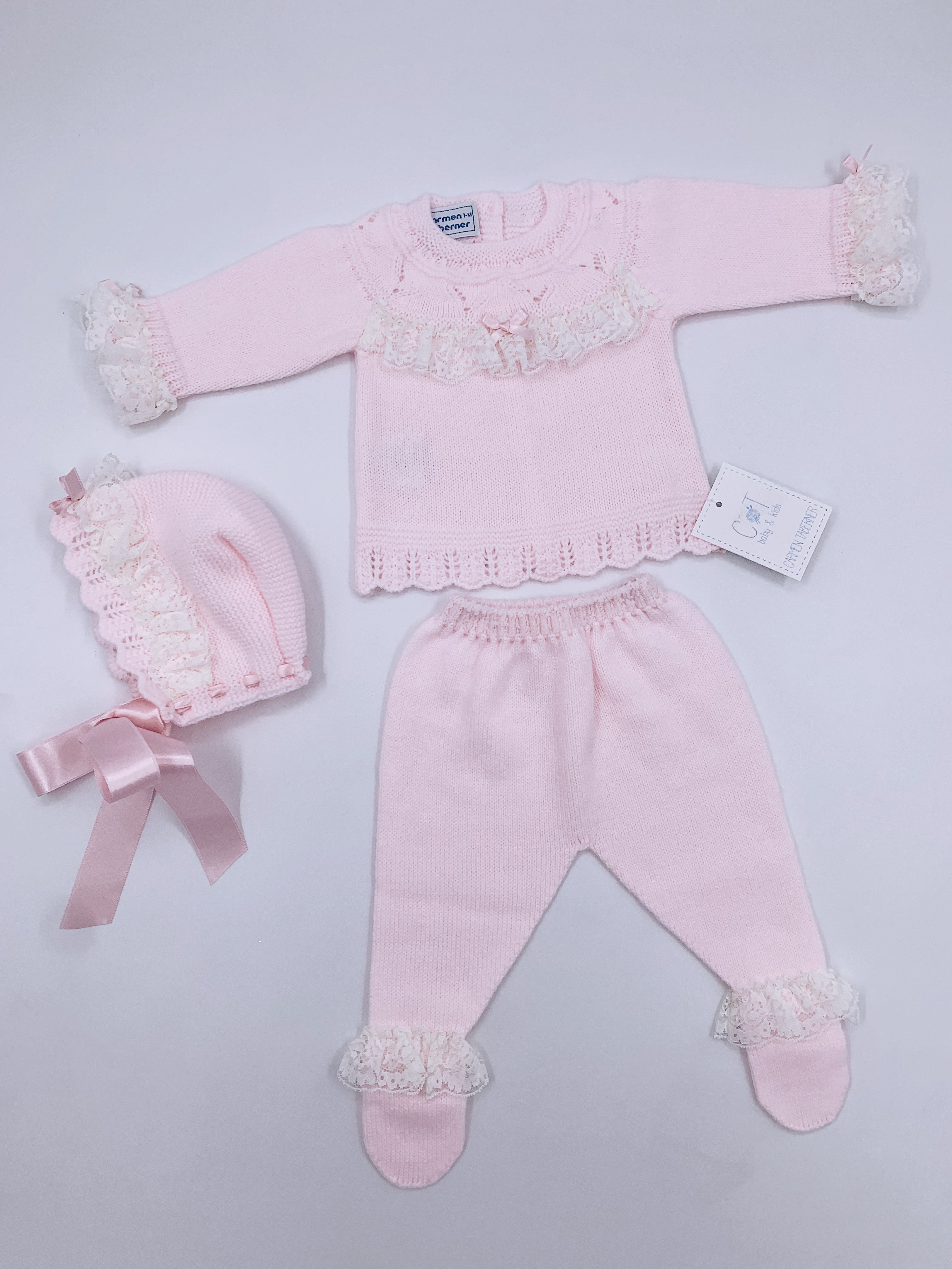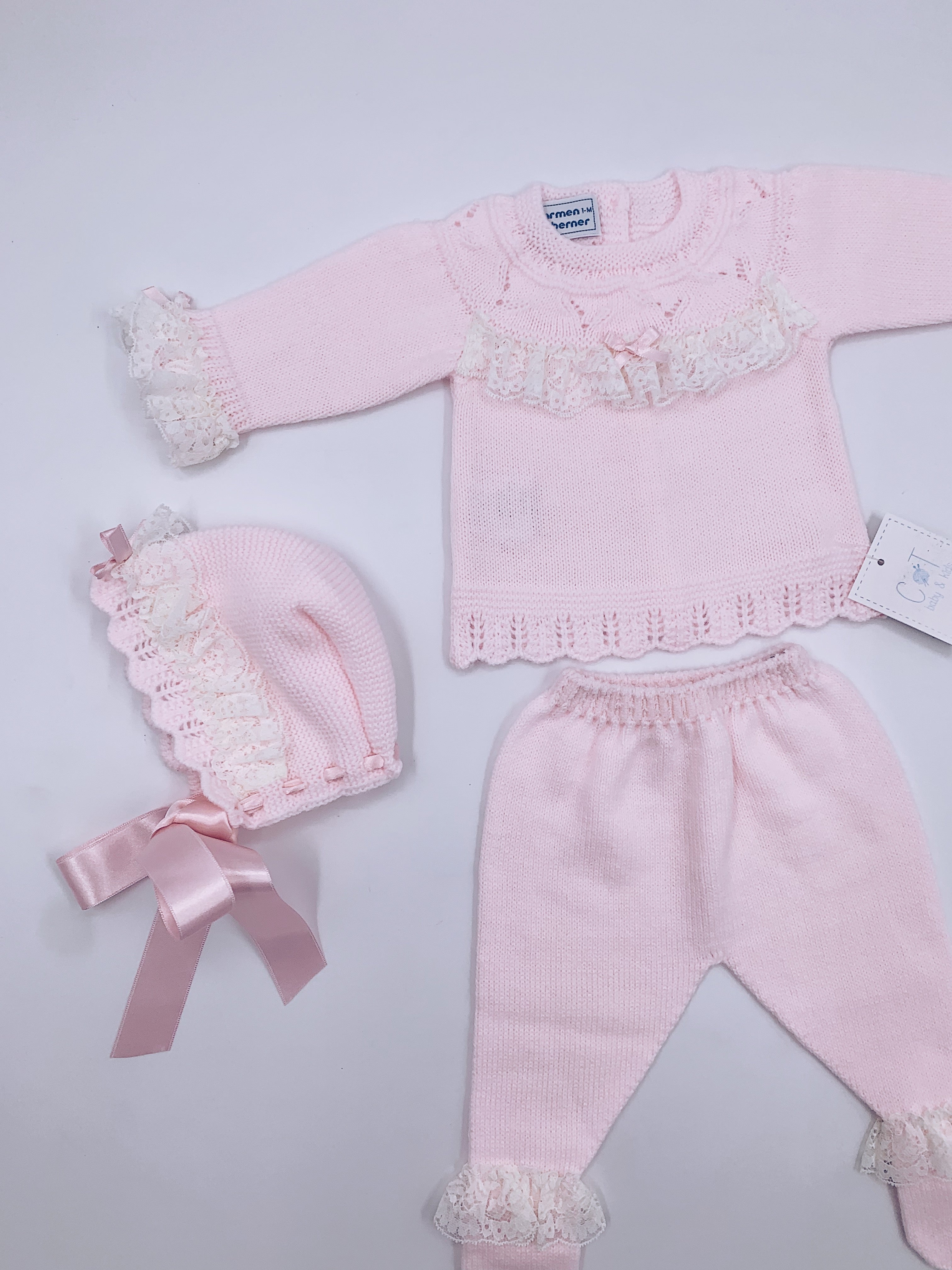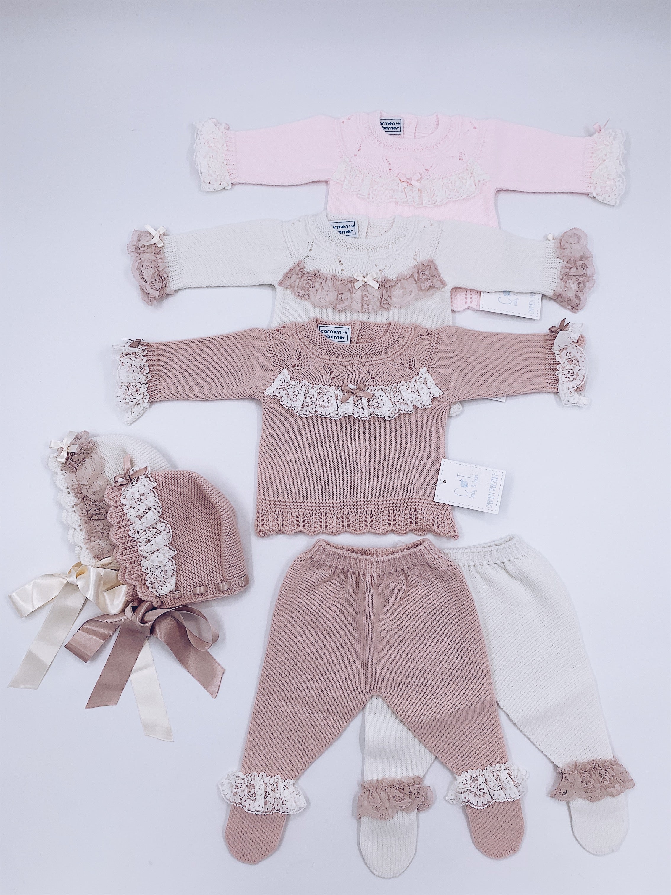 Carmen Taberner Stunning Lace/Bow Details Knitted Baby 3 piece set