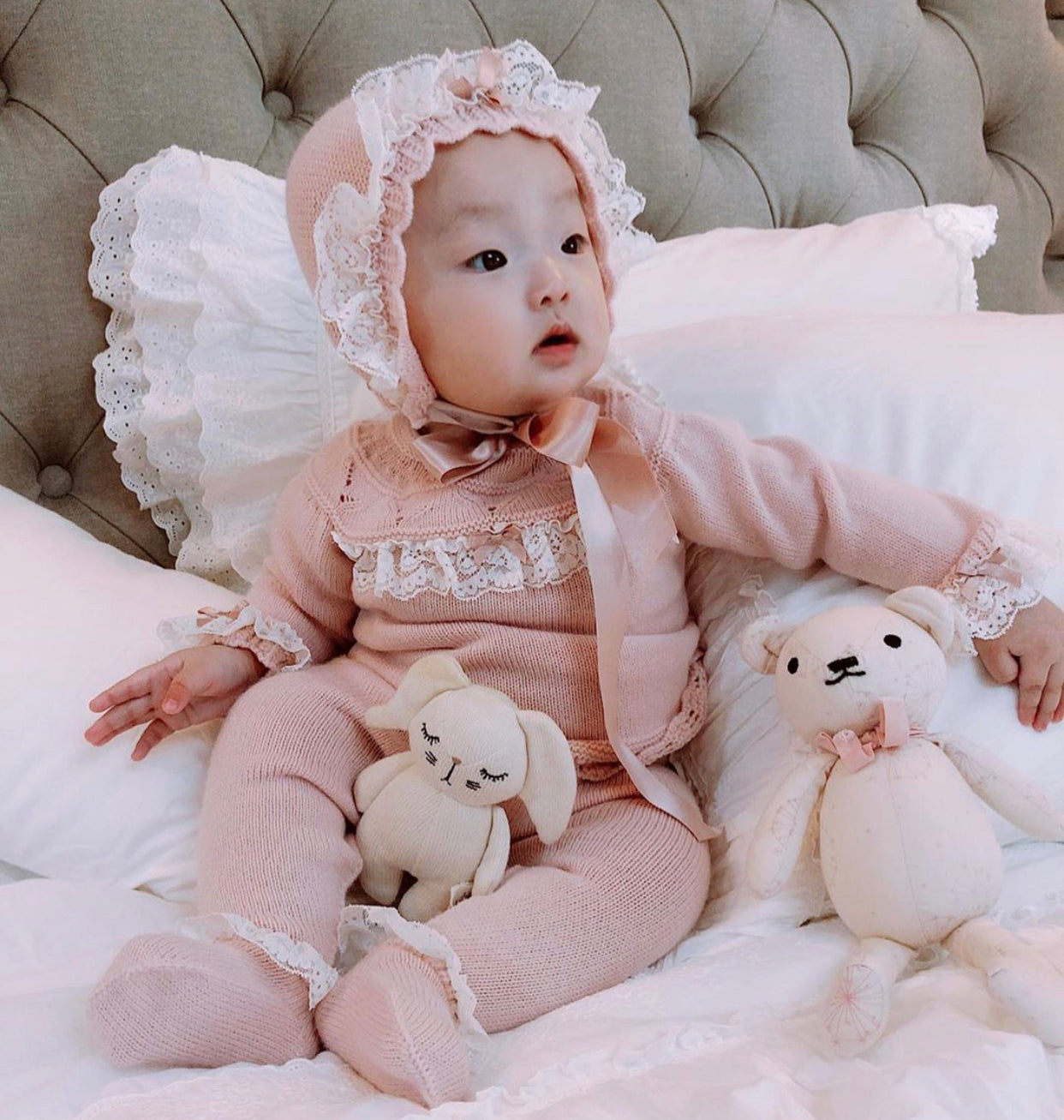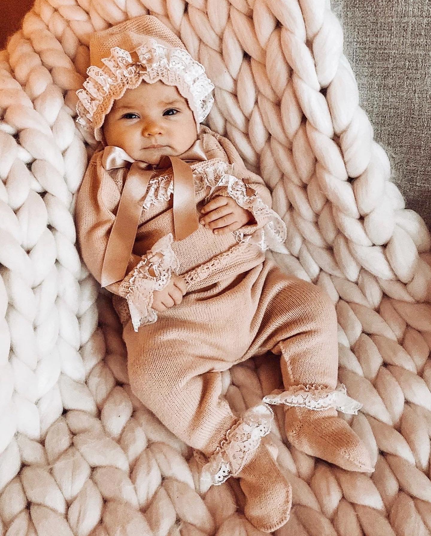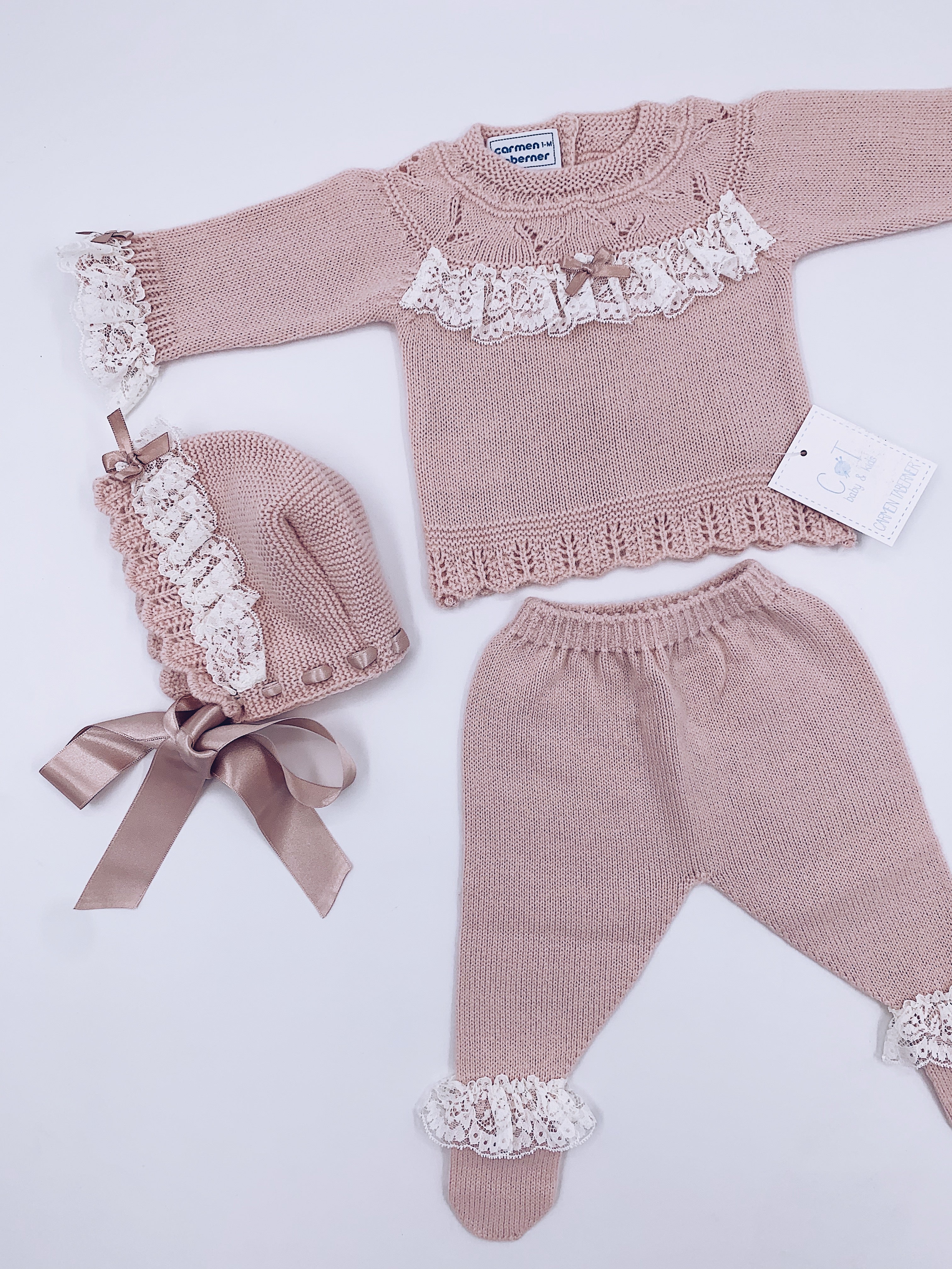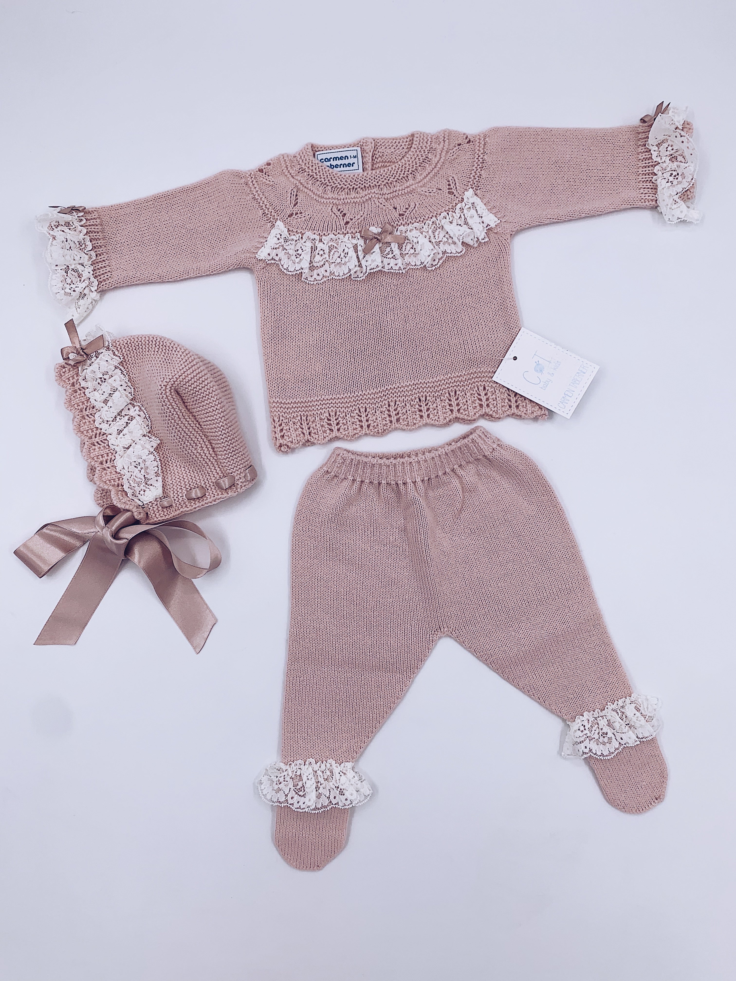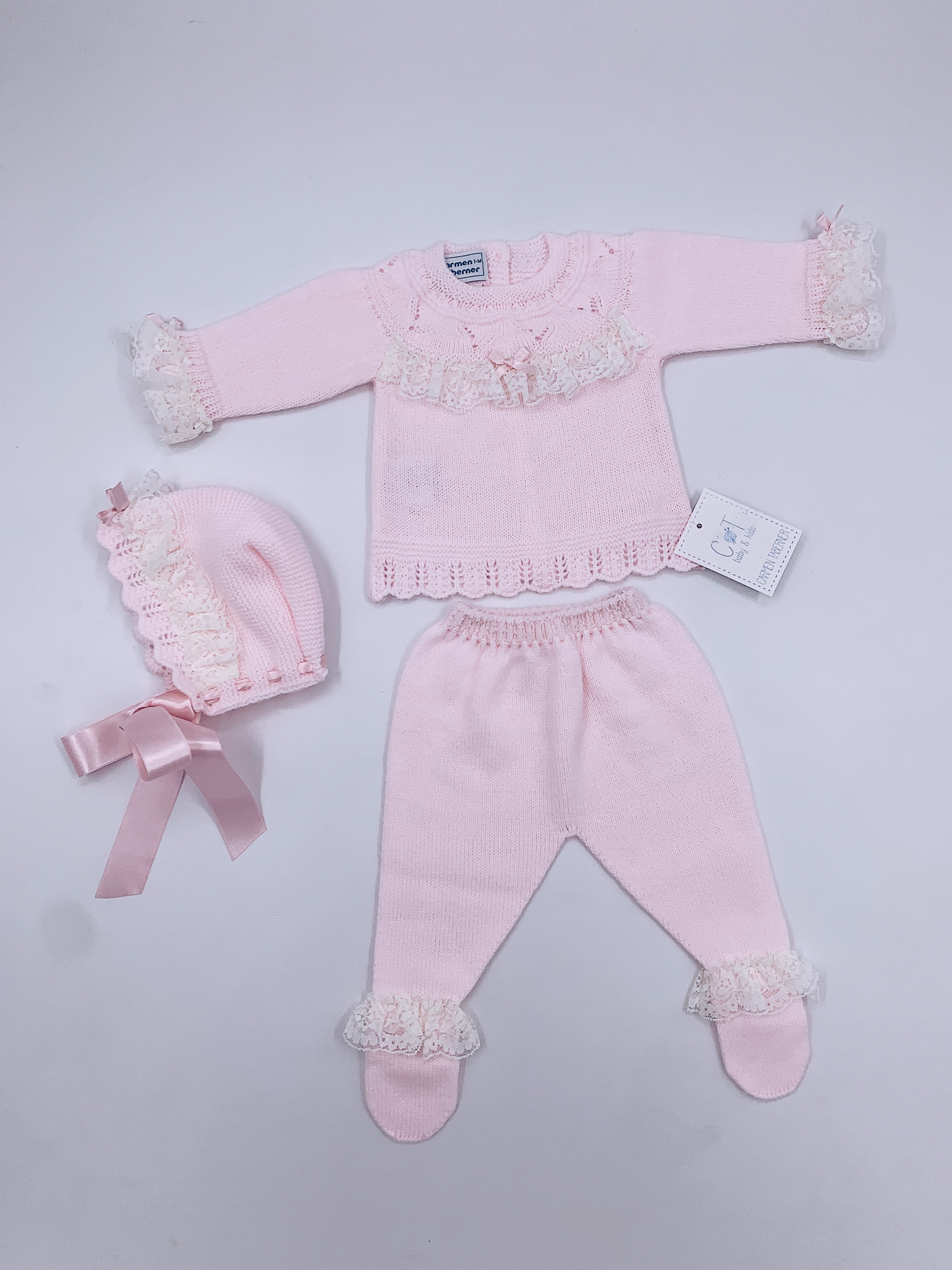 Carmen Taberner Stunning Lace/Bow Details Knitted Baby 3 piece set