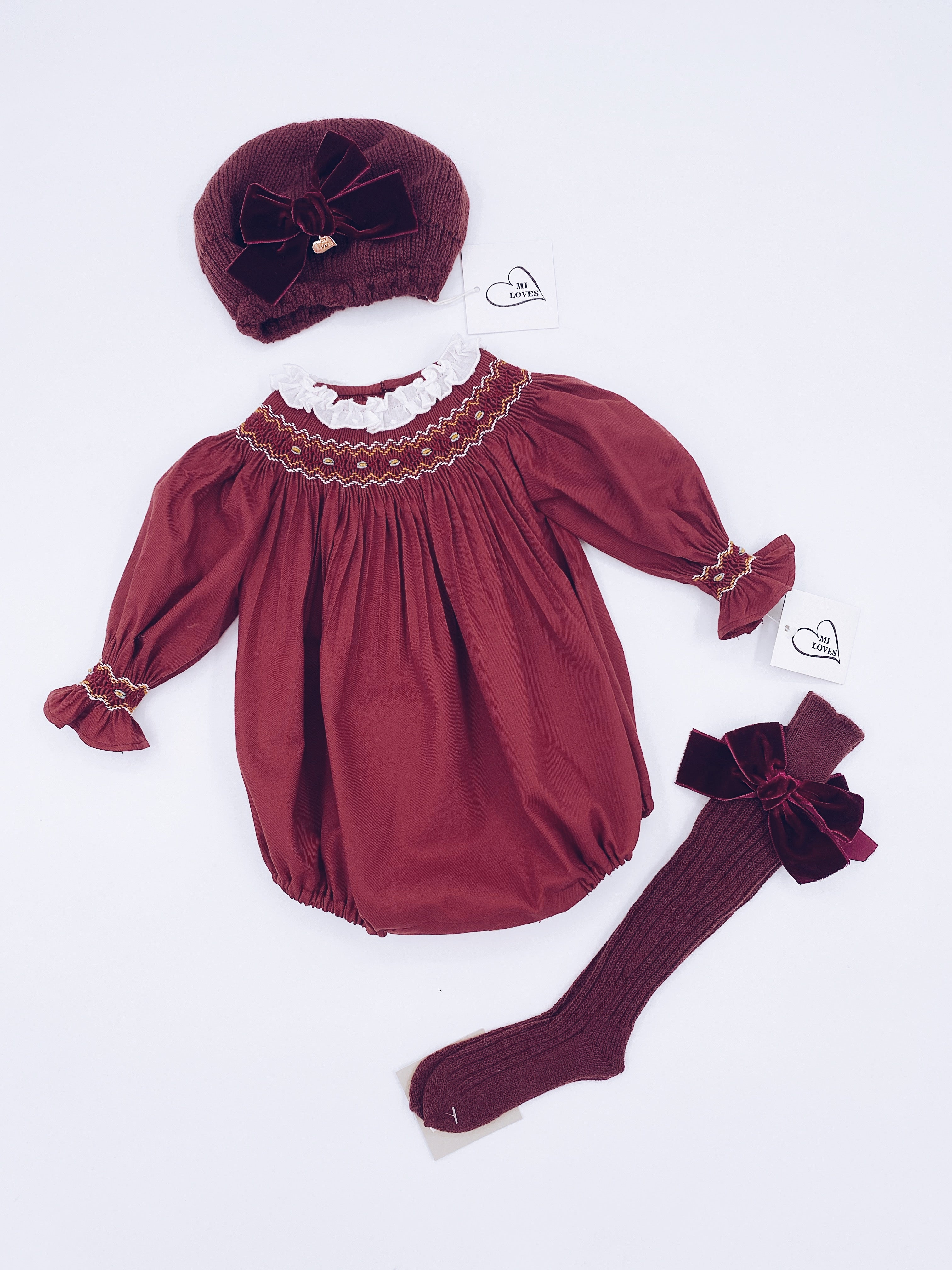 MI LOVES Beautiful Baby girl romper with hand smoked details.