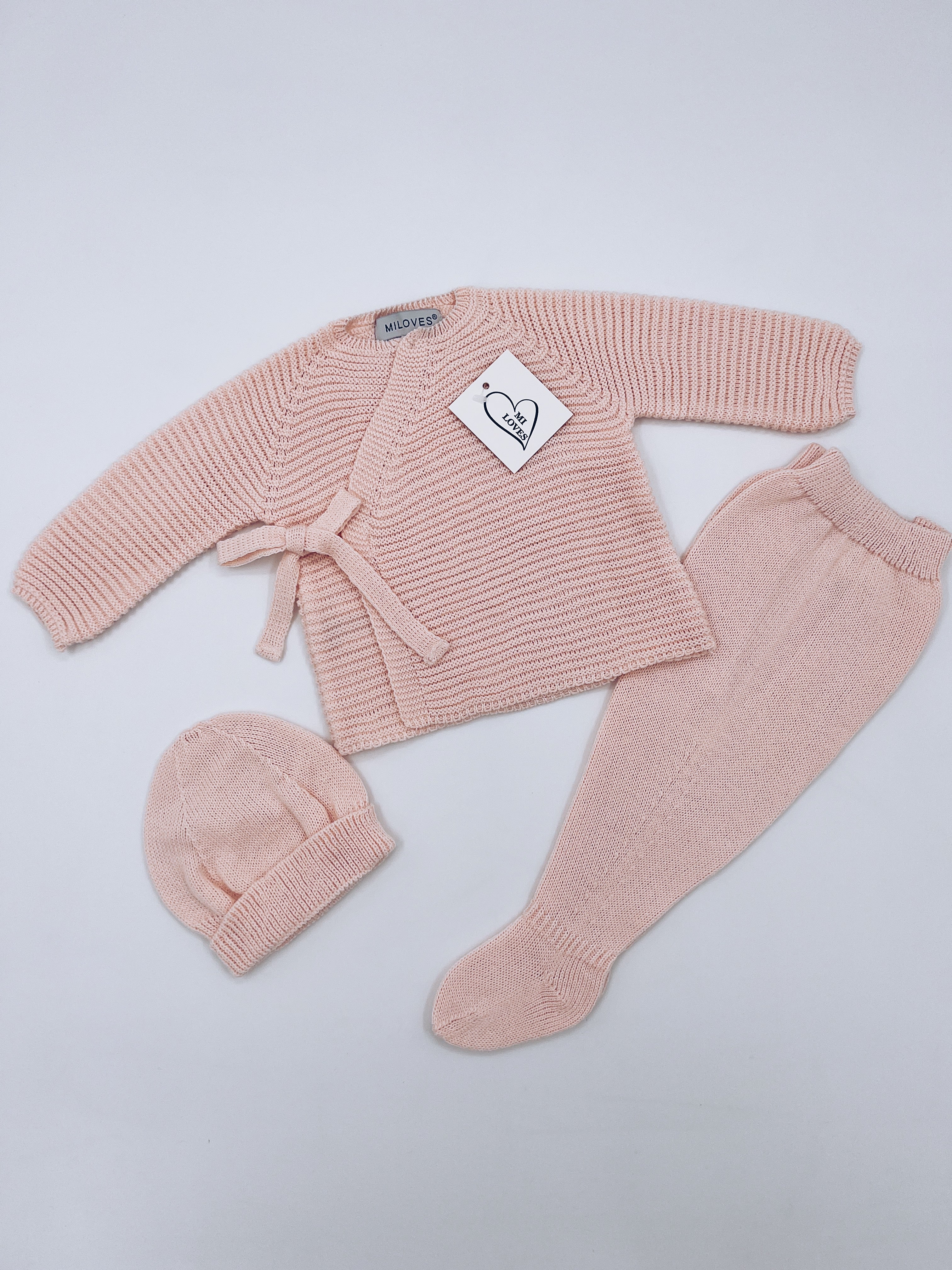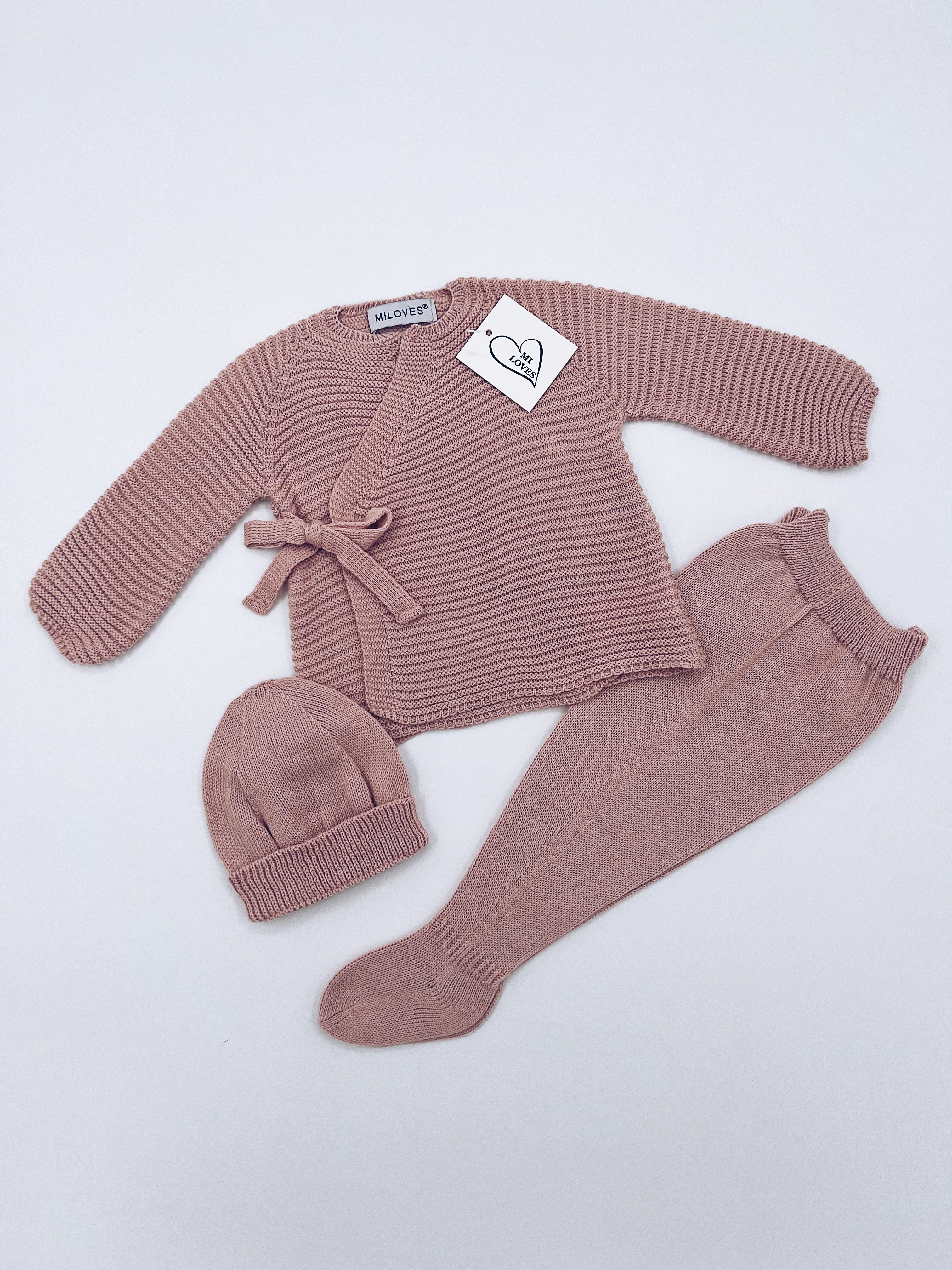 Beautiful Dusty Pink knitted 3 piece baby set