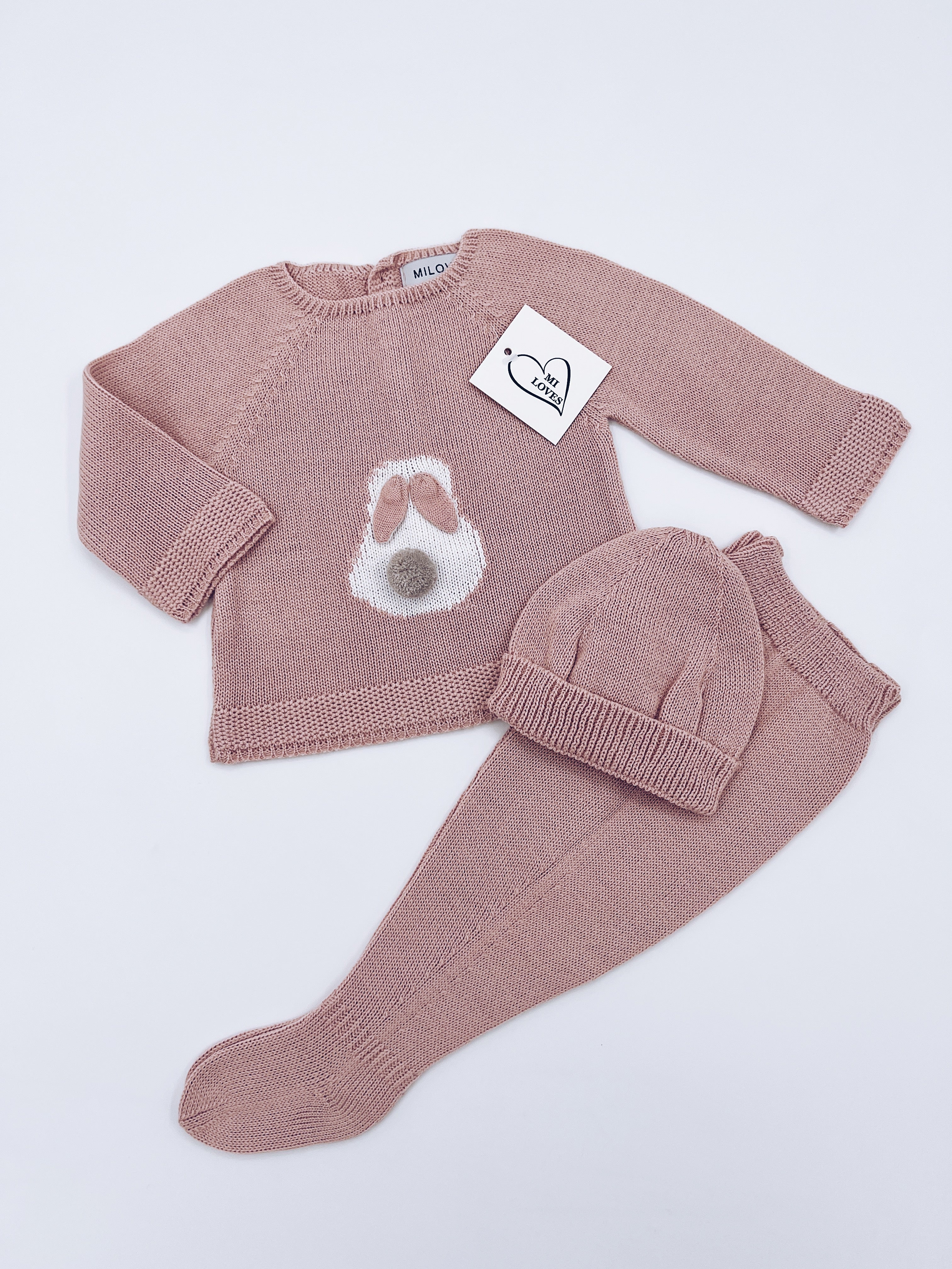 MI LOVES Beautiful Dusty pink BUNNY knitted 3 piece baby set
