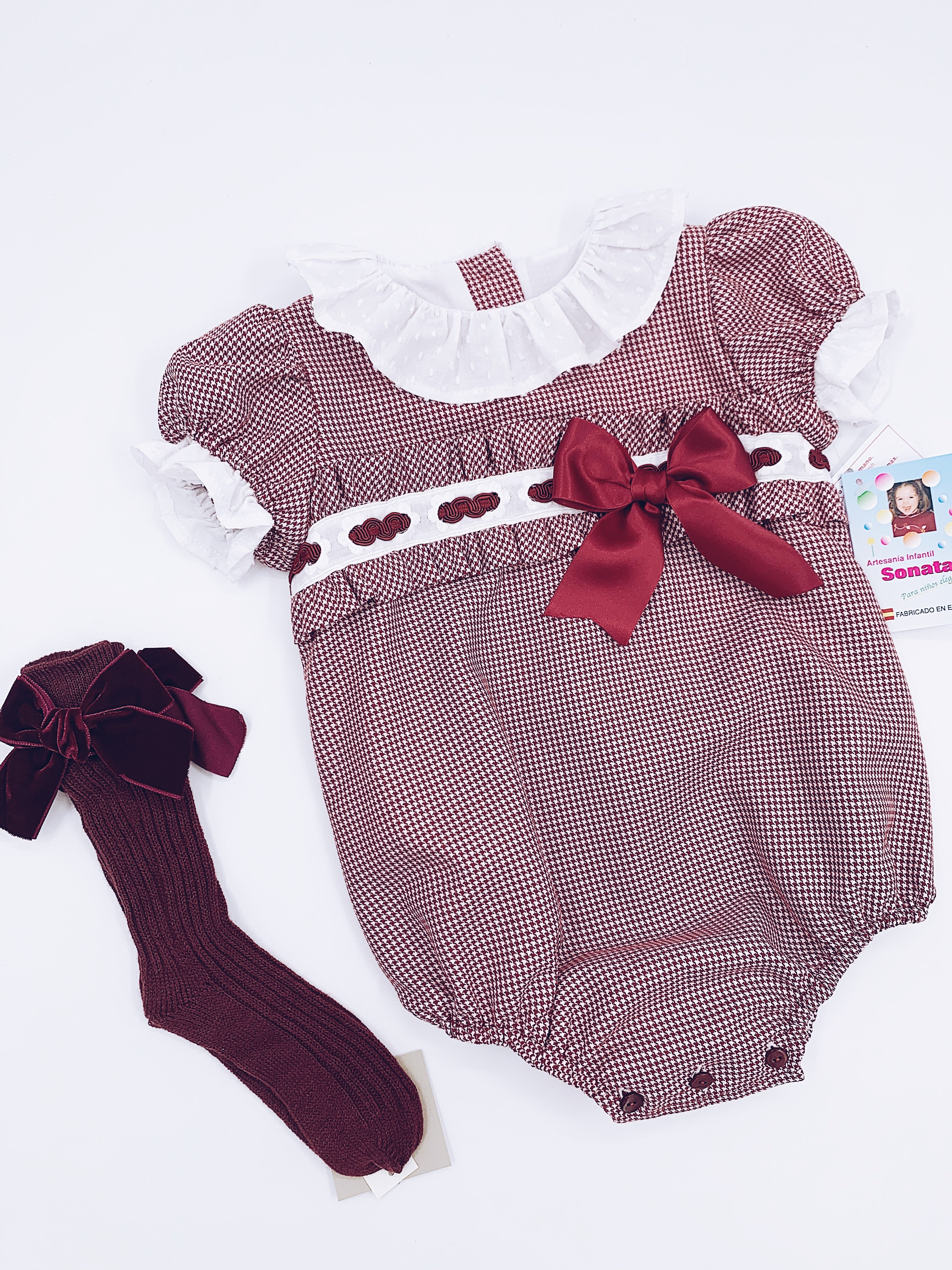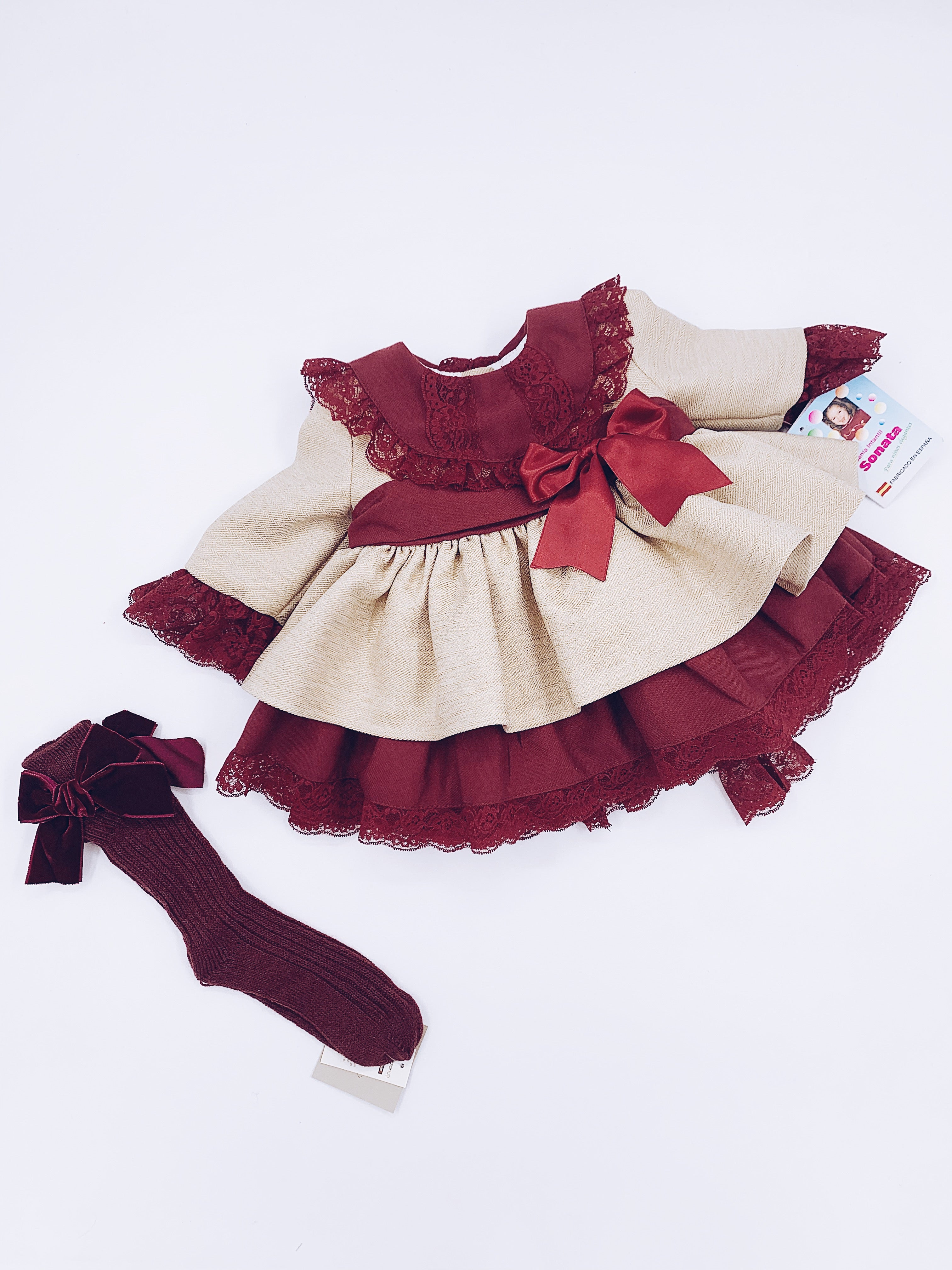 MI LOVES Beautiful Burgundy Girl Dress with hand smoked details.