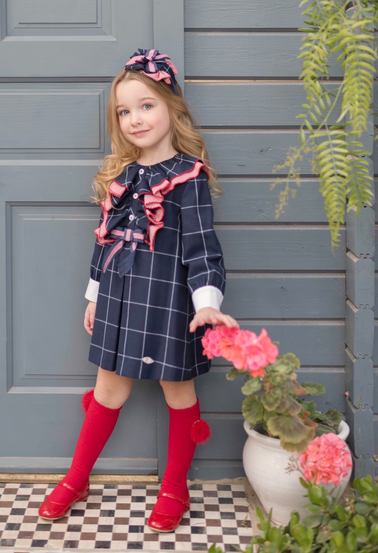 MI LOVES Beautiful Navy tartan dress with frill details.