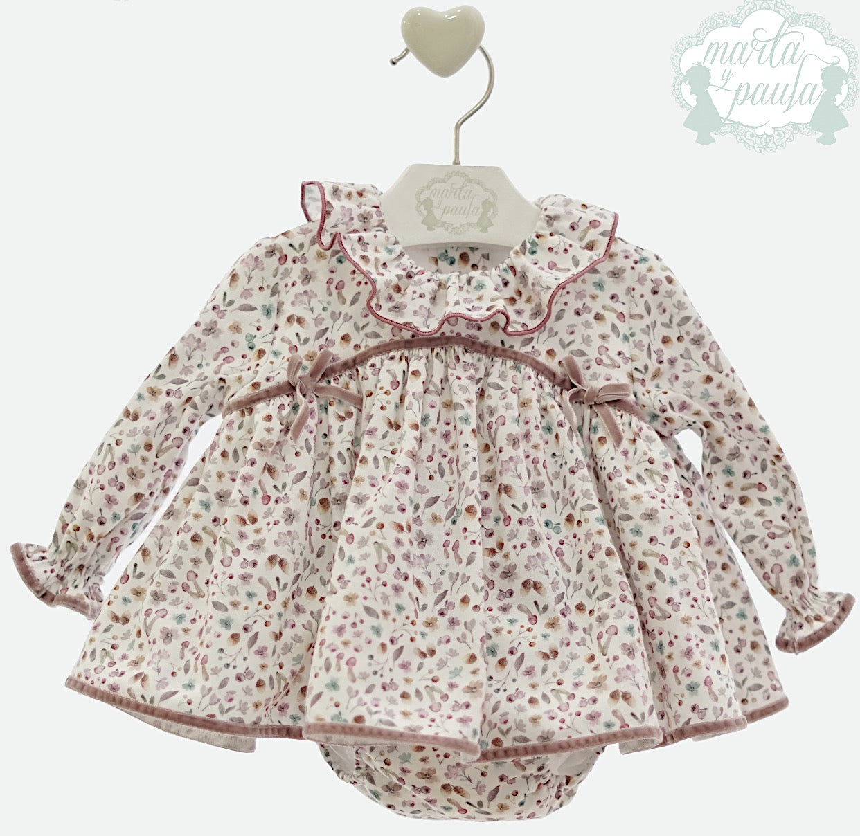 Beautiful Floral pink Dress and bloomers set with lovely dusty pink bow details