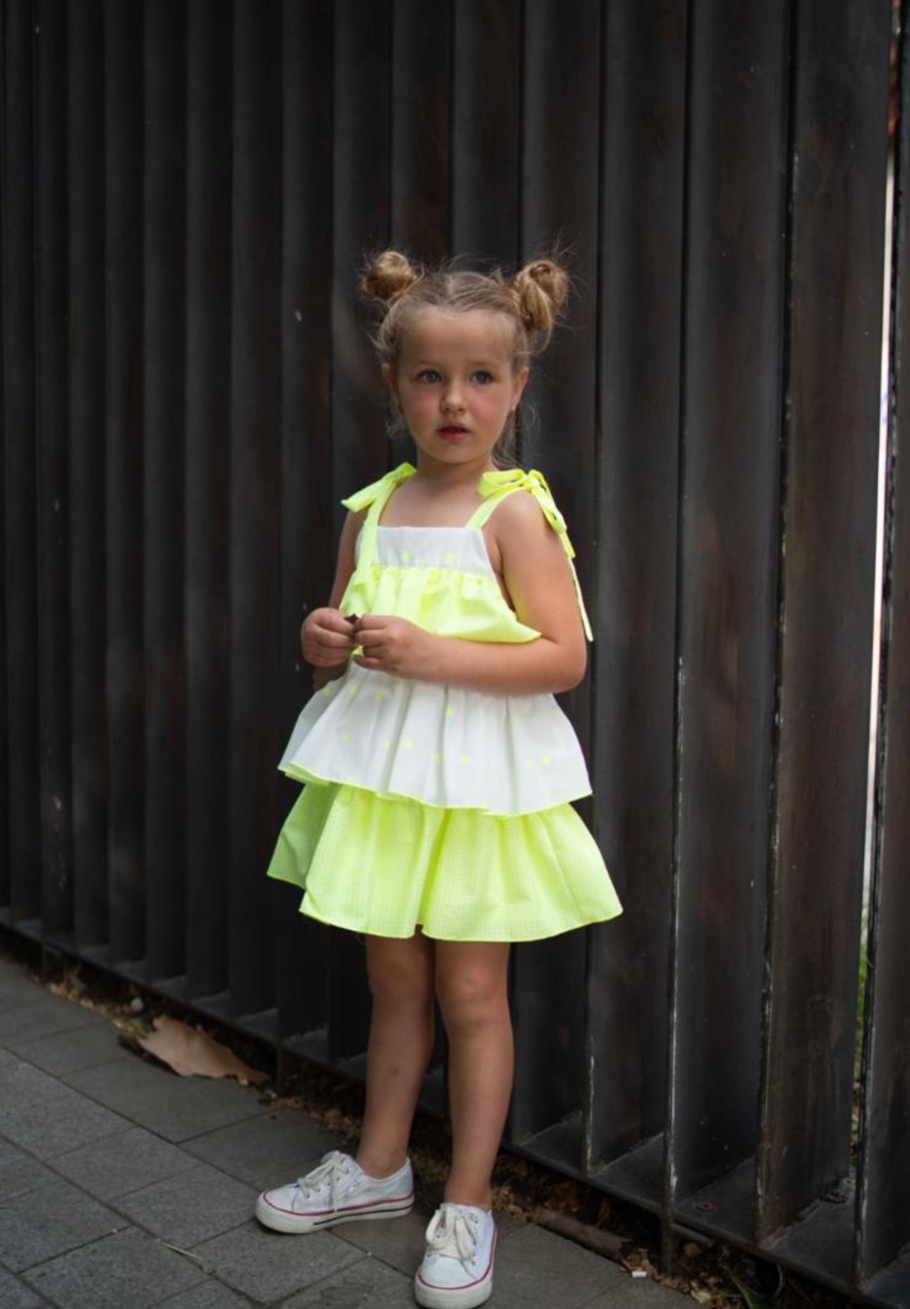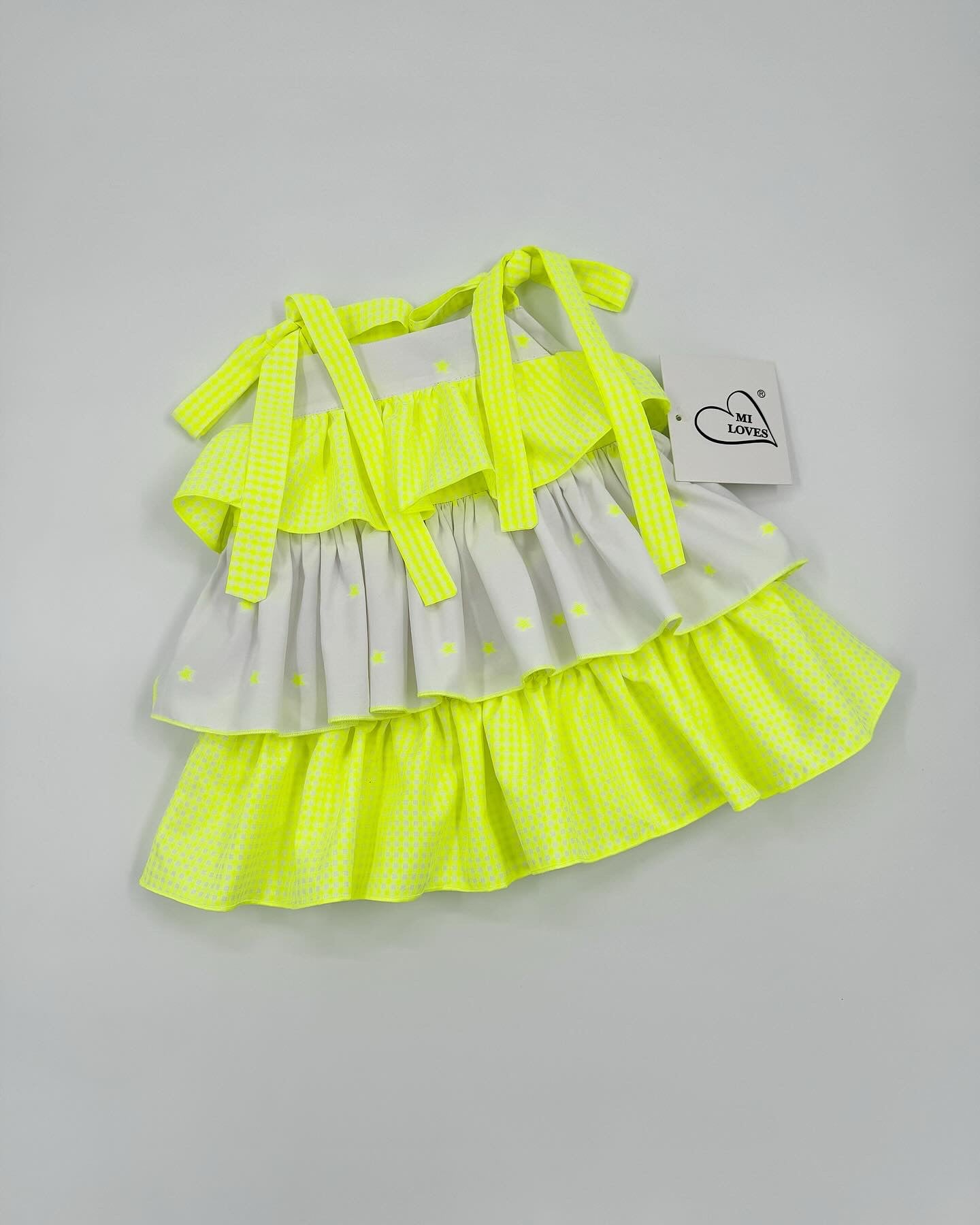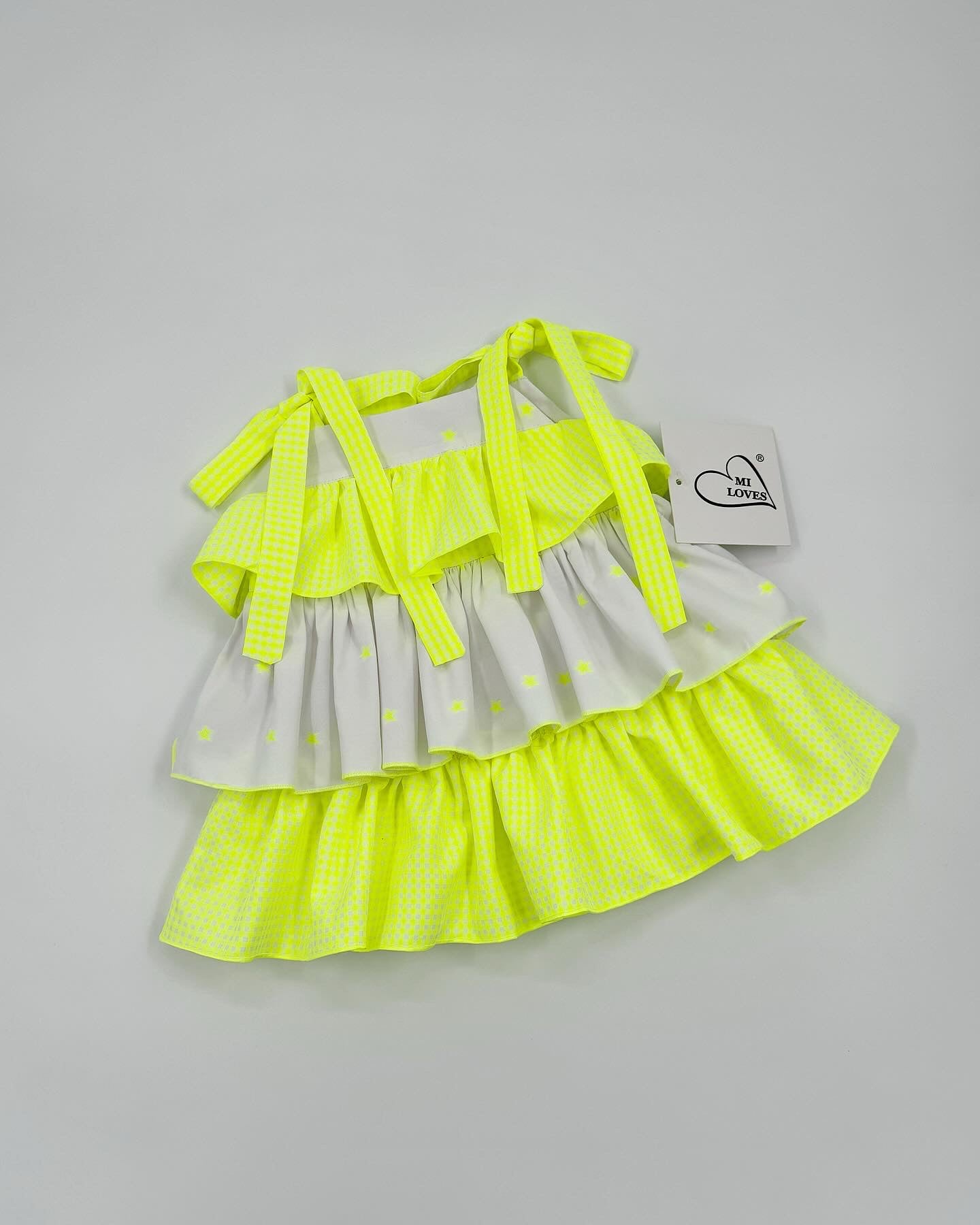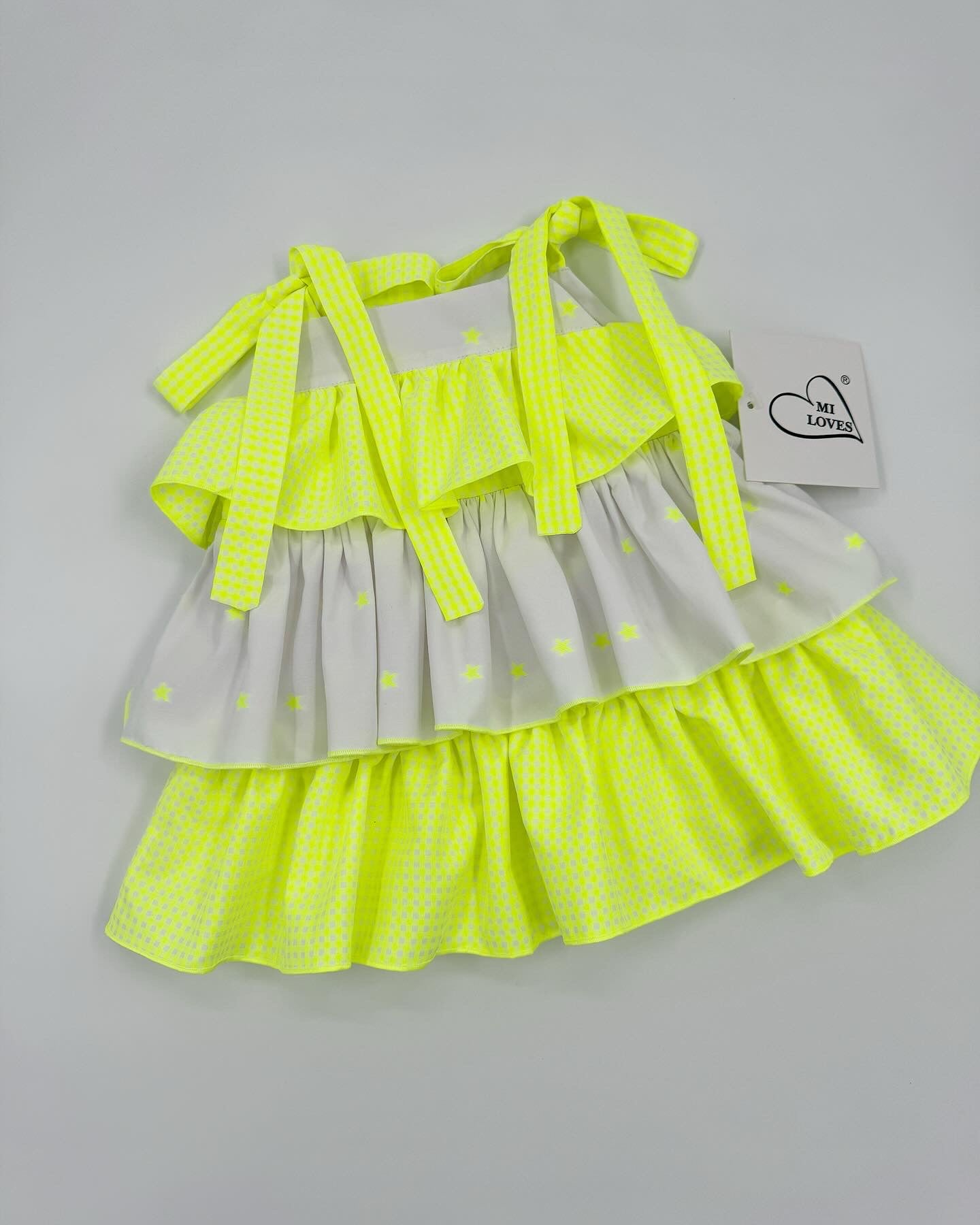 Beautiful dress with Frill and neon star details.