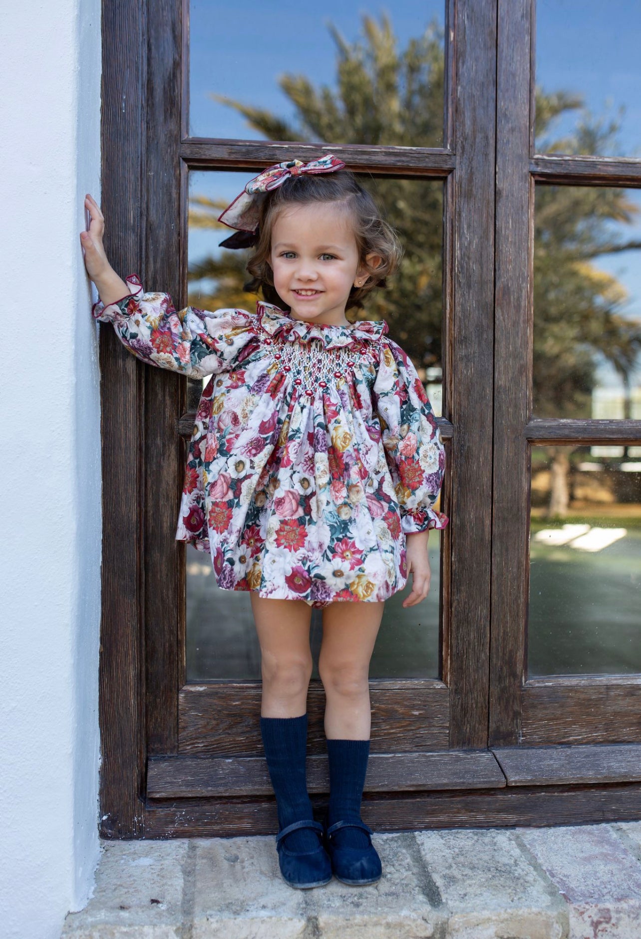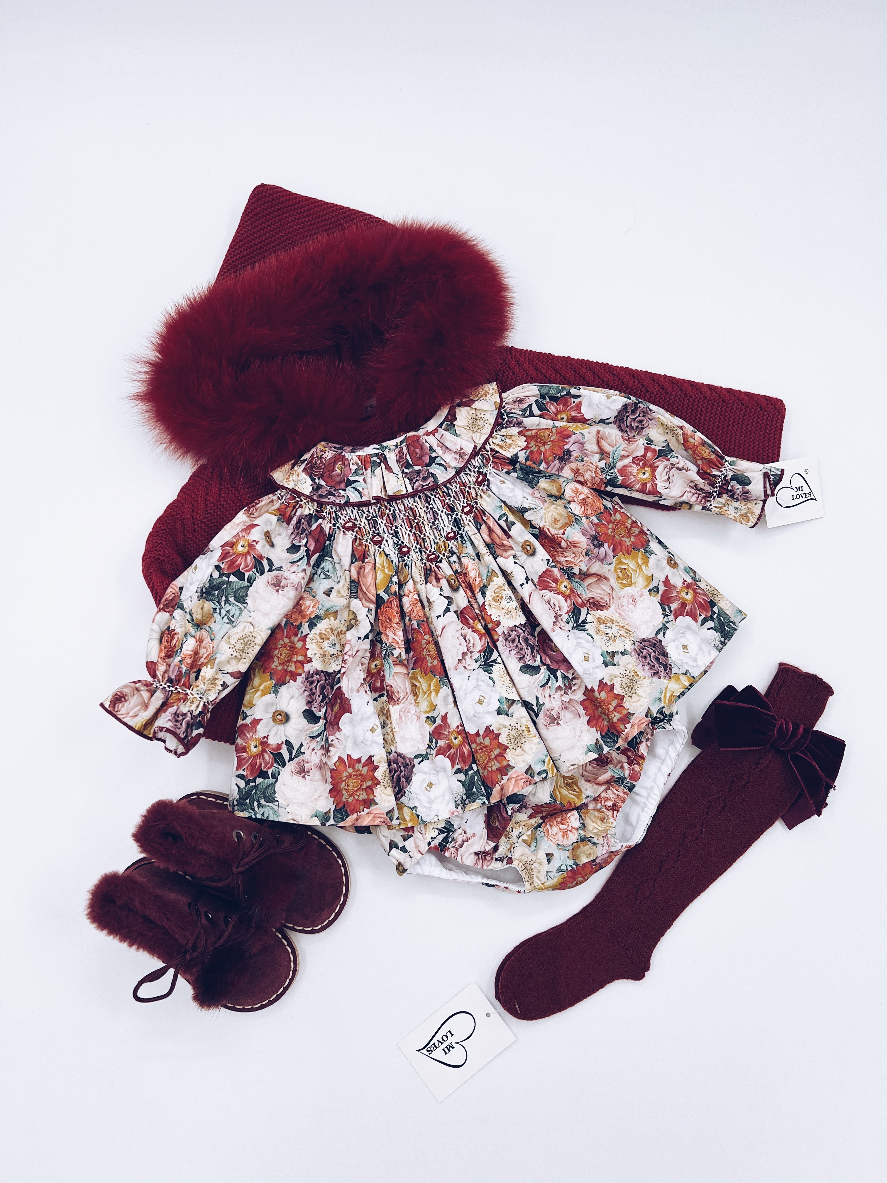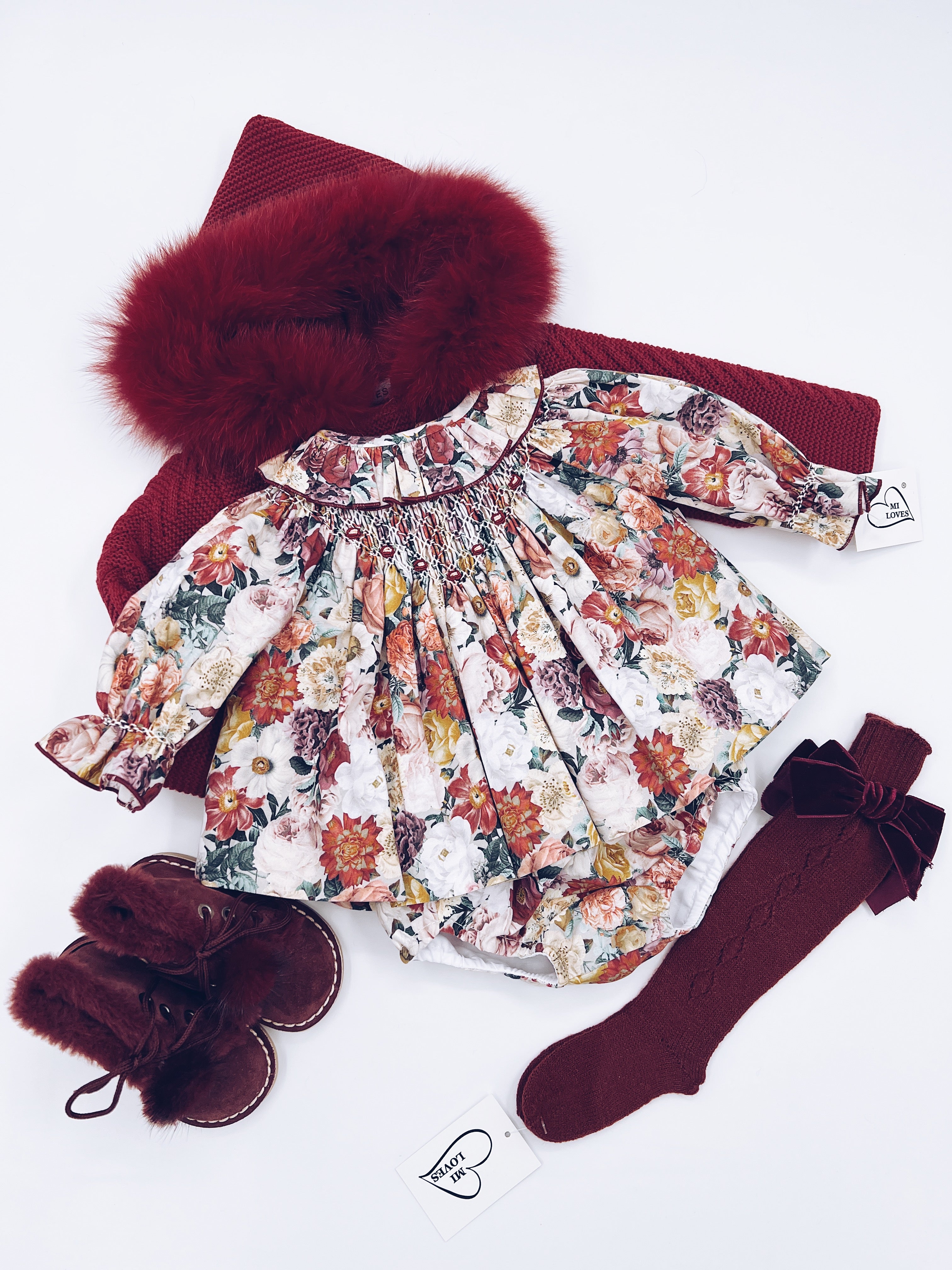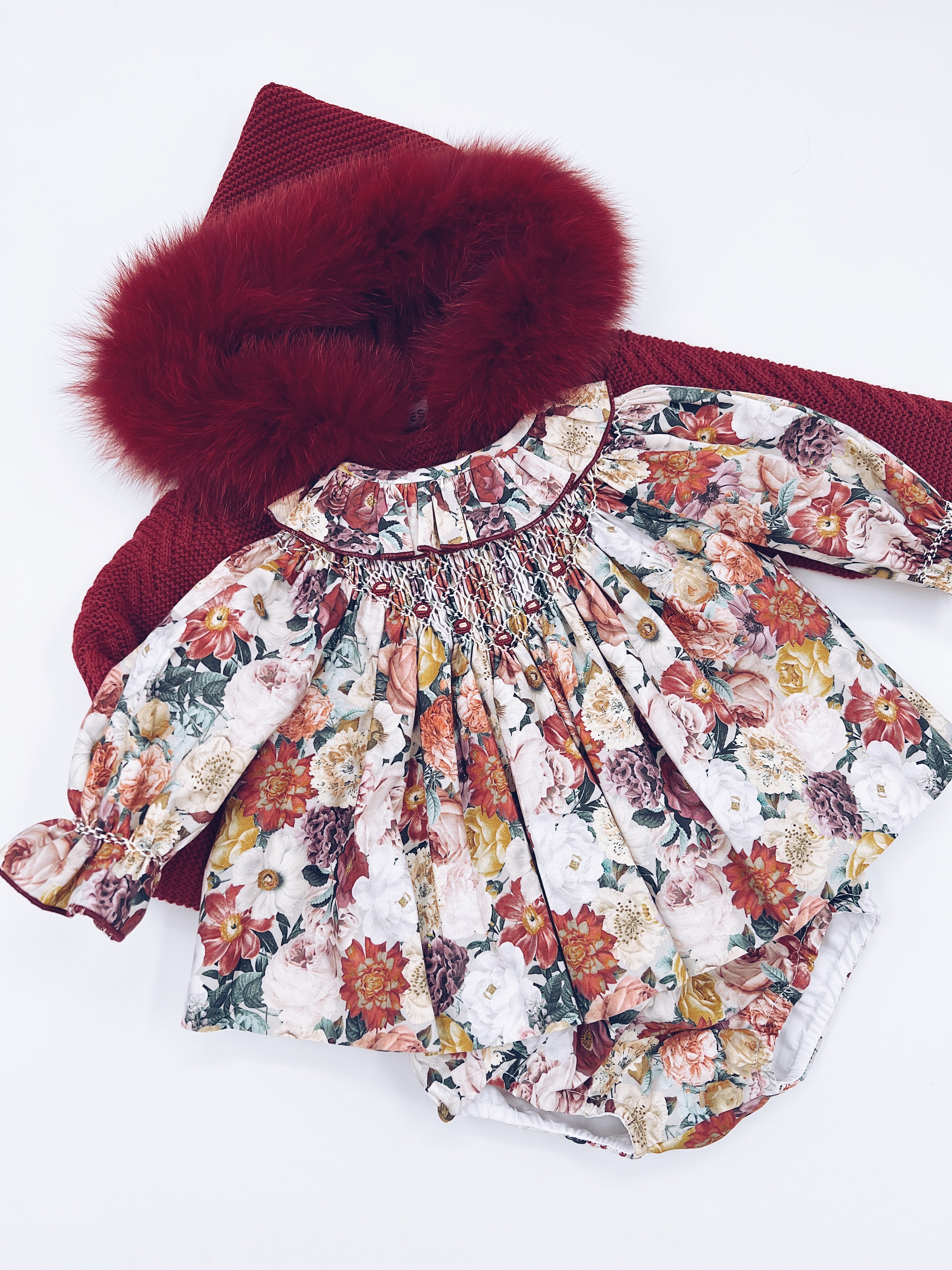 Beautiful Floral print Dress/Bloomers 2 piece set with Hand Smoked Details.