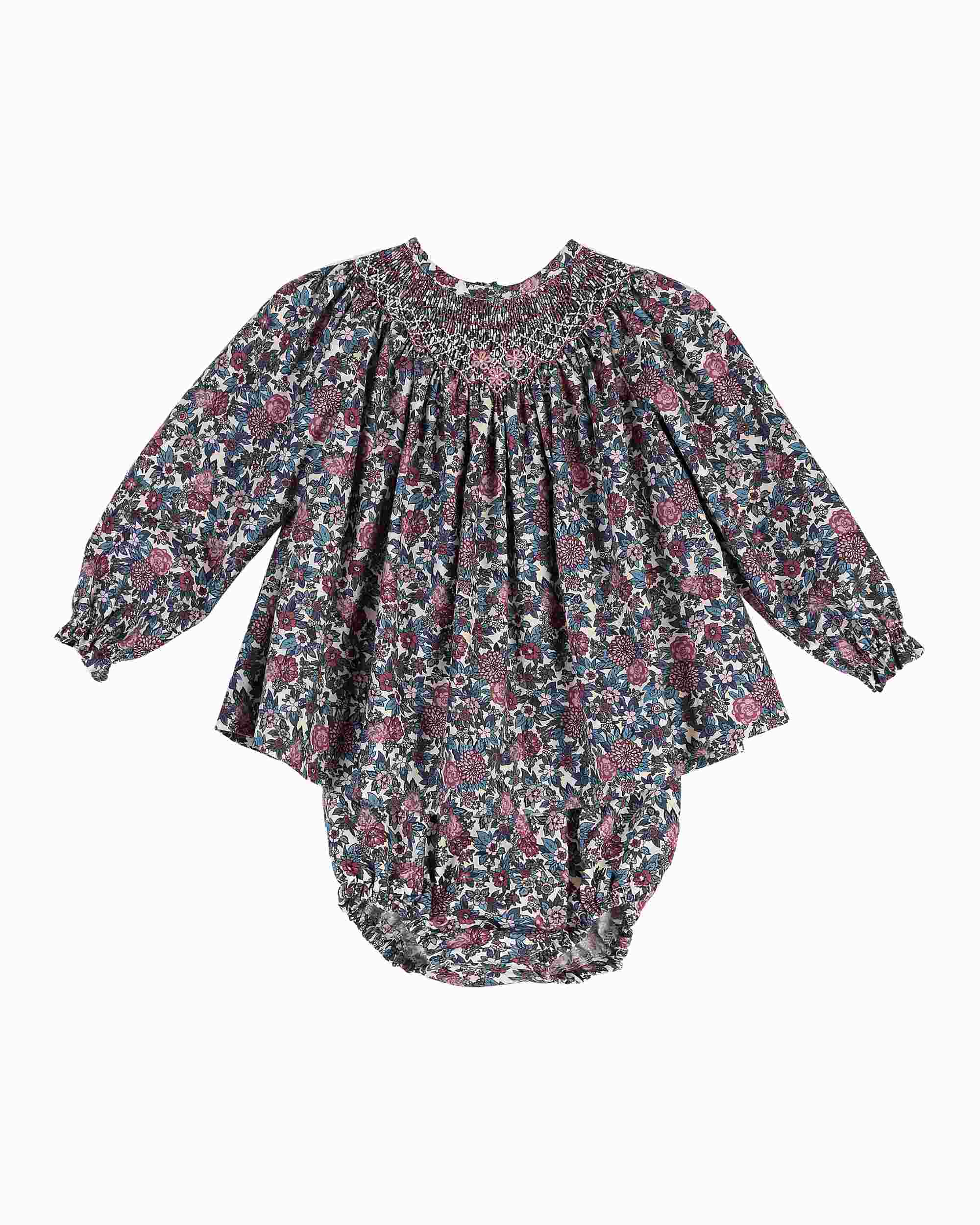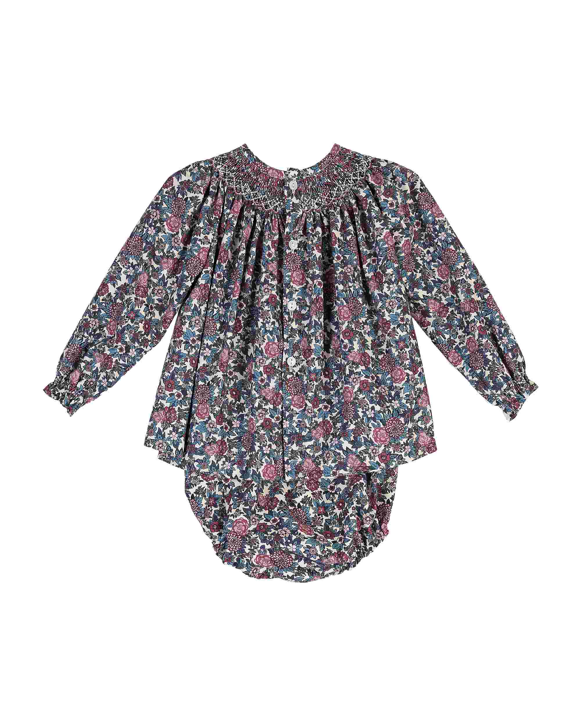 Beautiful Floral print Dress/Bloomers 2 piece set with Hand Smoked details.