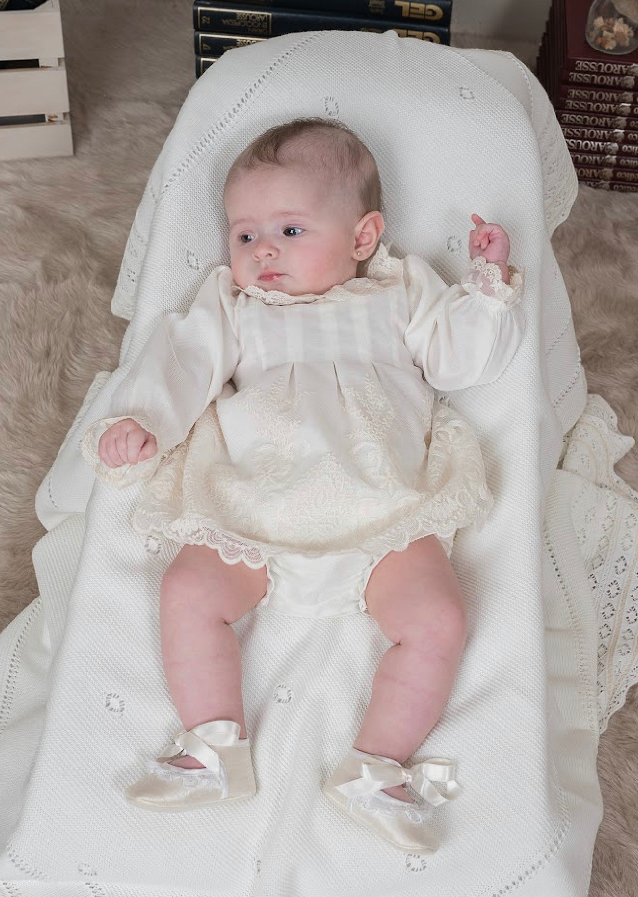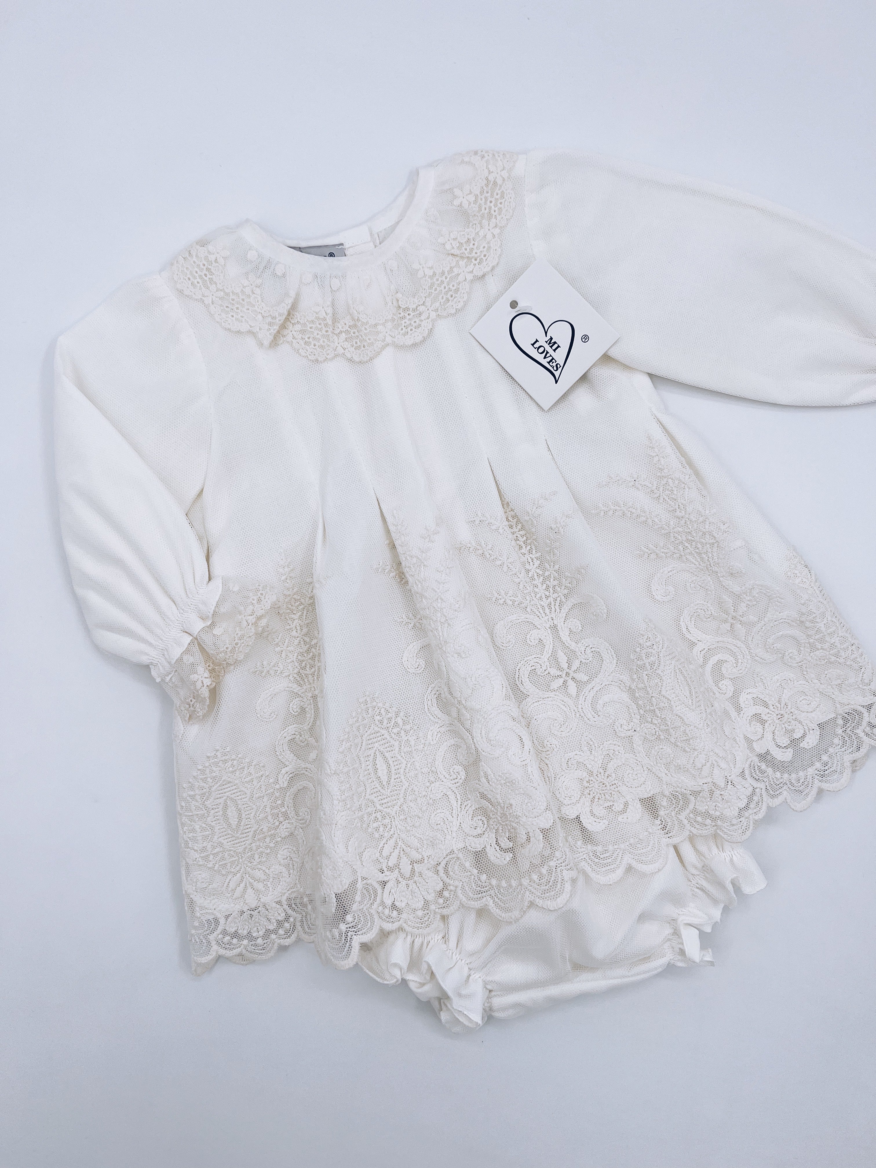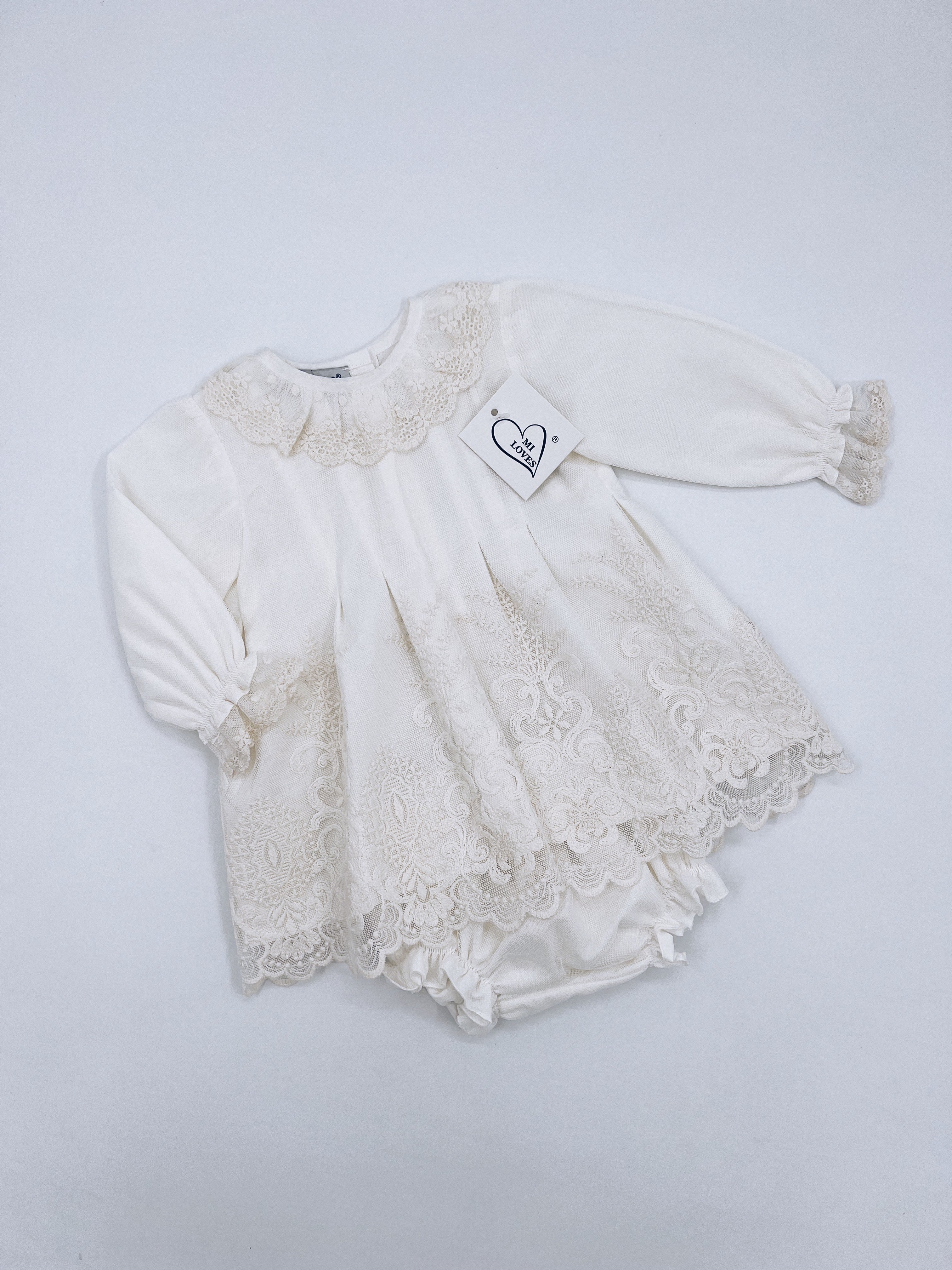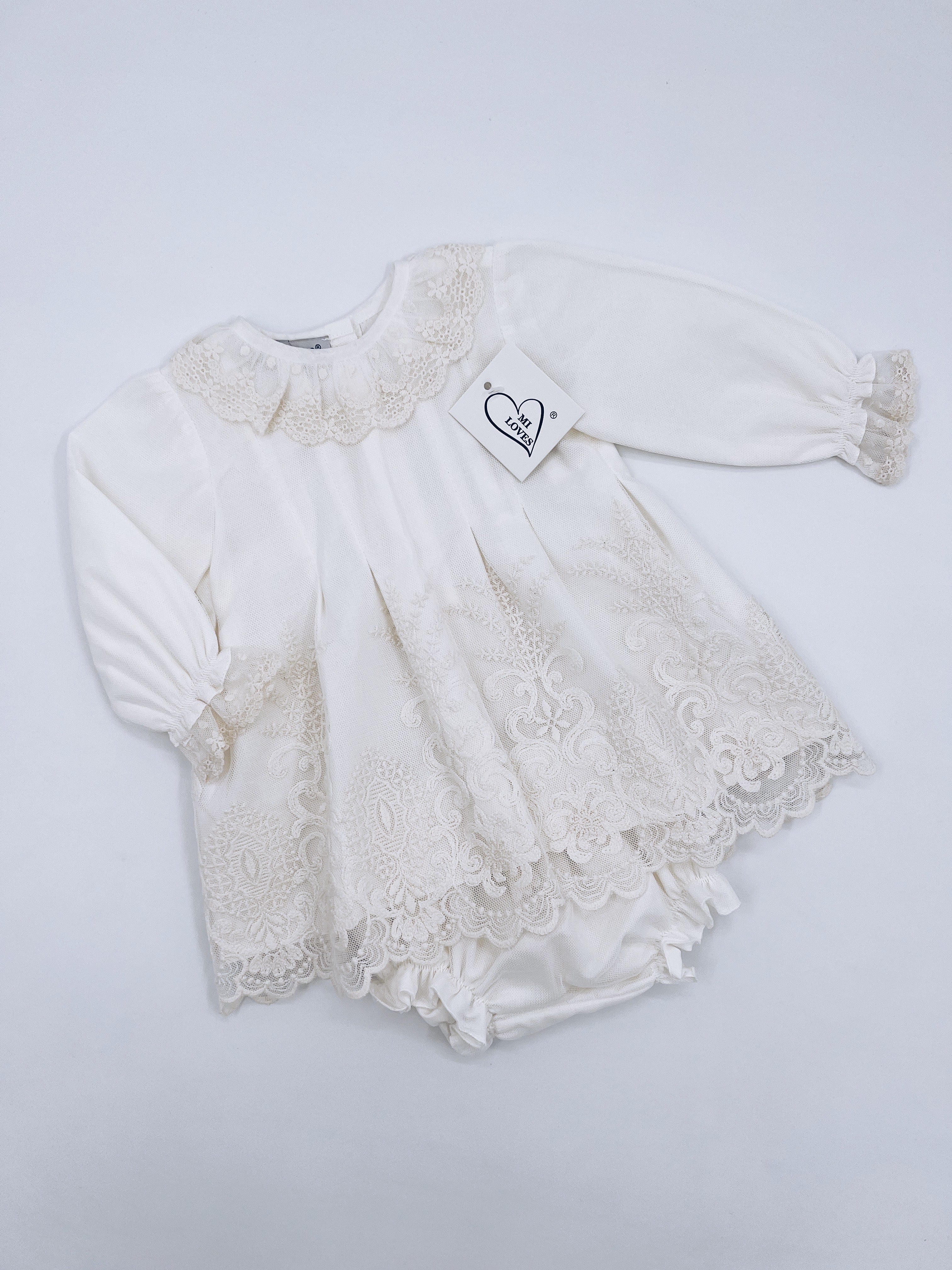Beautiful Ivory Dress/Bloomers 2 piece set with Beautiful Lace Details.