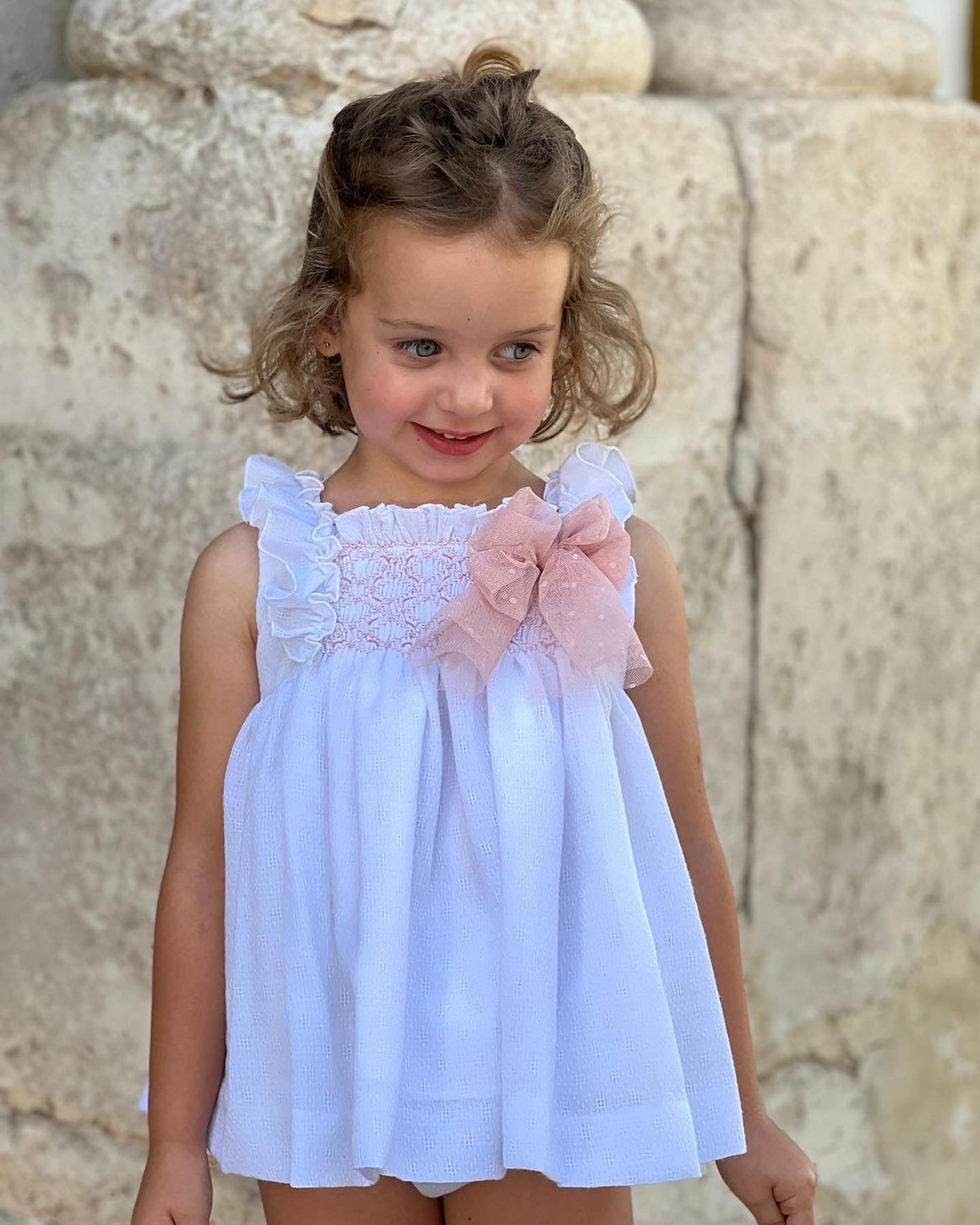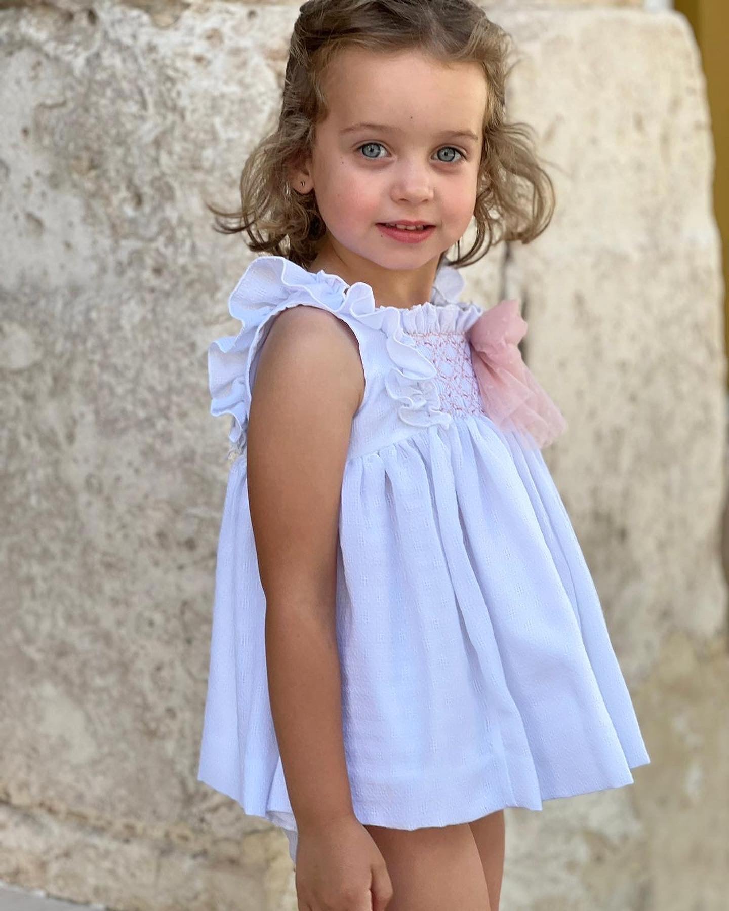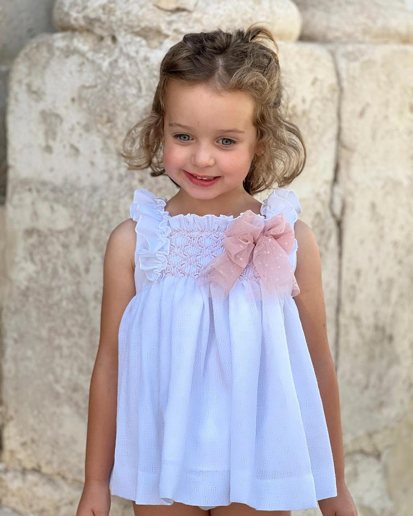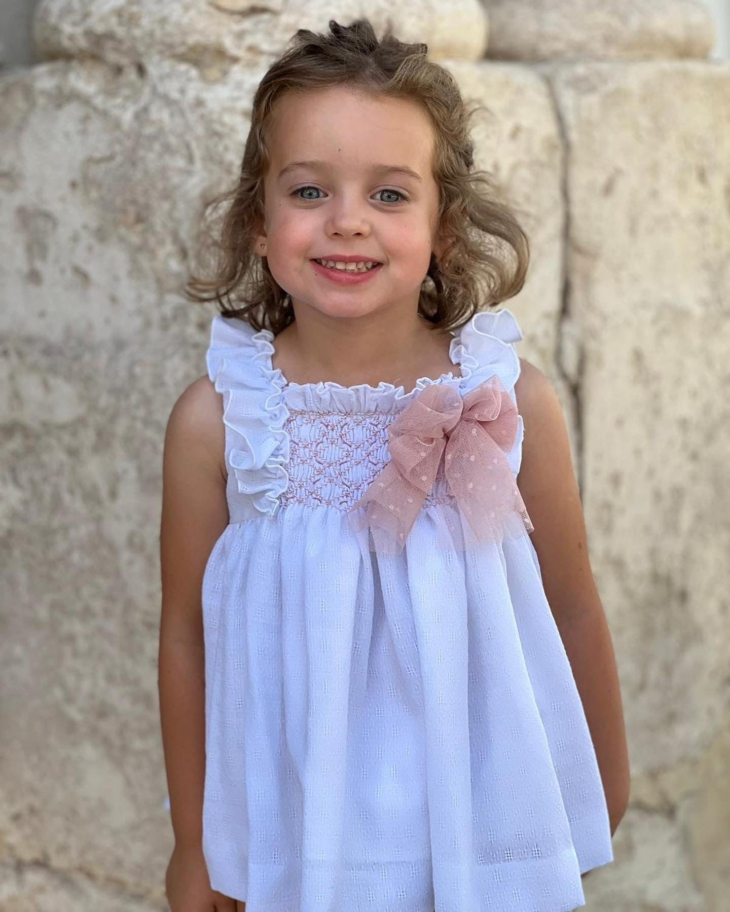 Beautiful White Dress with Dusty pink bow details.