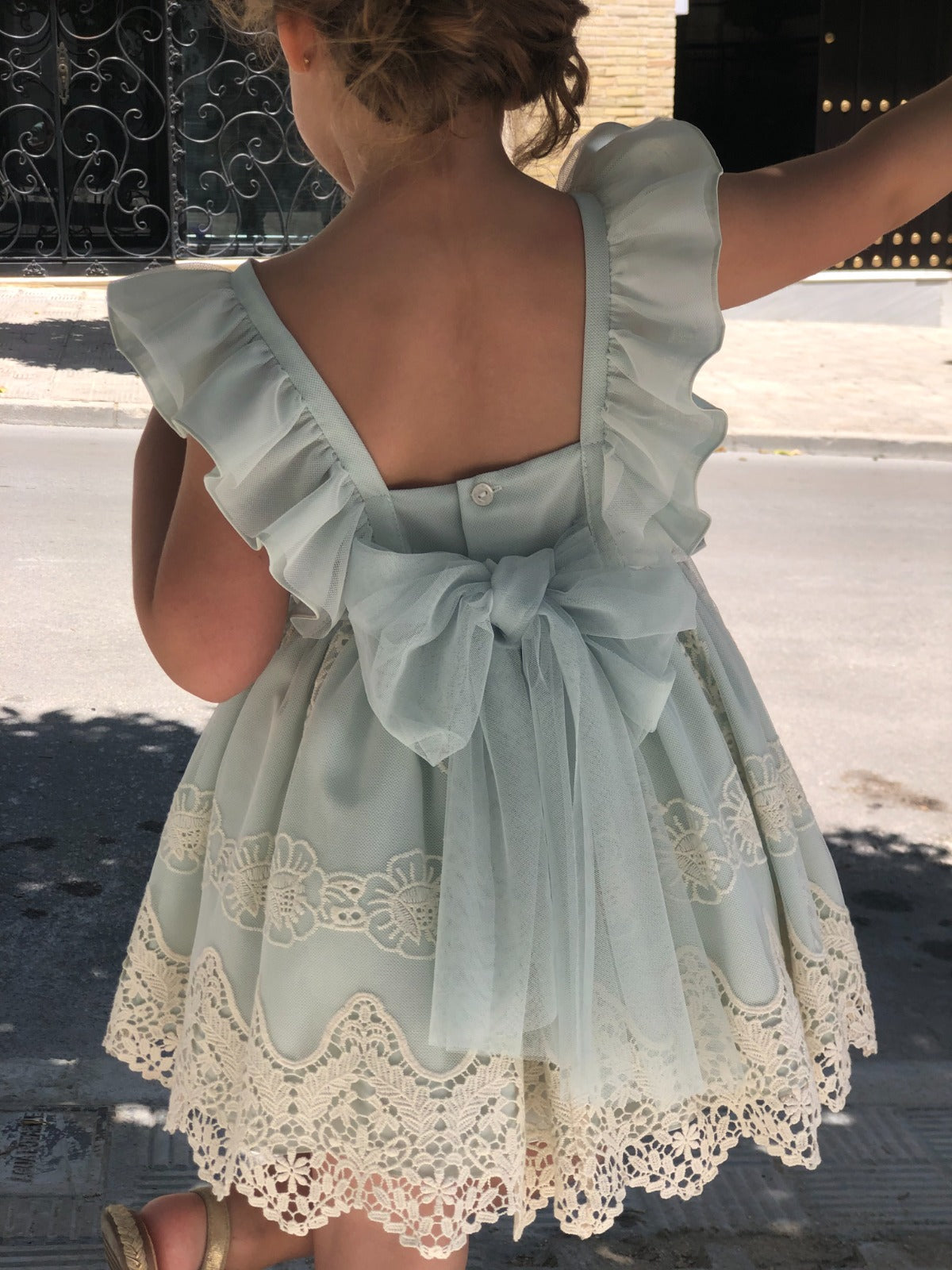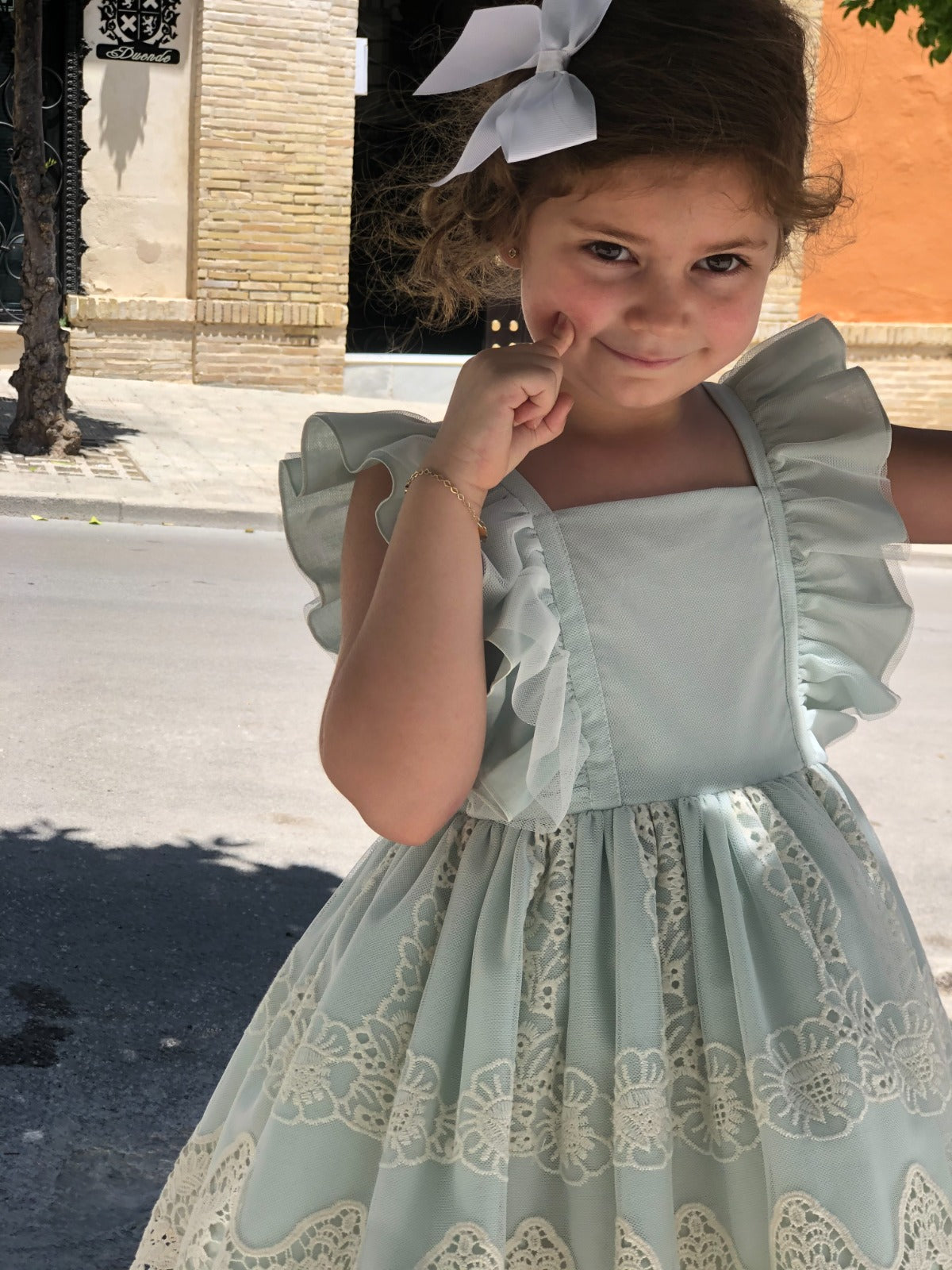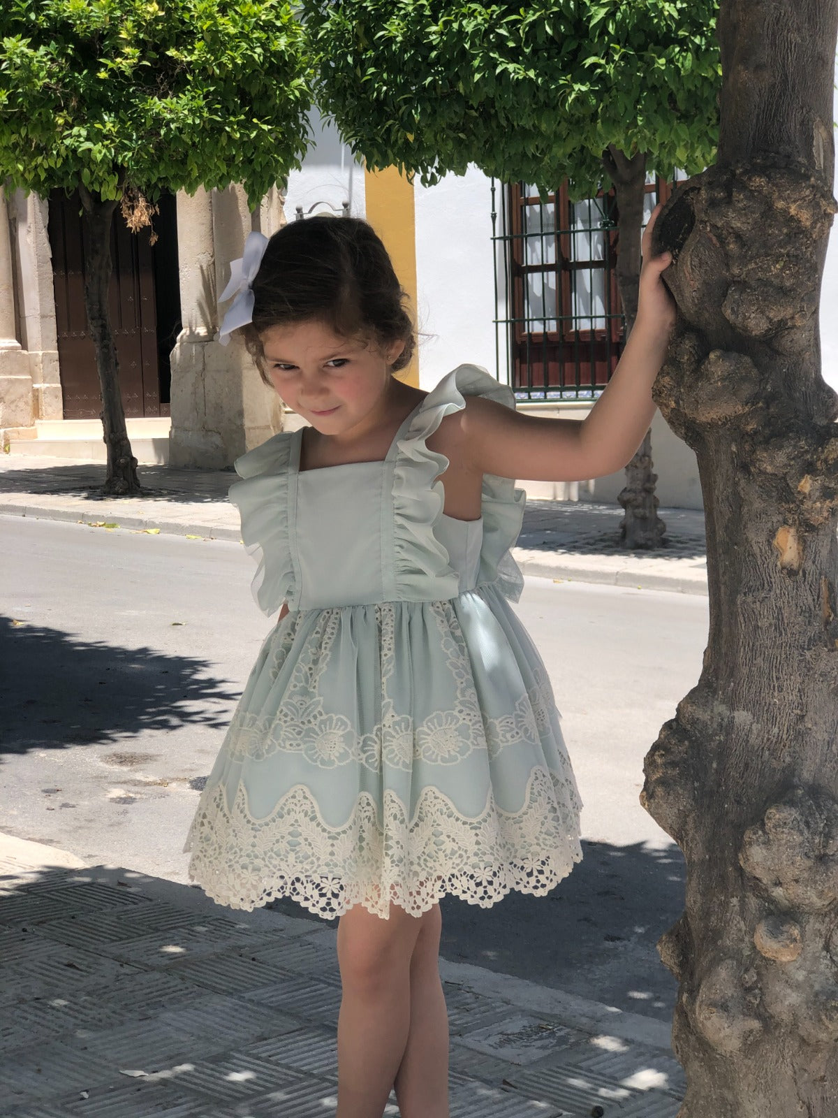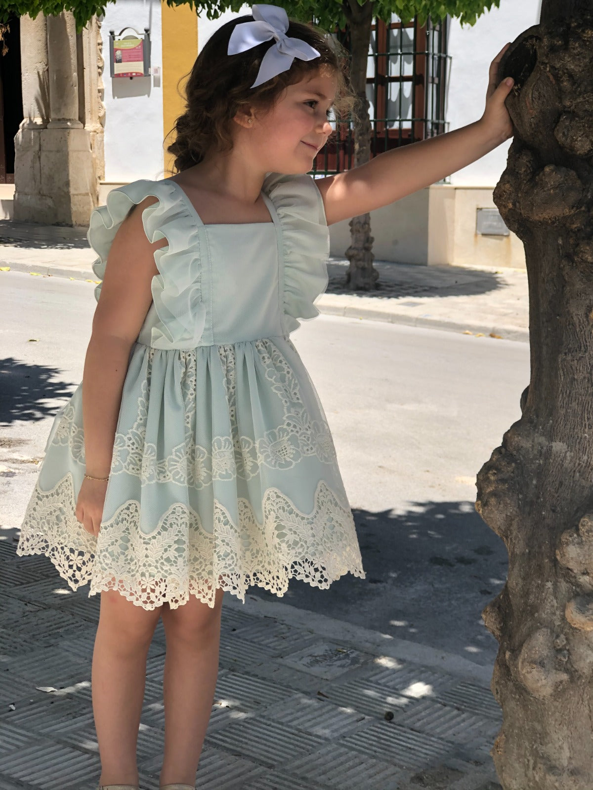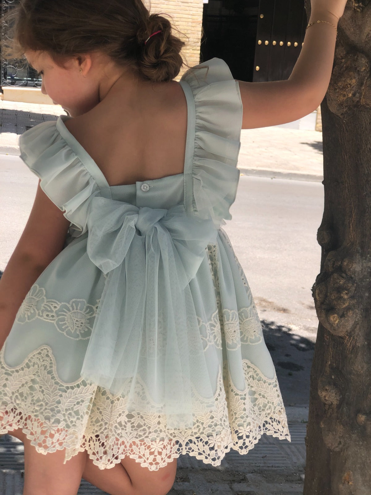 Beautiful Dress with lovely lace and bow details.