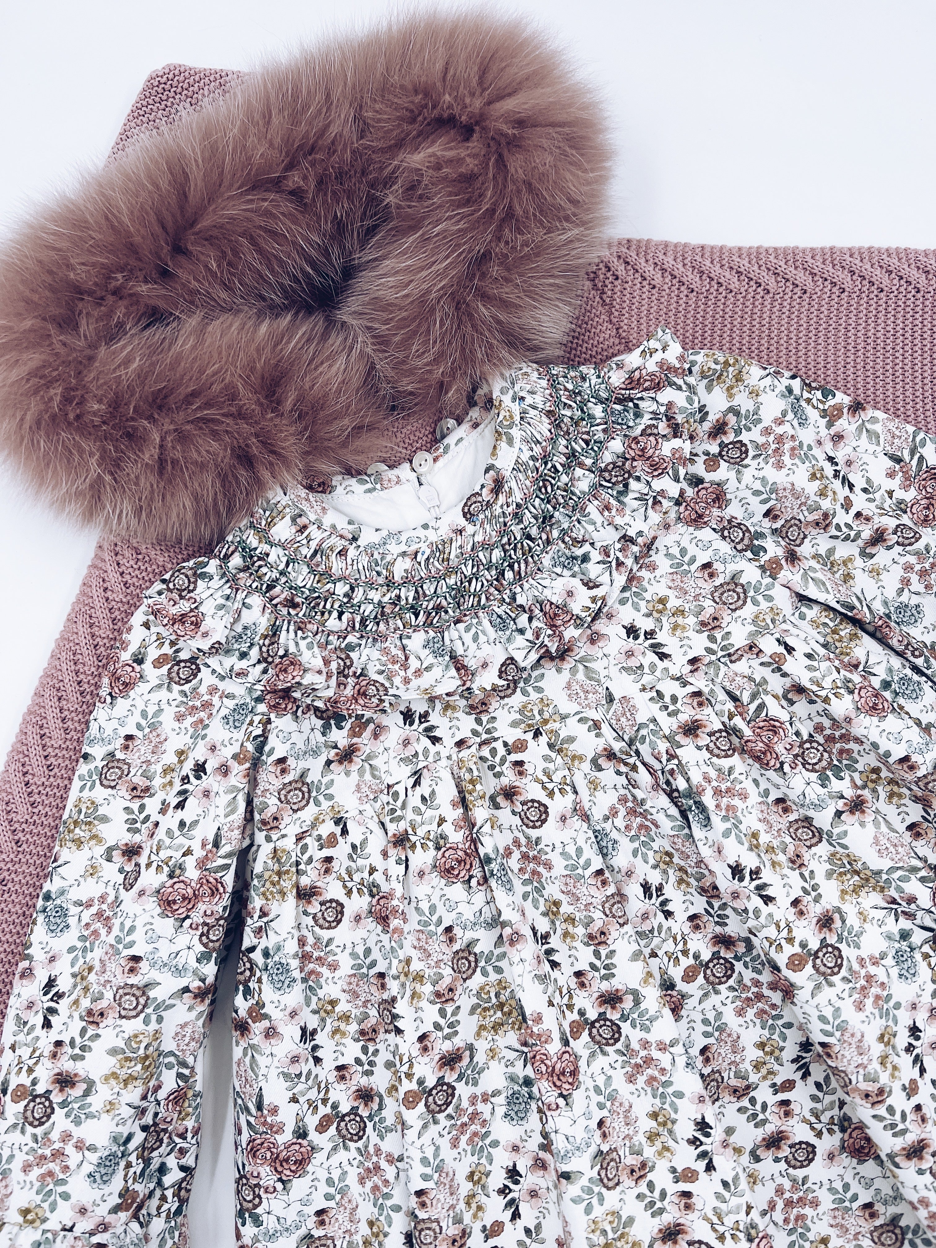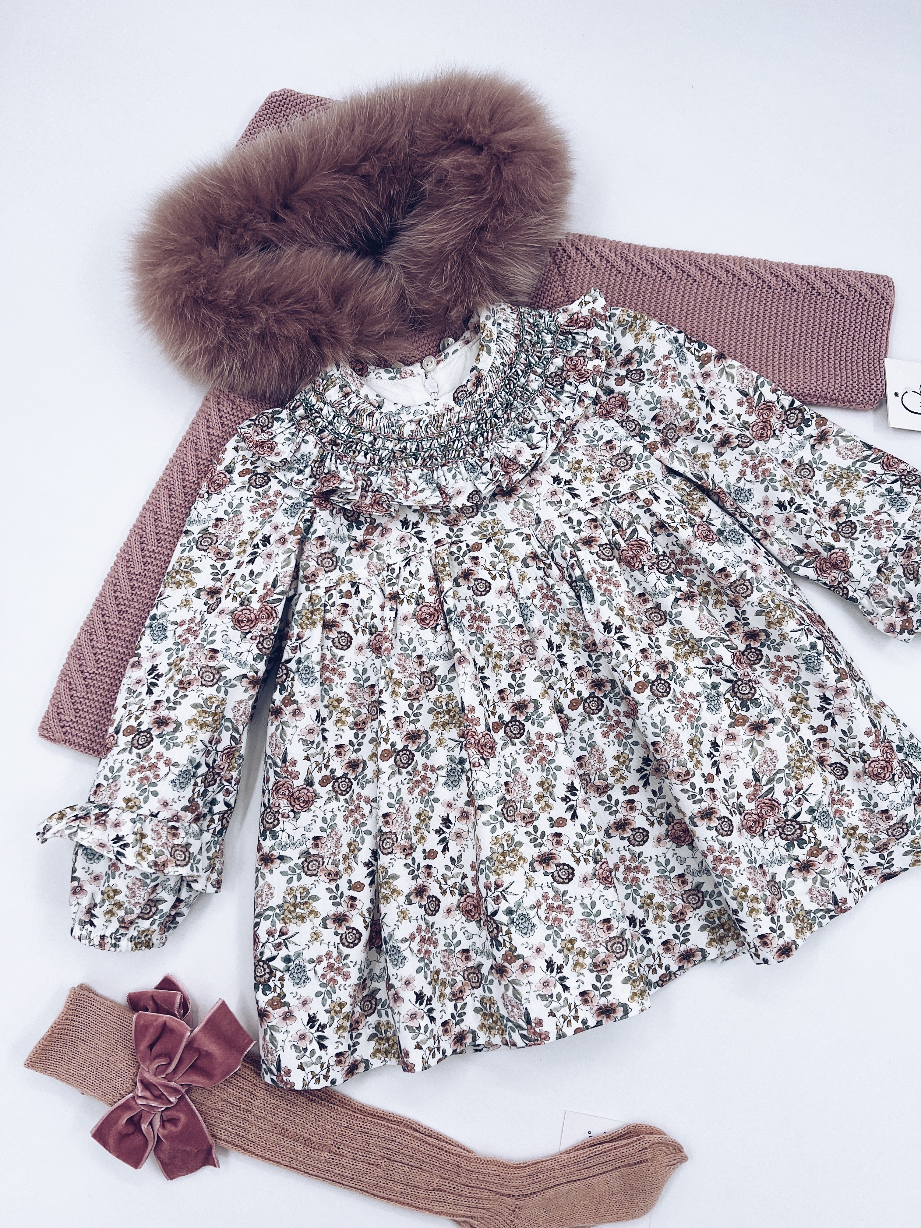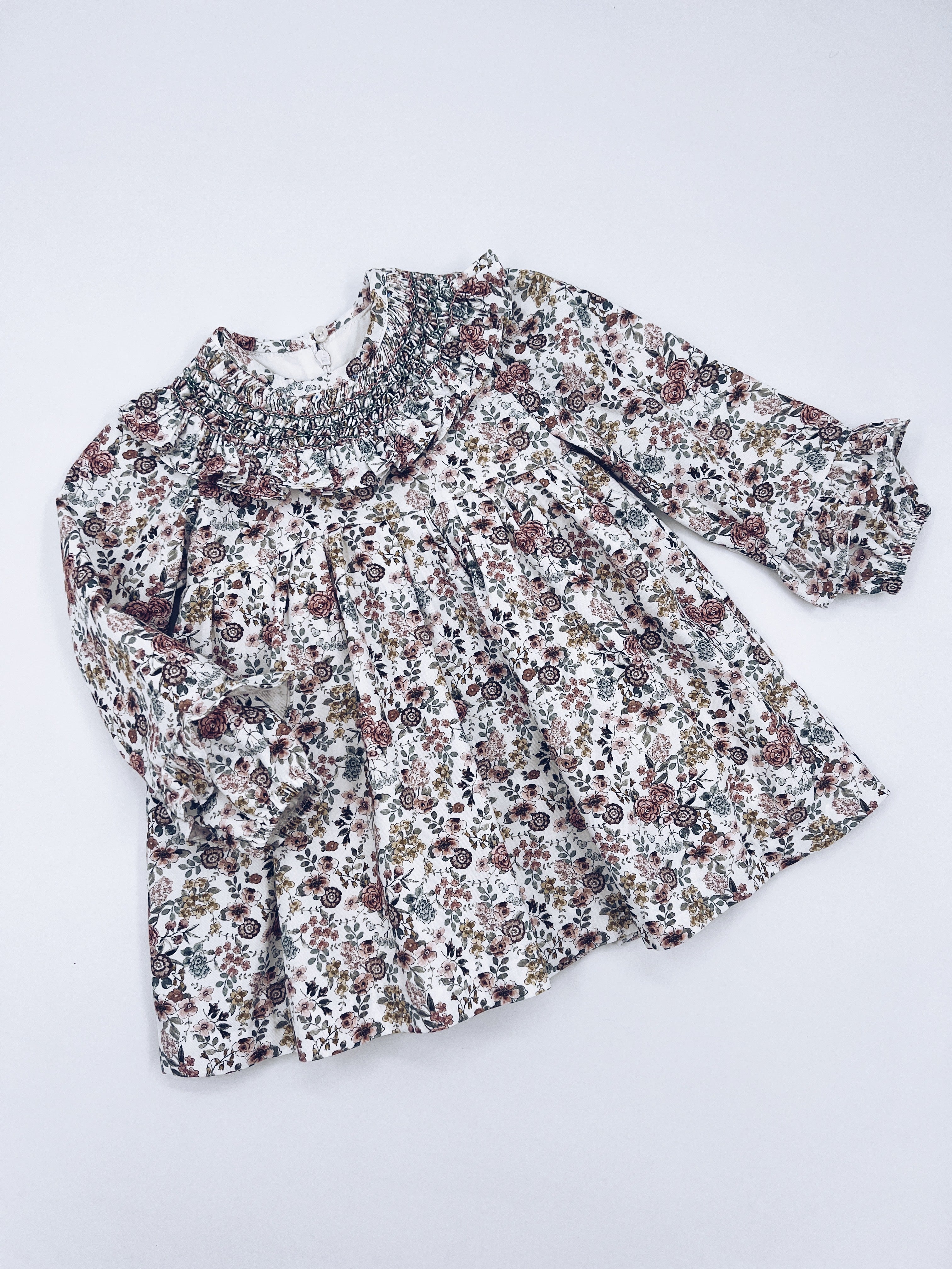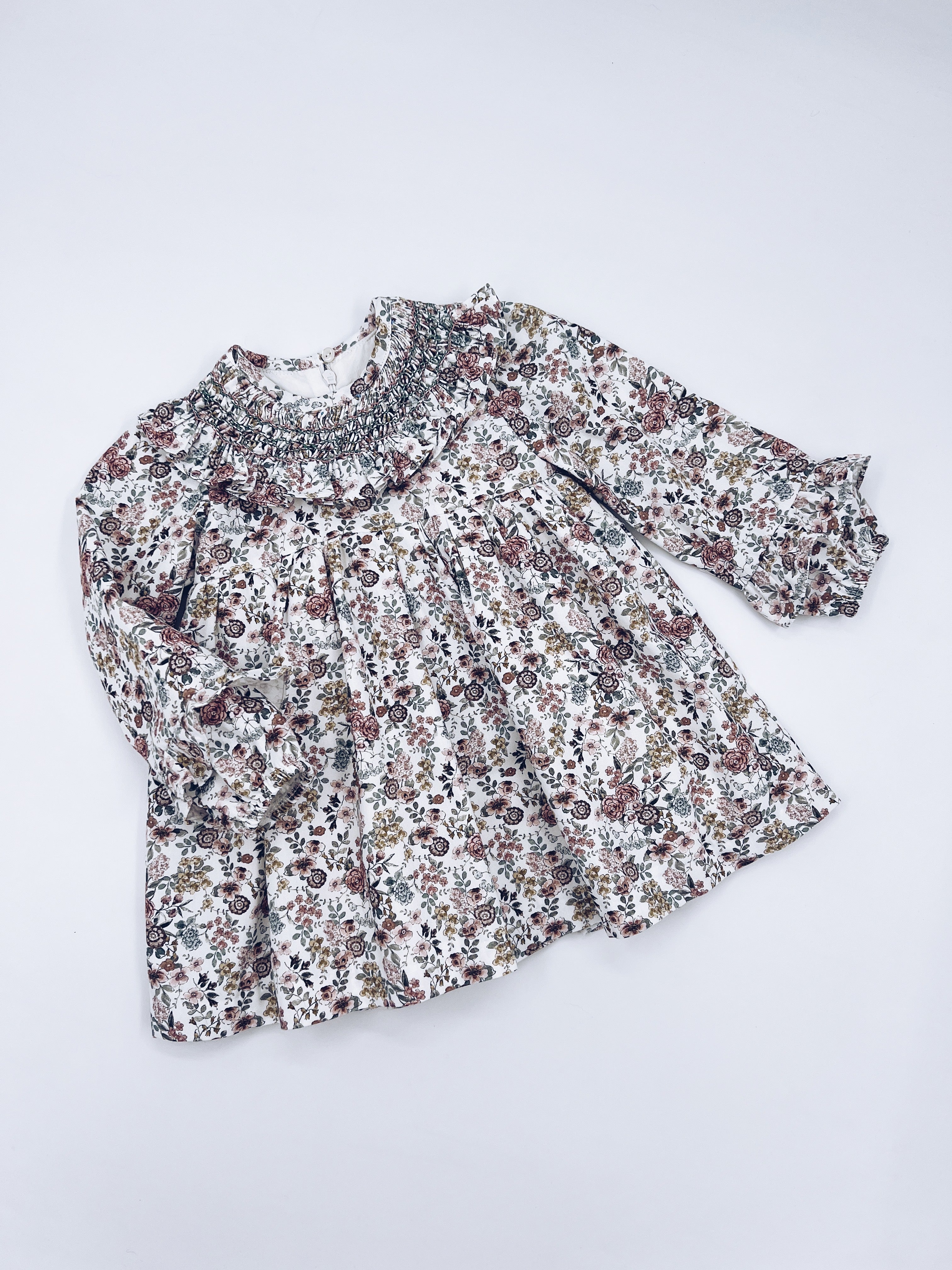 Beautiful floral print Dress with Statement Hand Smoked collar details.