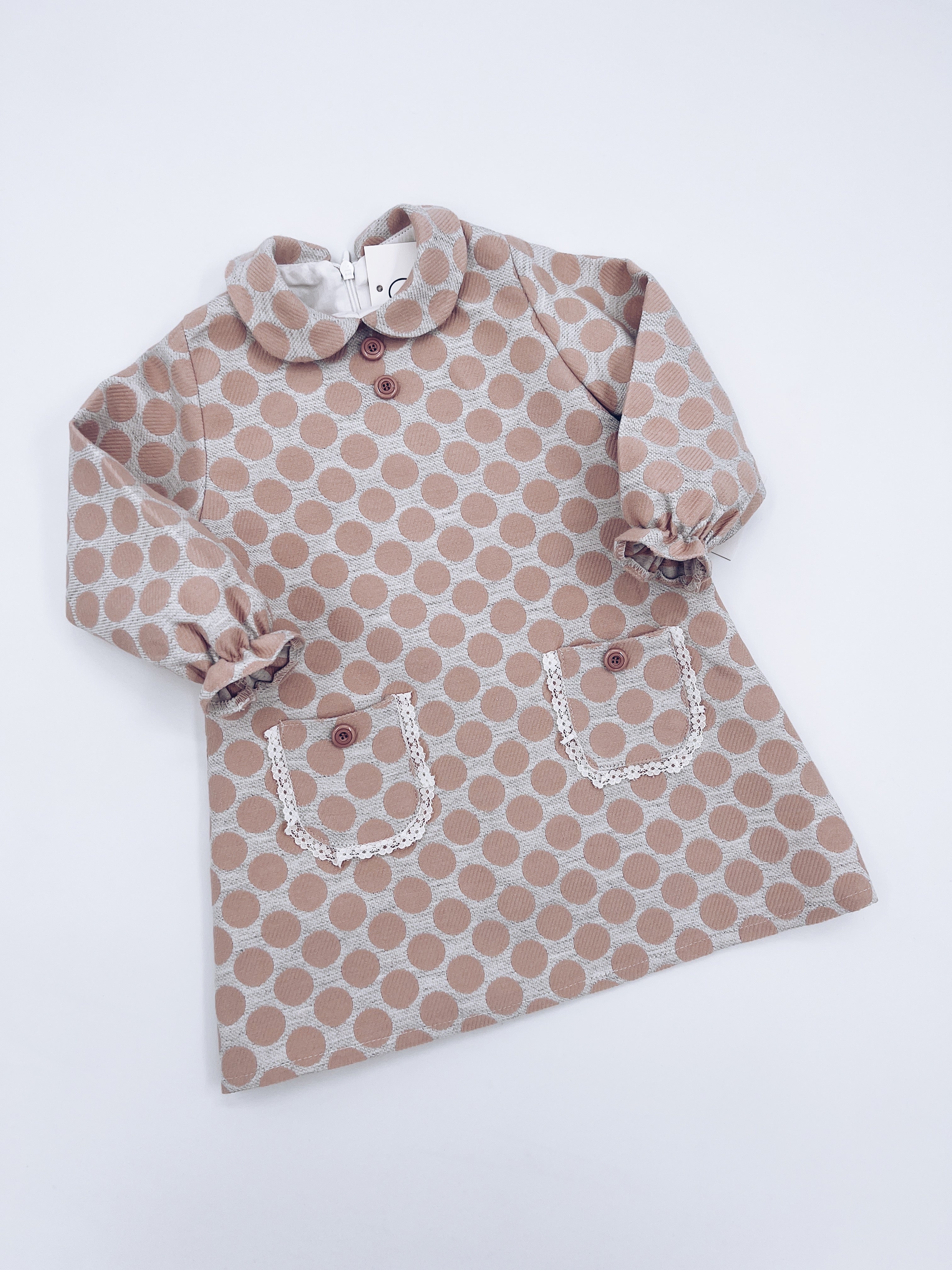 MI LOVES Pink and Grey A line Dress with pockets details.