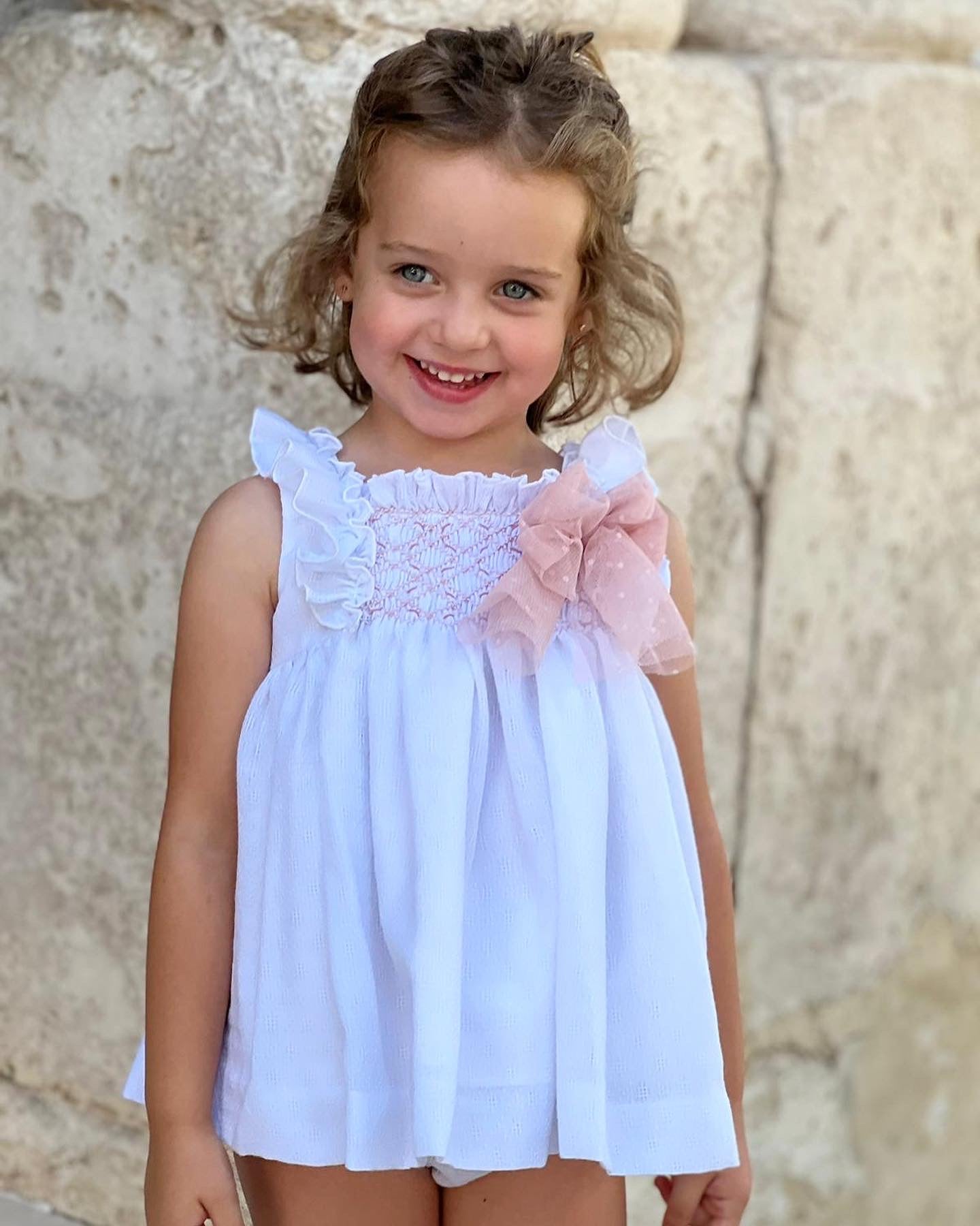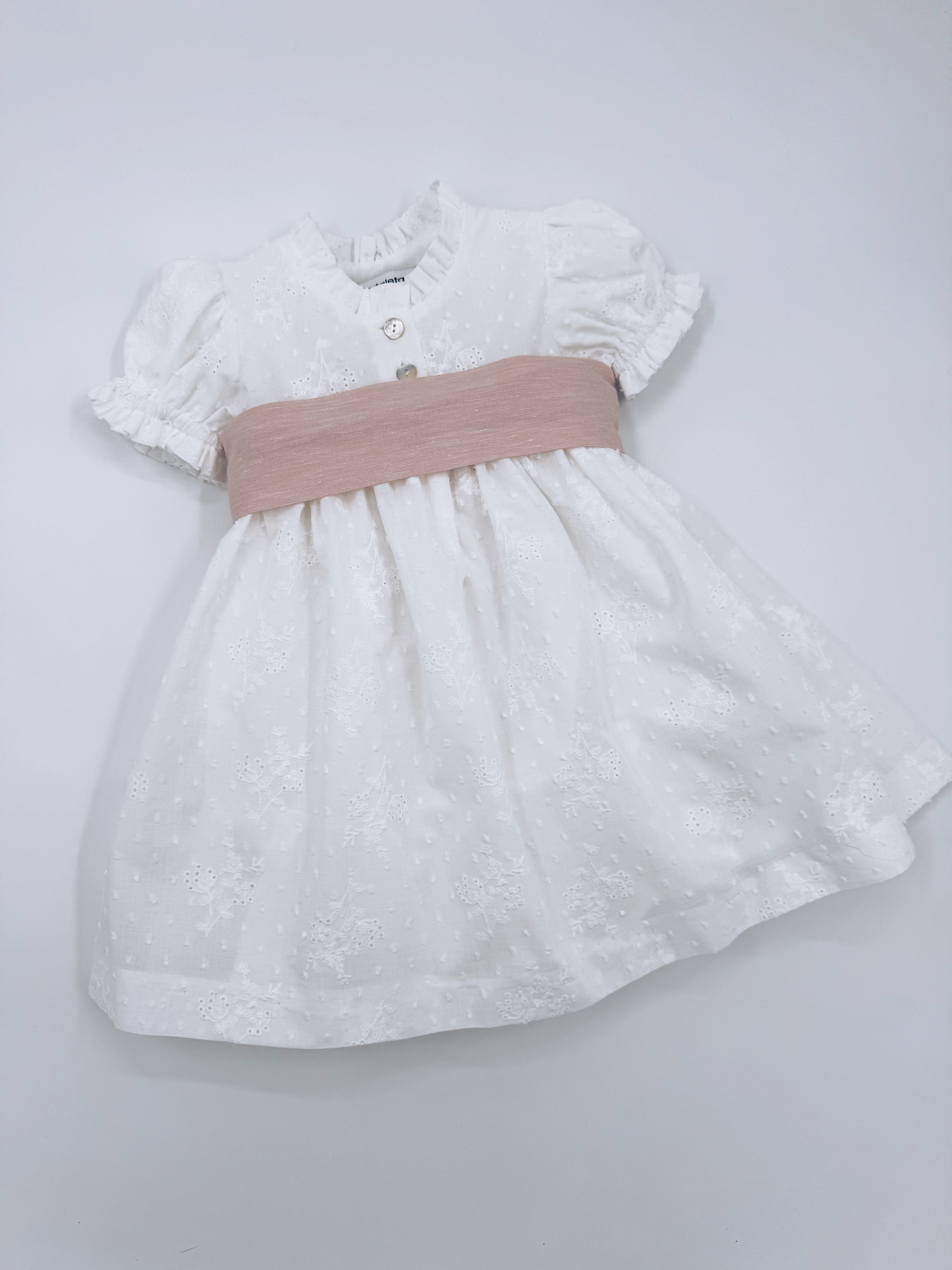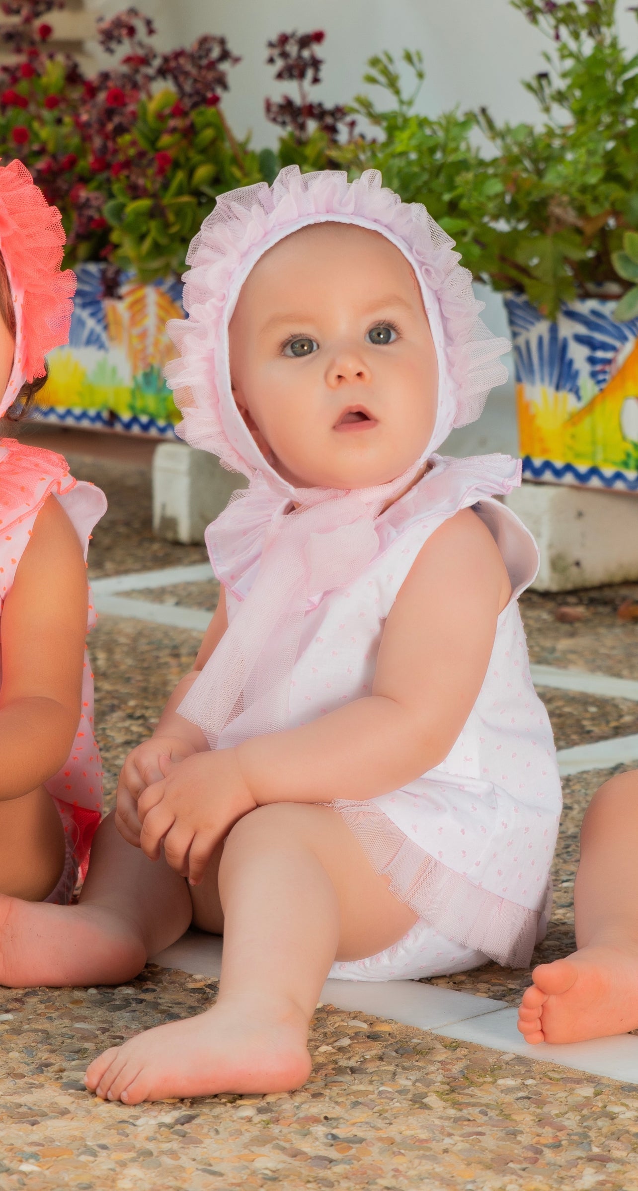 Beautiful Baby Pink Baby Girl Dress and bloomers 2 piece set with tulle frill details.