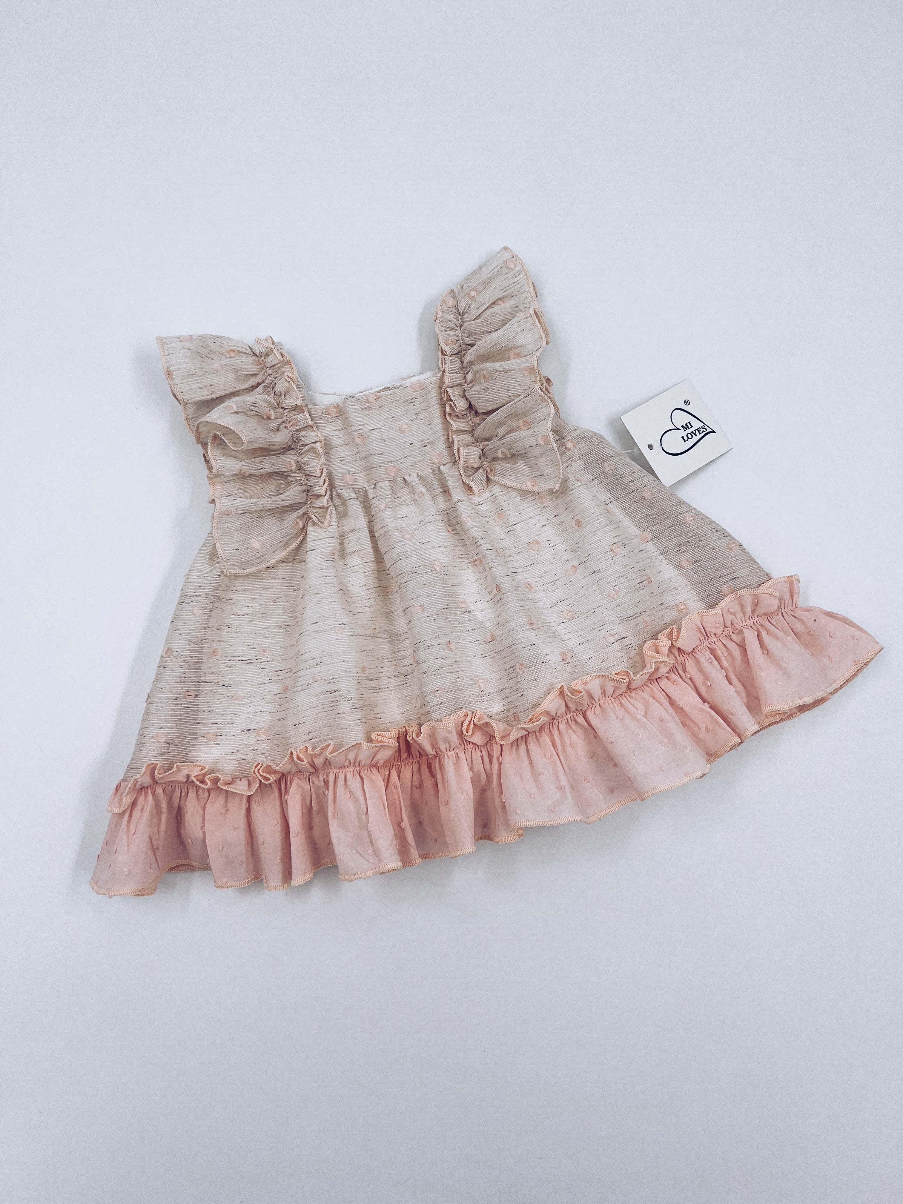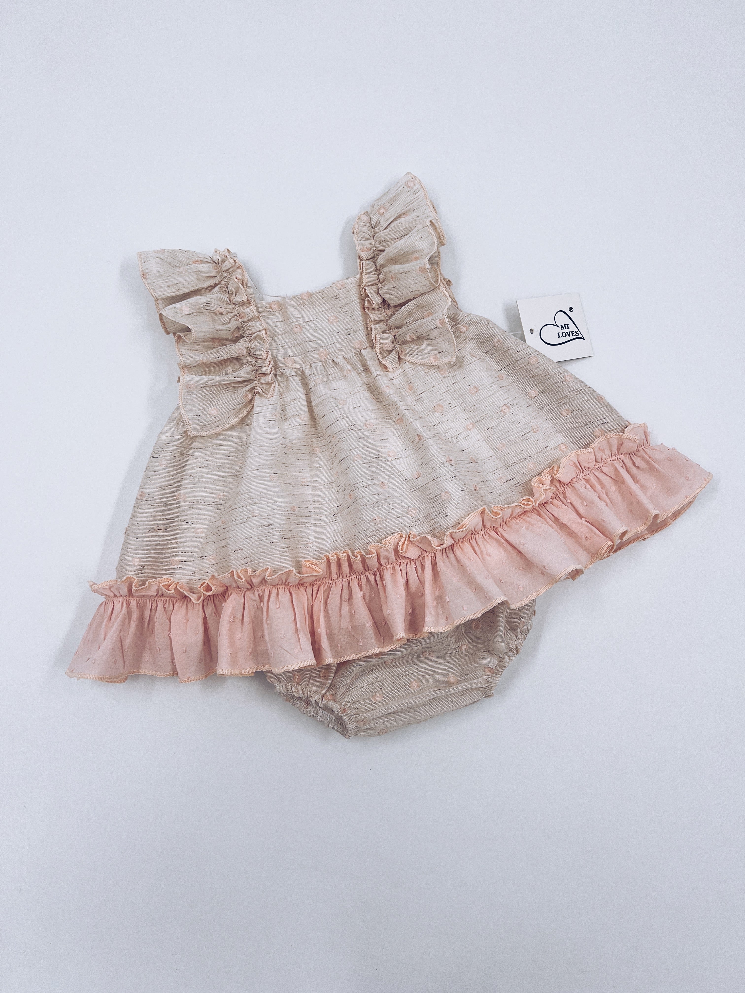 Beautiful pink Dress/Bloomers 2 piece set with frill details.