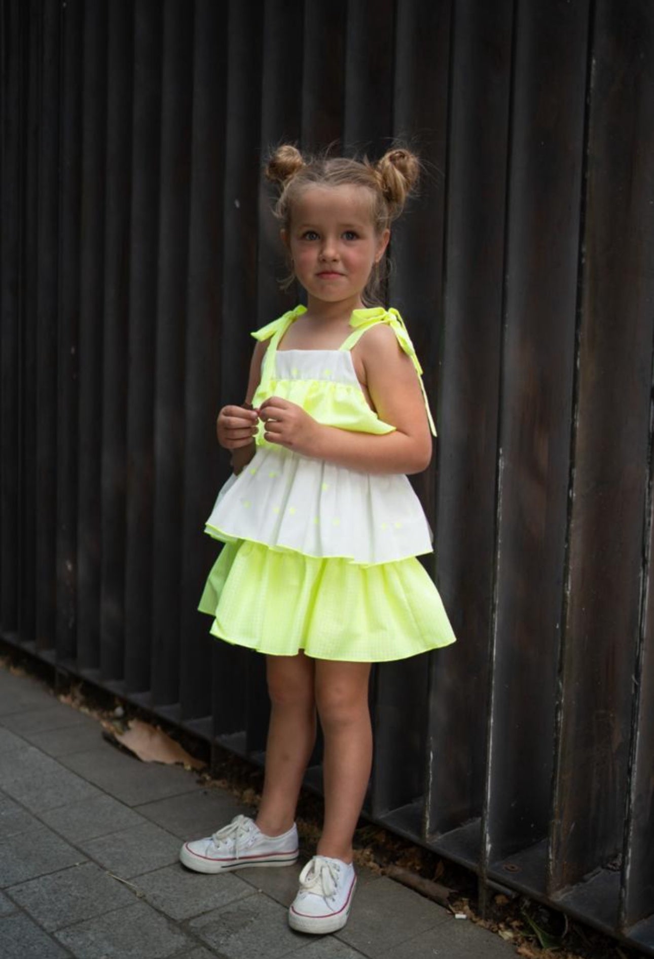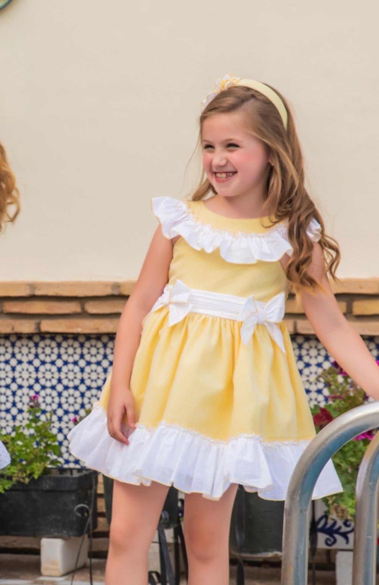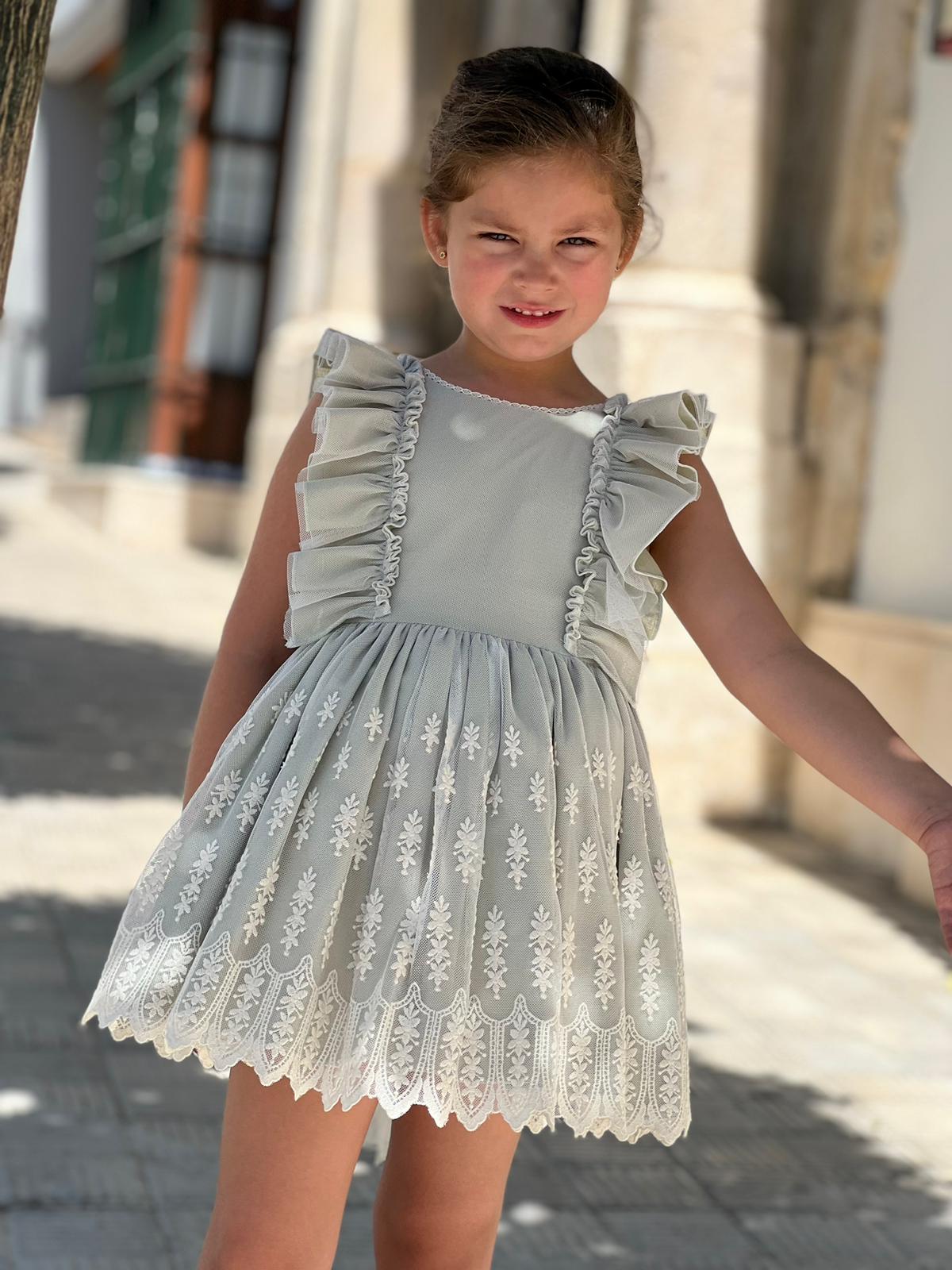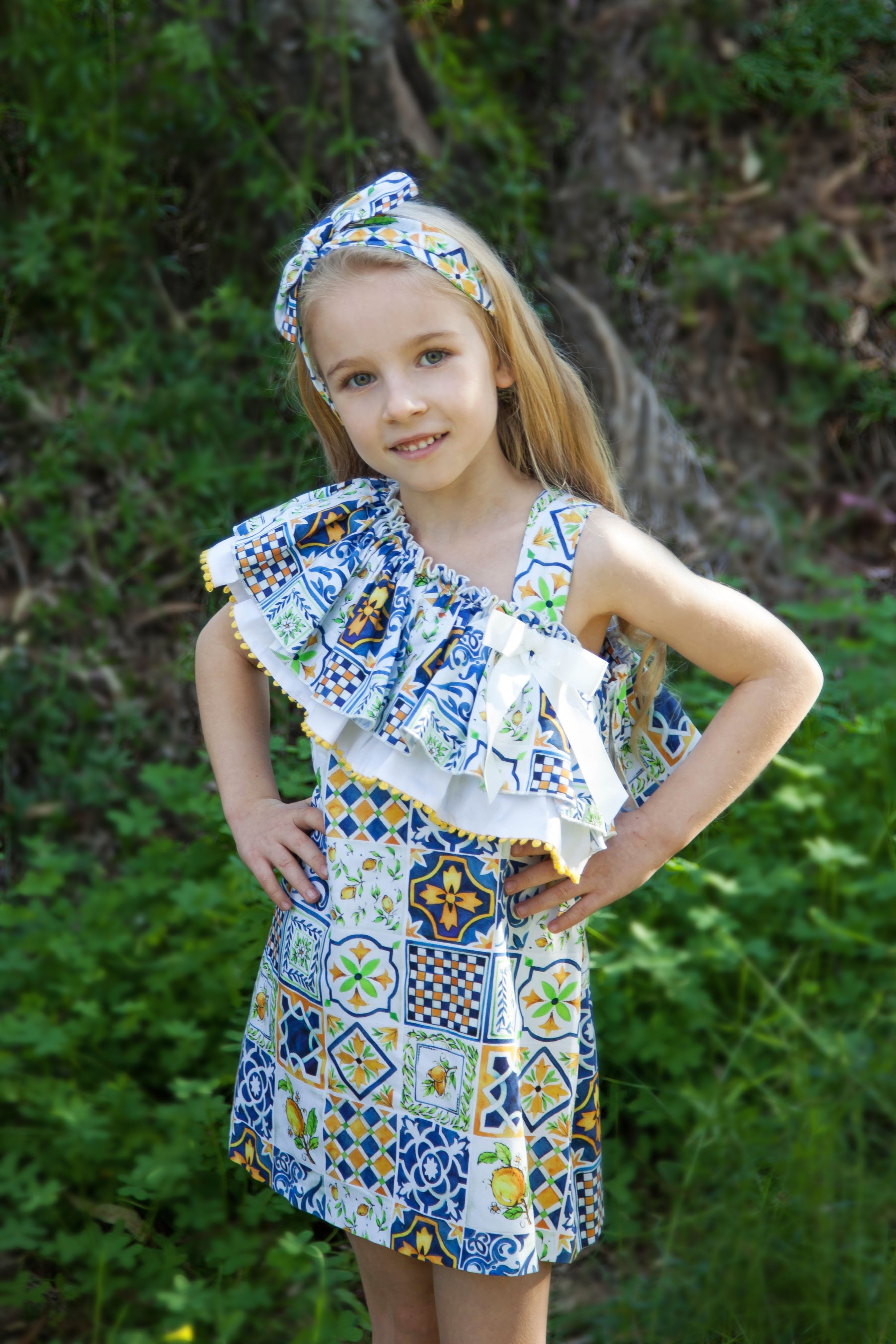MI LOVES Beautiful Girl Azuejo Dress with Double frill details.