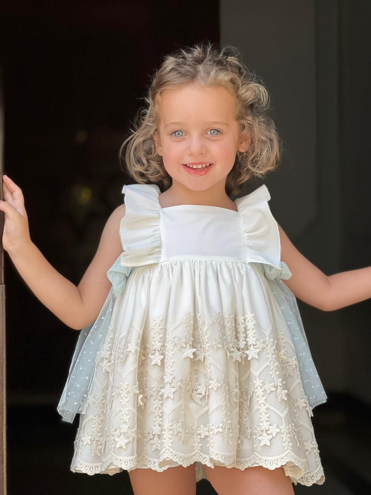 Beautiful Dress with delicate Lace ,stars and bow details.