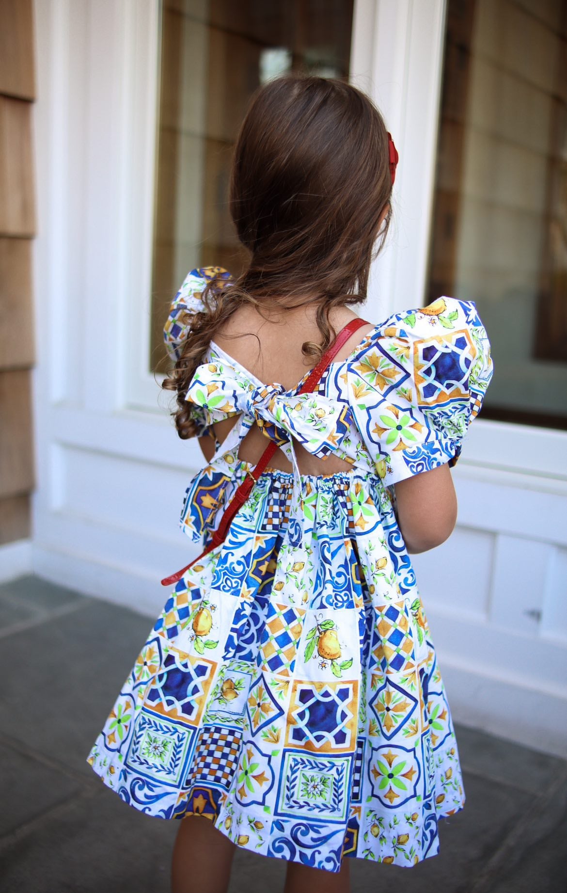 MI LOVES Beautiful Girl Azuejo Dress with Puff sleeves and Beautiful details on the back.