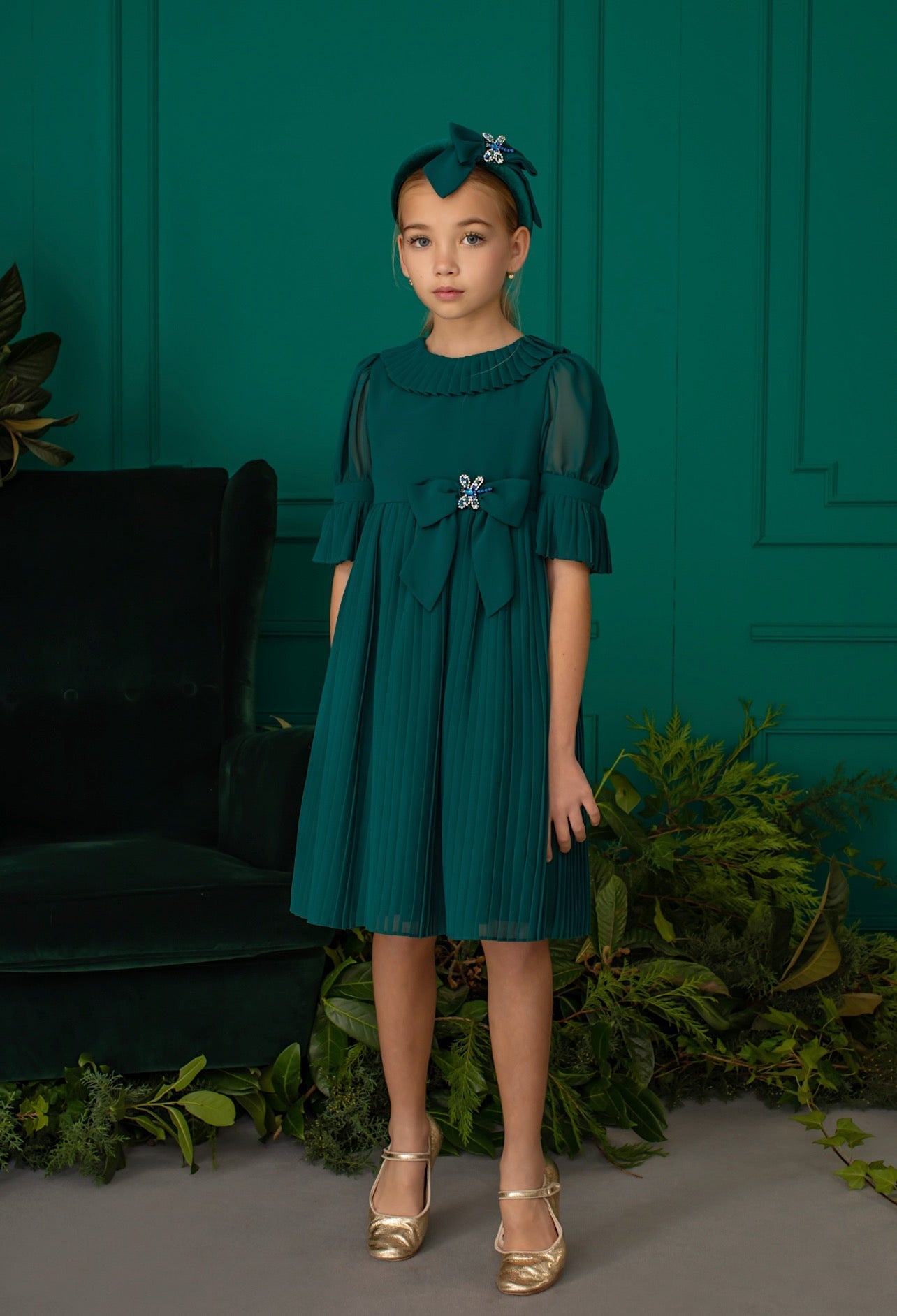 Beautiful Emerald Green chiffon dress with Bow details.Beautiful,