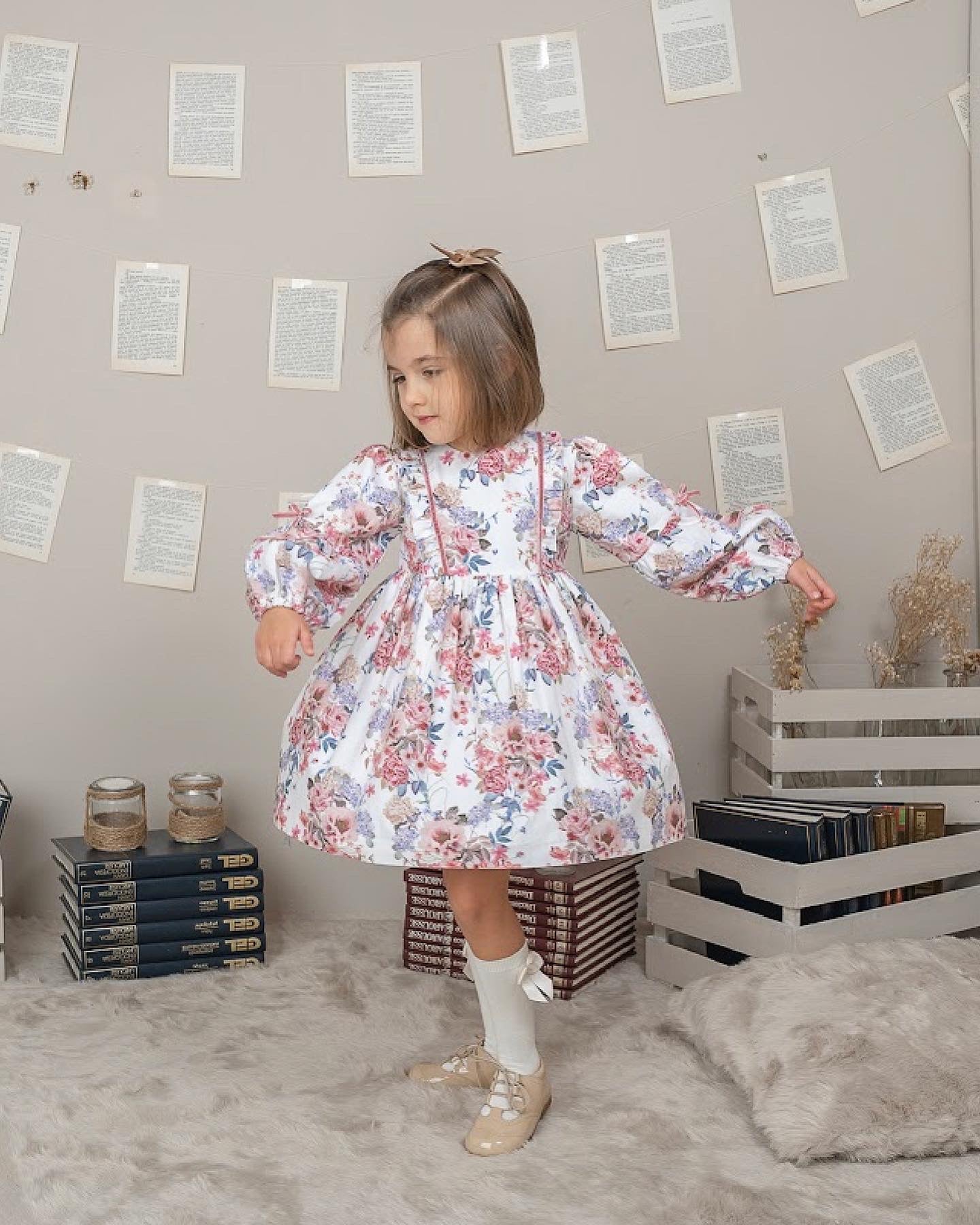 Beautiful Girls Ivory Floral Cotton dress with bow details.