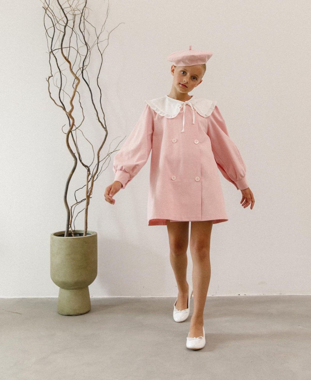 Beautuful Pink/Dusty pink dress set, with beret and removable collar.