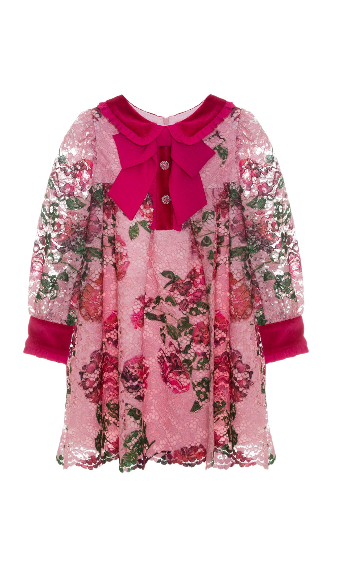 Beautiful Girls Pink Floral Lace and Velvet Dress.