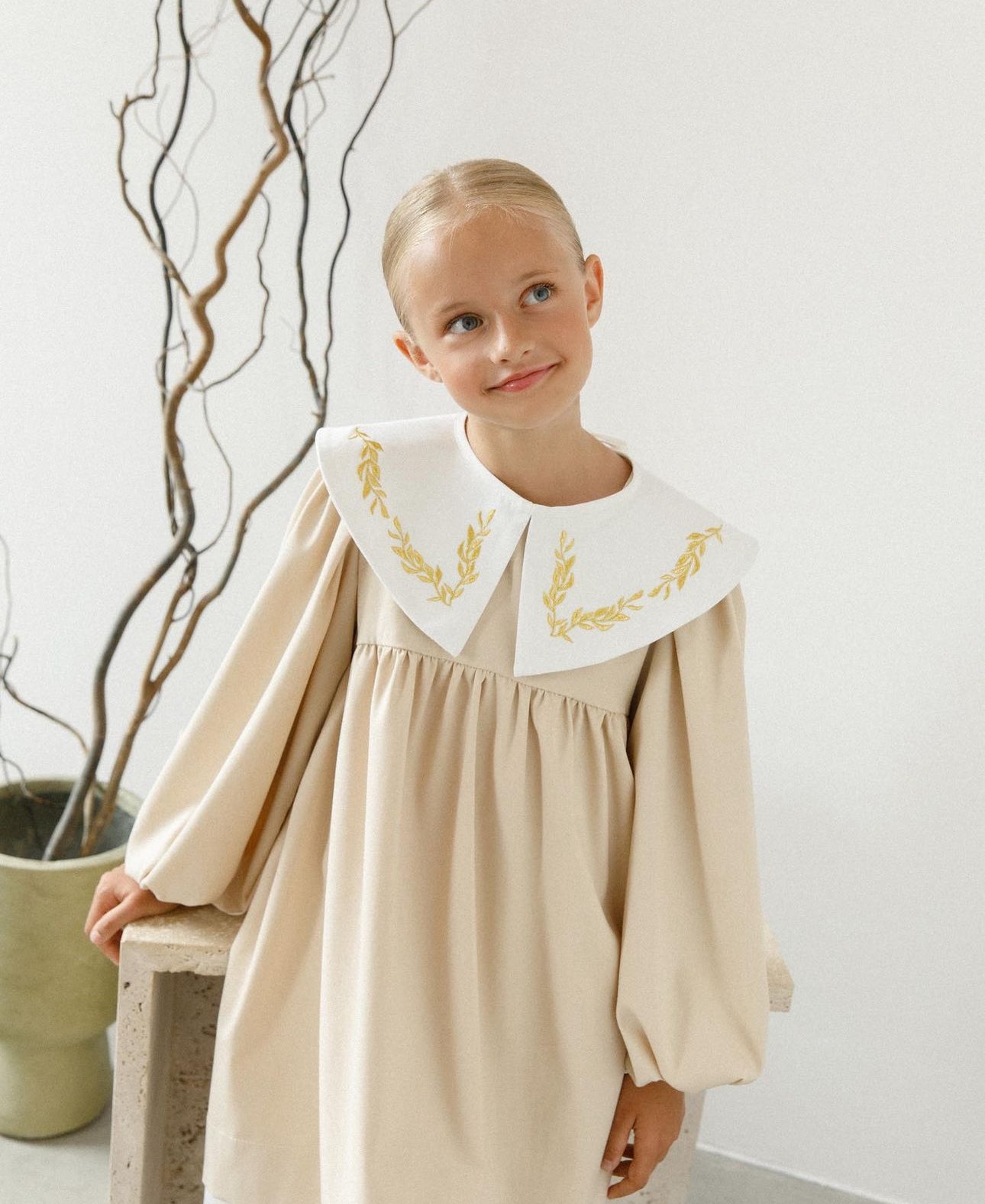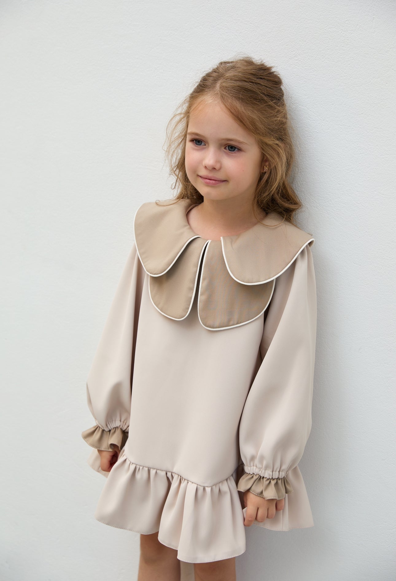 Beautiful Cream dress with Statement Collar details.