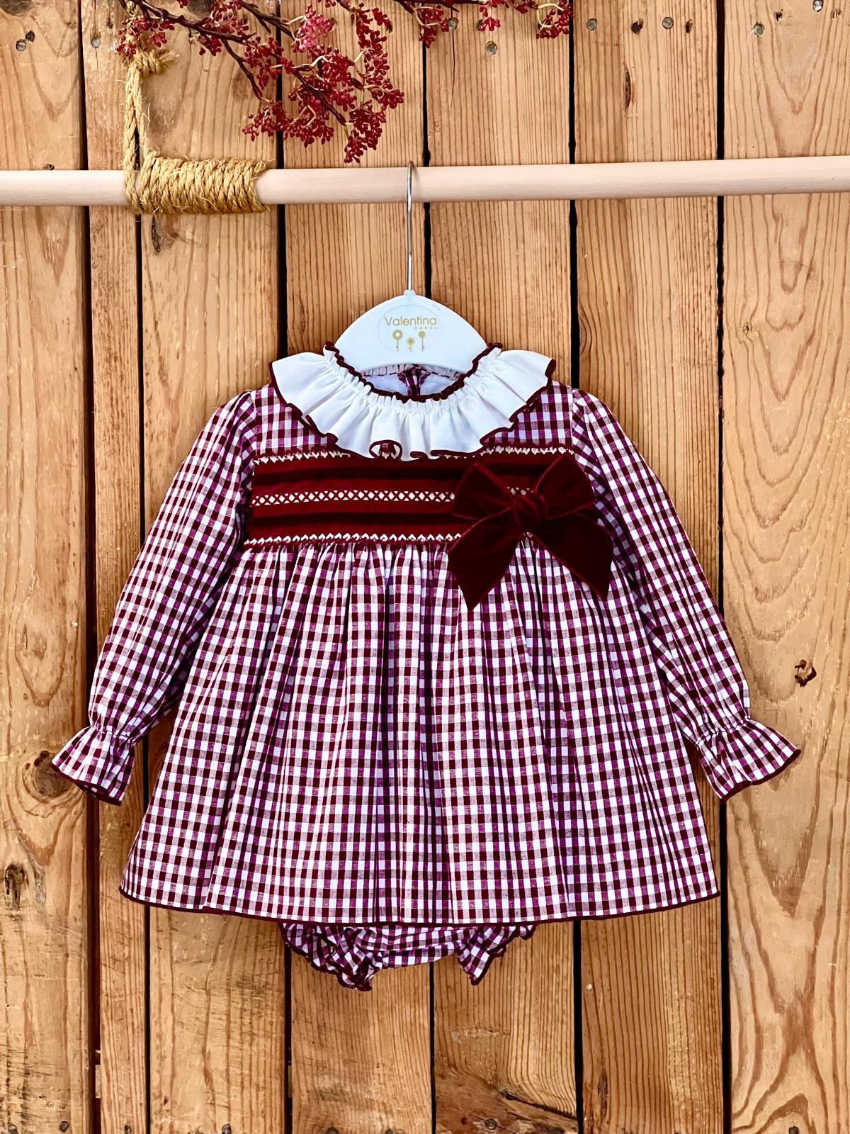 Beautiful Girls Burgundy Gingham Dress and bloomers set.