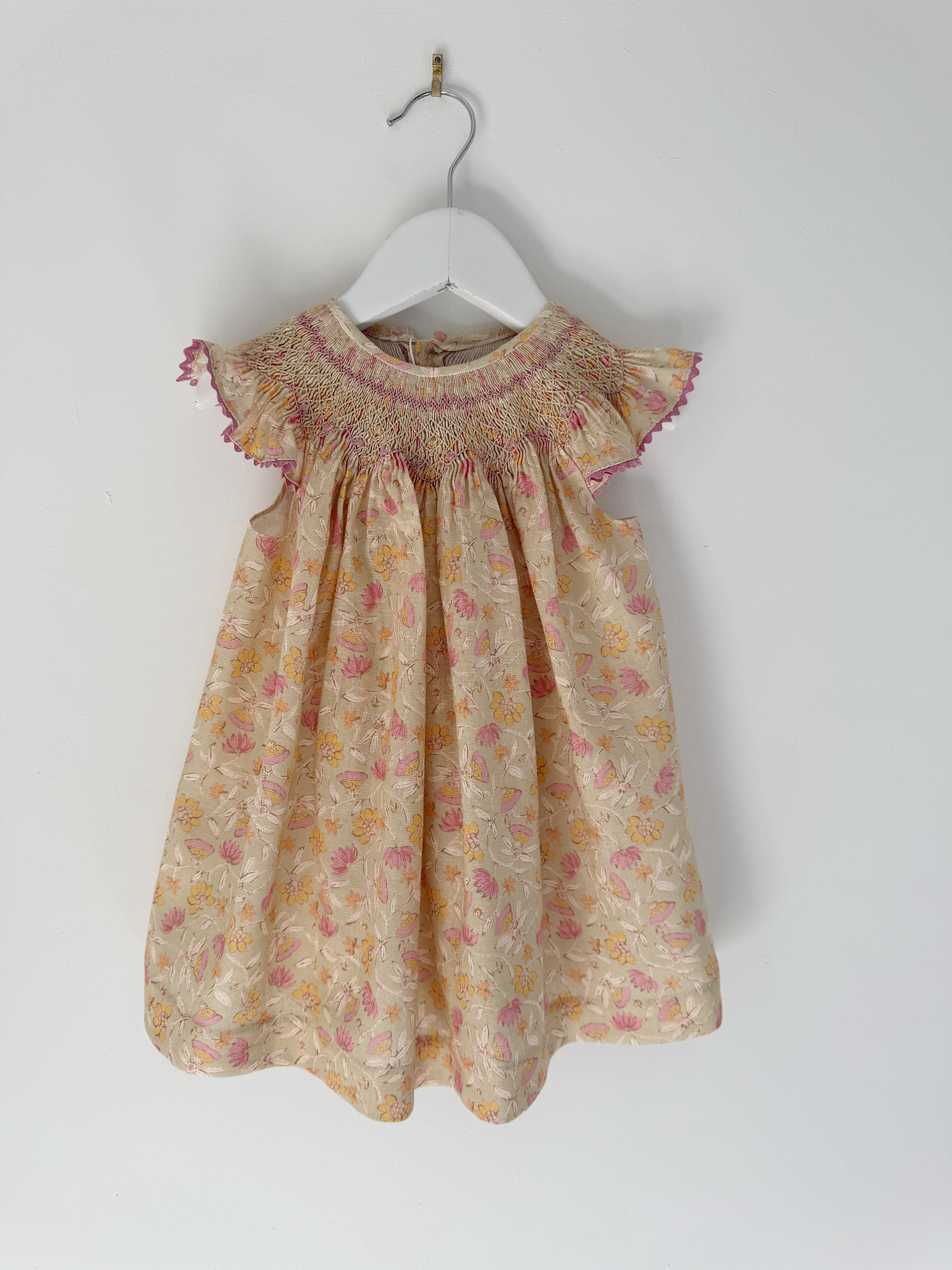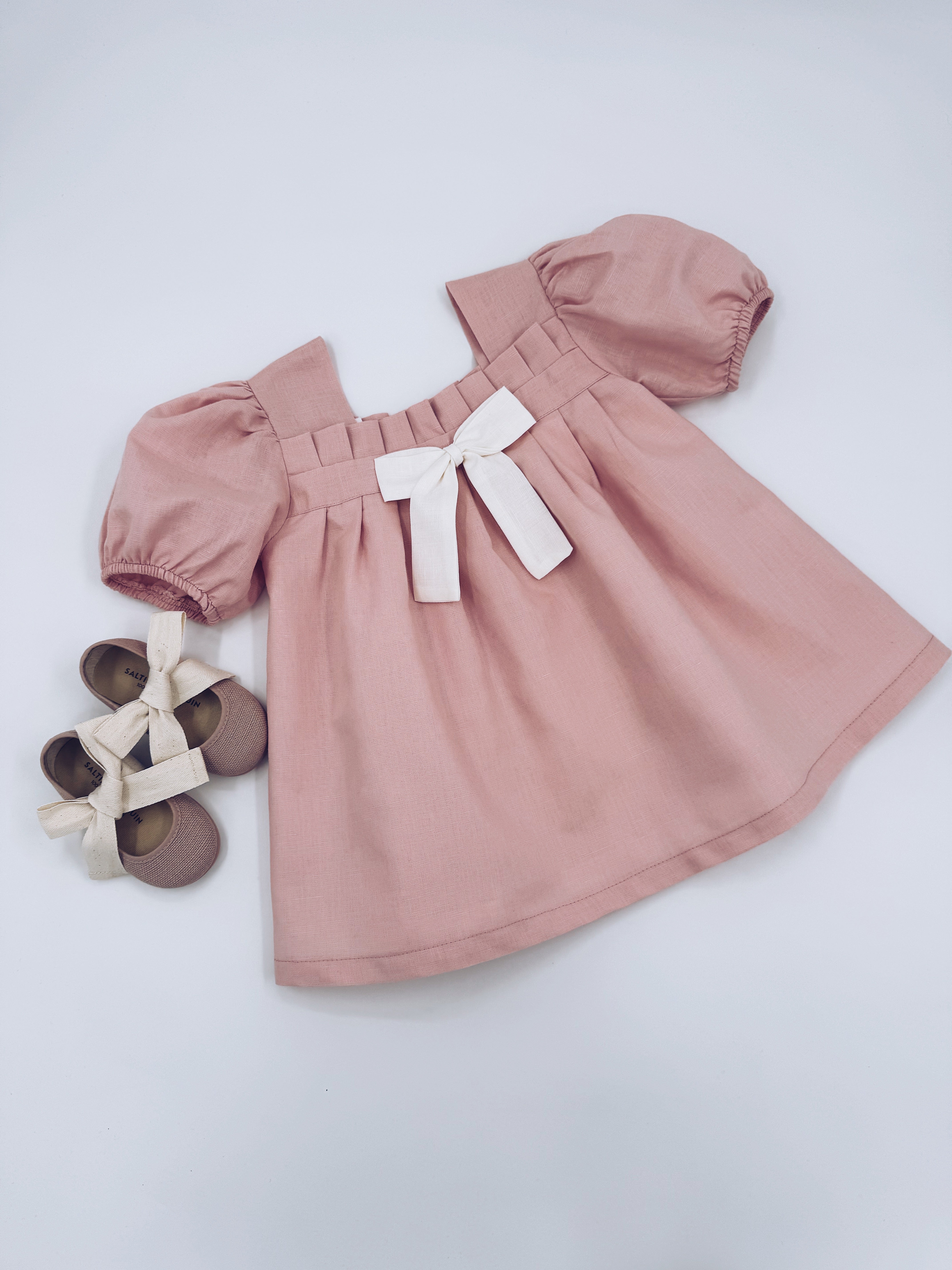 MI LOVES Dusty pink Linen Dress with puff sleeves.