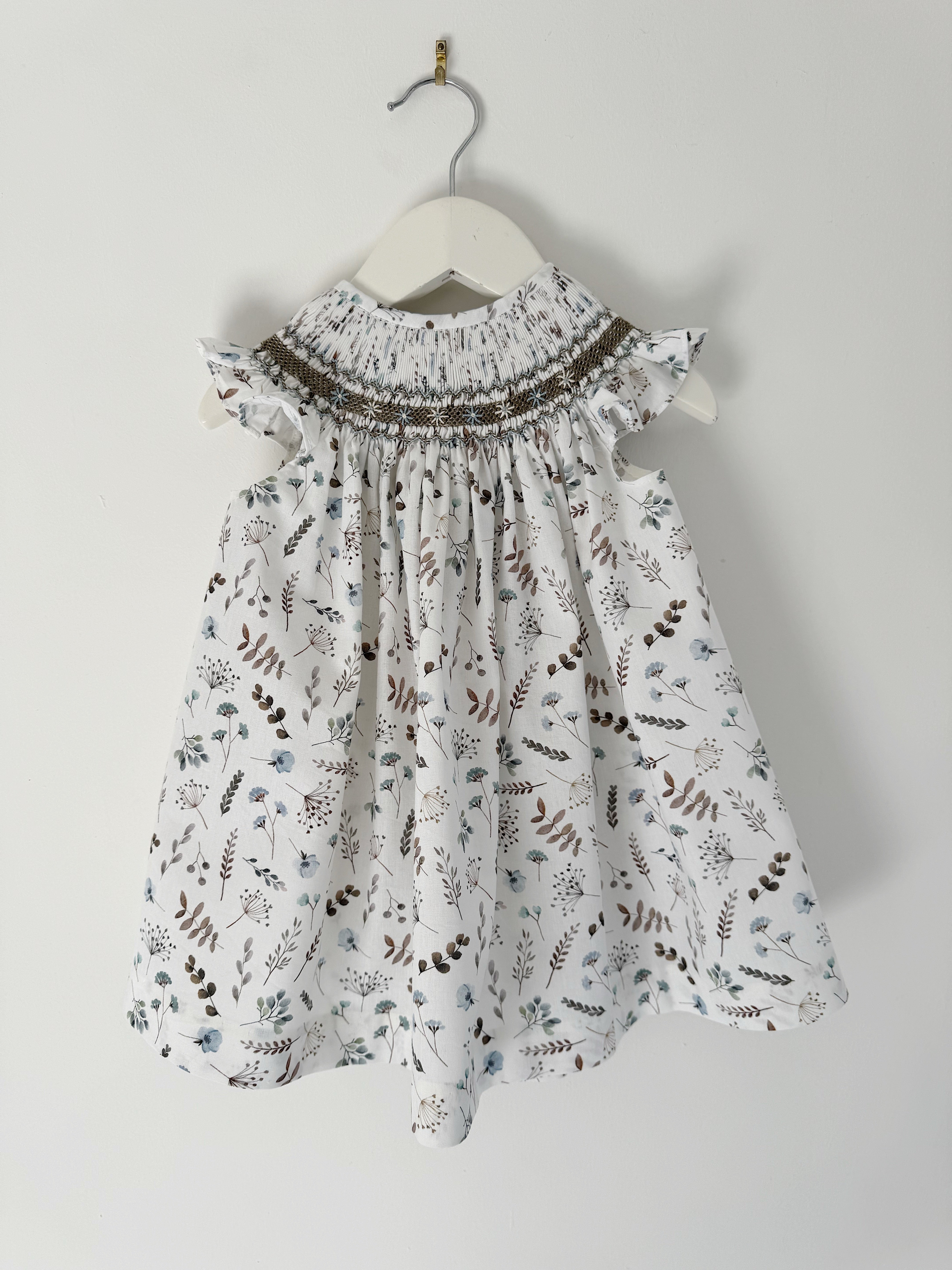 Beautiful white linen dress and bloomers with dusty pink frill details