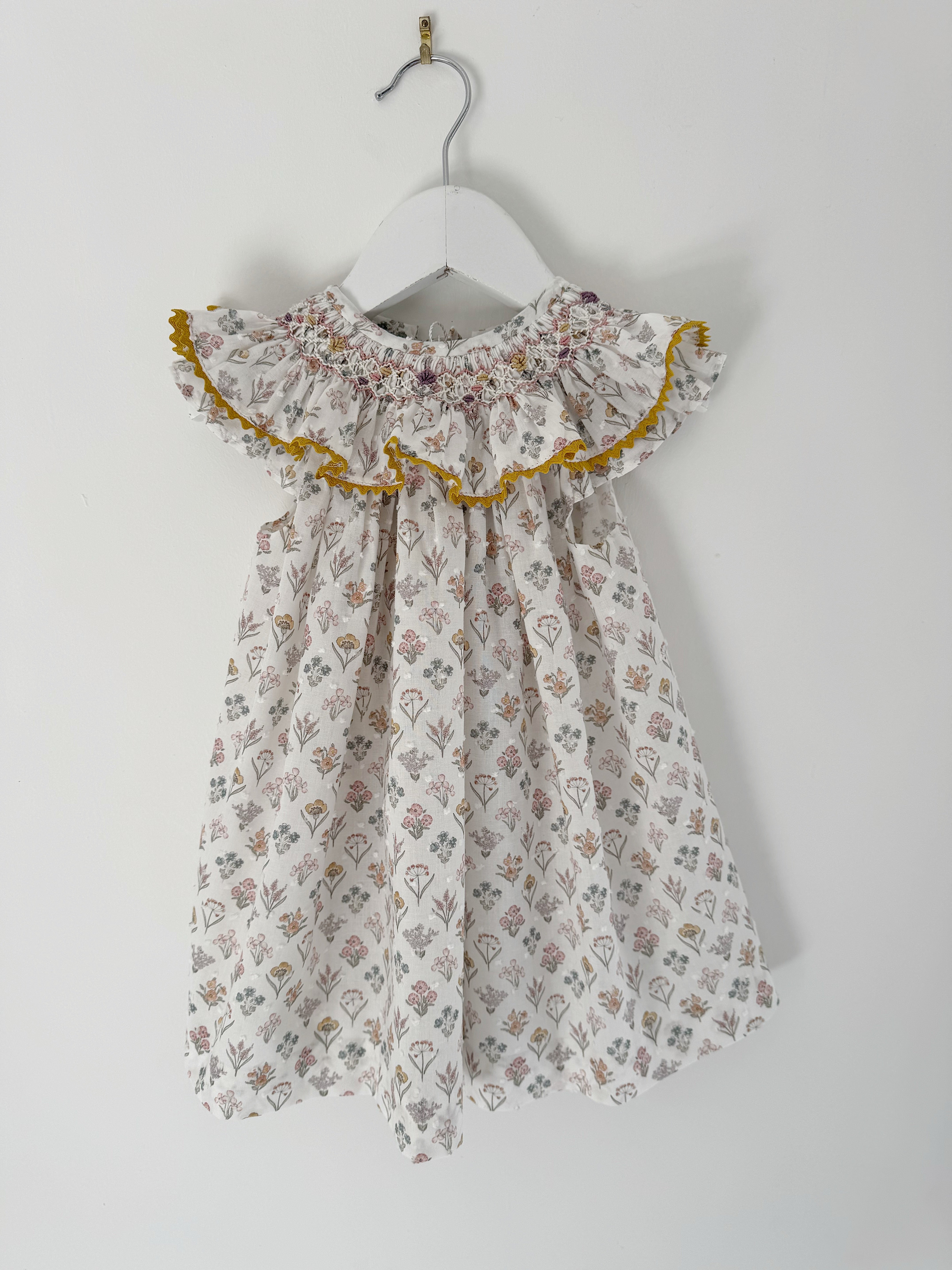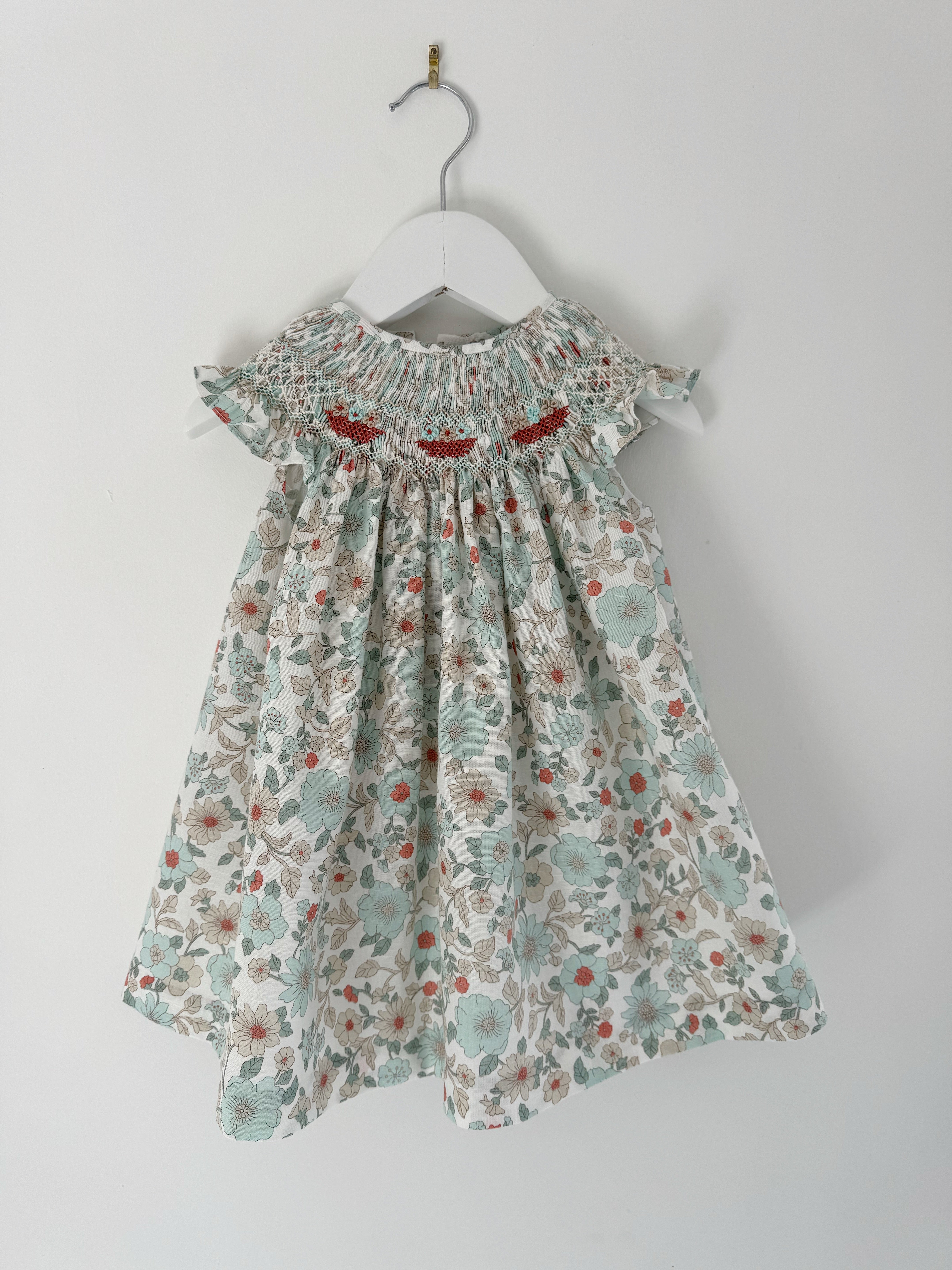 Miranda Beautiful dress/bloomers set with red floral print details.